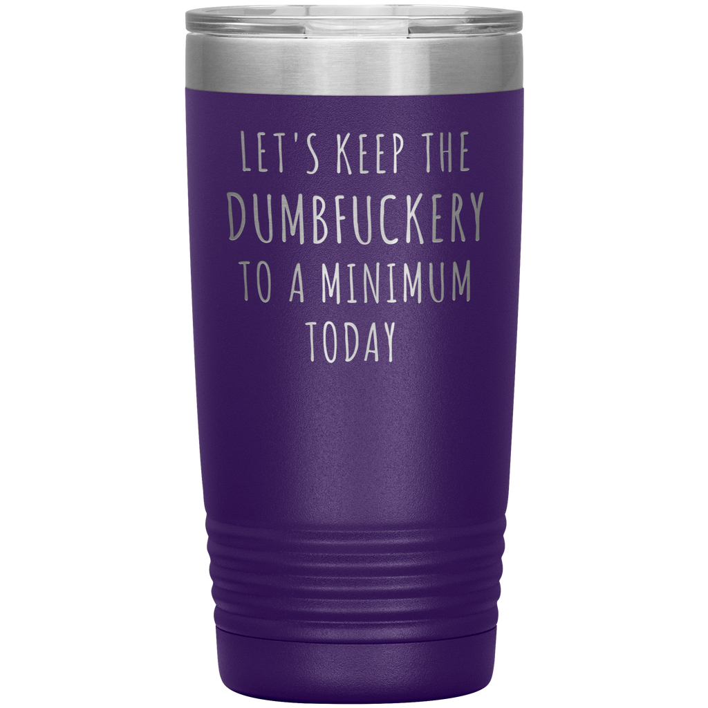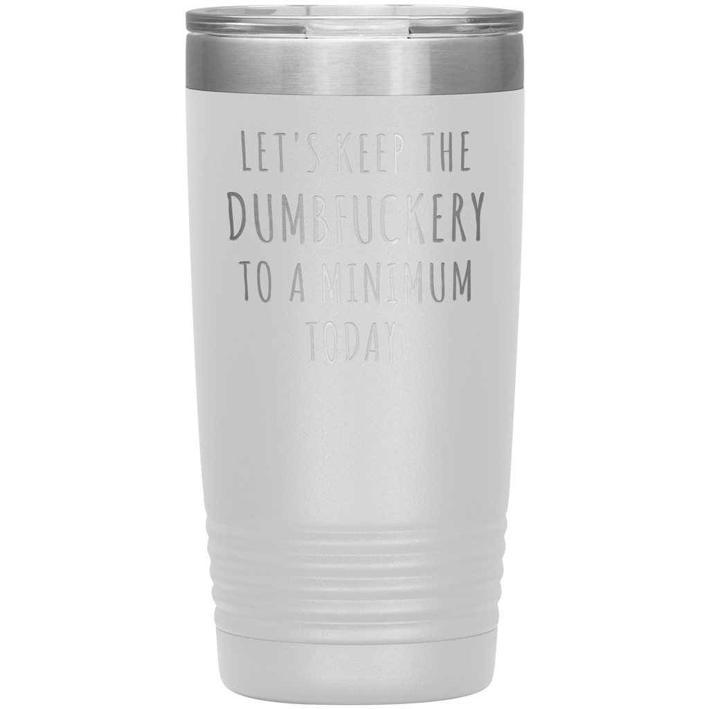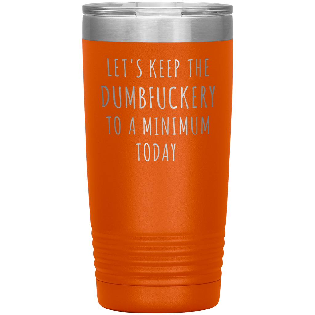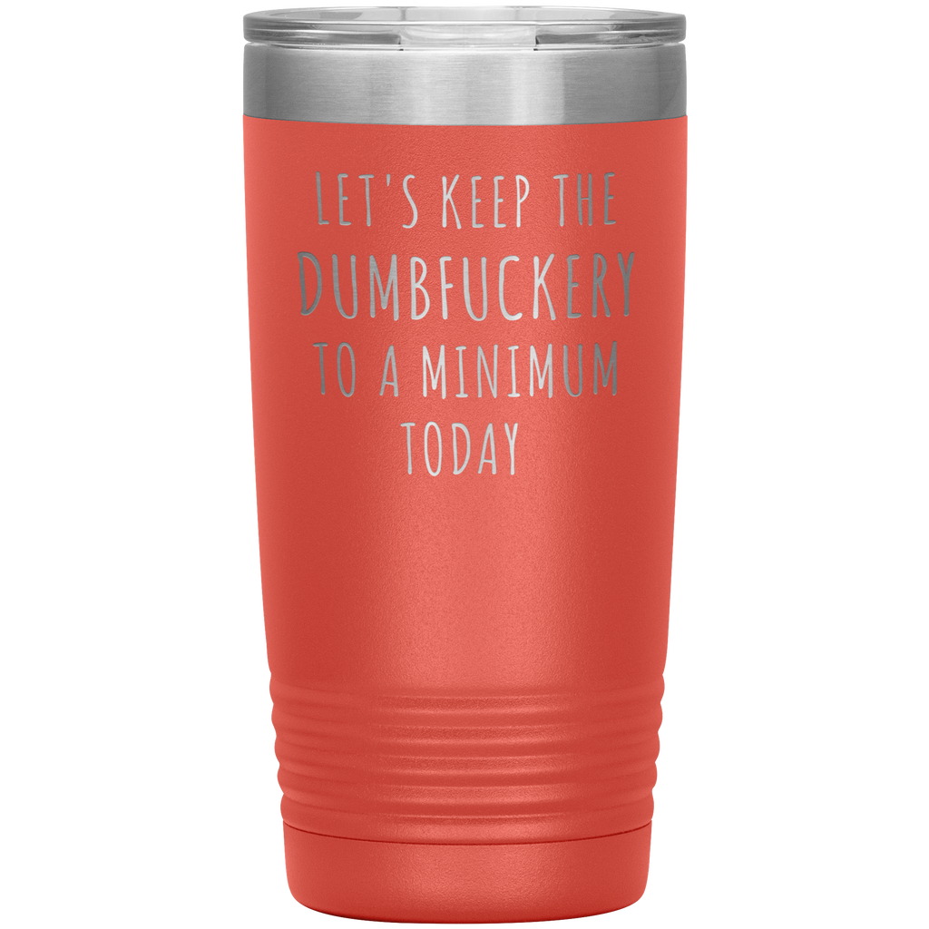 Let's Keep the Dumbfuckery to a Minimum Today Mug Funny Office Work Coworker Gift Tumbler Insulated Hot Cold Travel Coffee Cup 20oz BPA Free