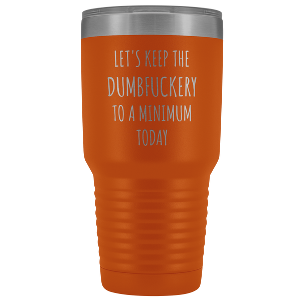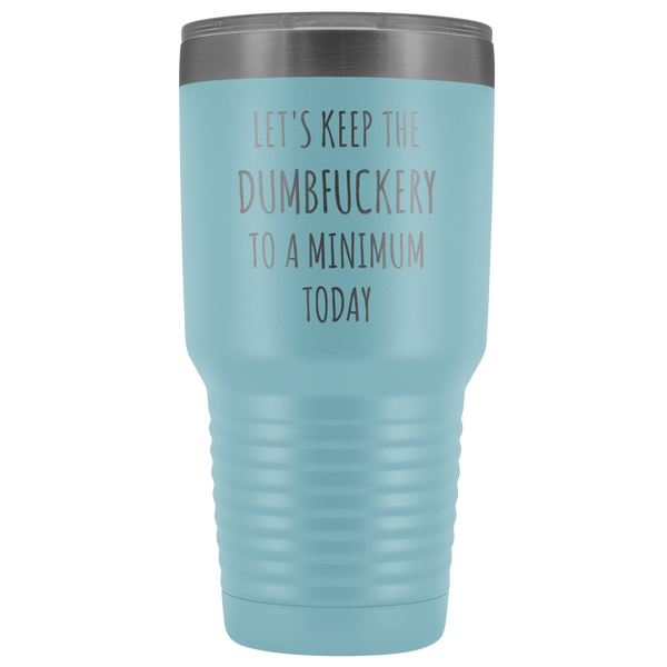 Let's Keep the Dumbfuckery to a Minimum Today Mug Funny Office Work Coworker Gift Tumbler Insulated Hot Cold Travel Coffee Cup 30oz BPA Free
