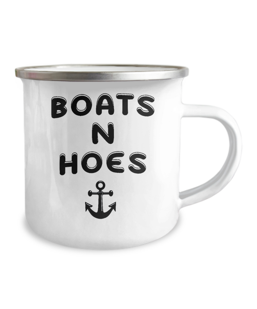 Boats N Hoes Camper Mug Funny Metal Coffee Cup for Boating