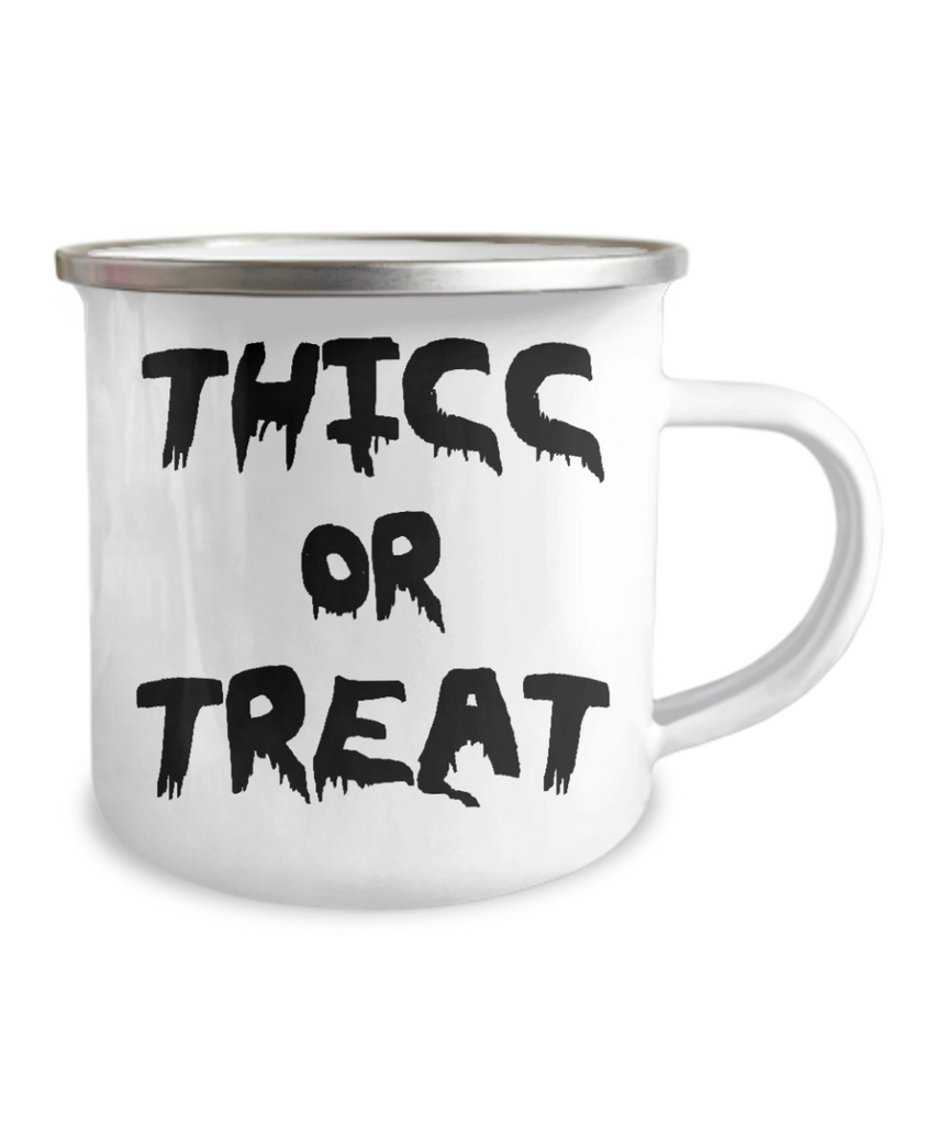 Thicc Or Treat Camper Mug Funny Metal Camping Coffee Cup