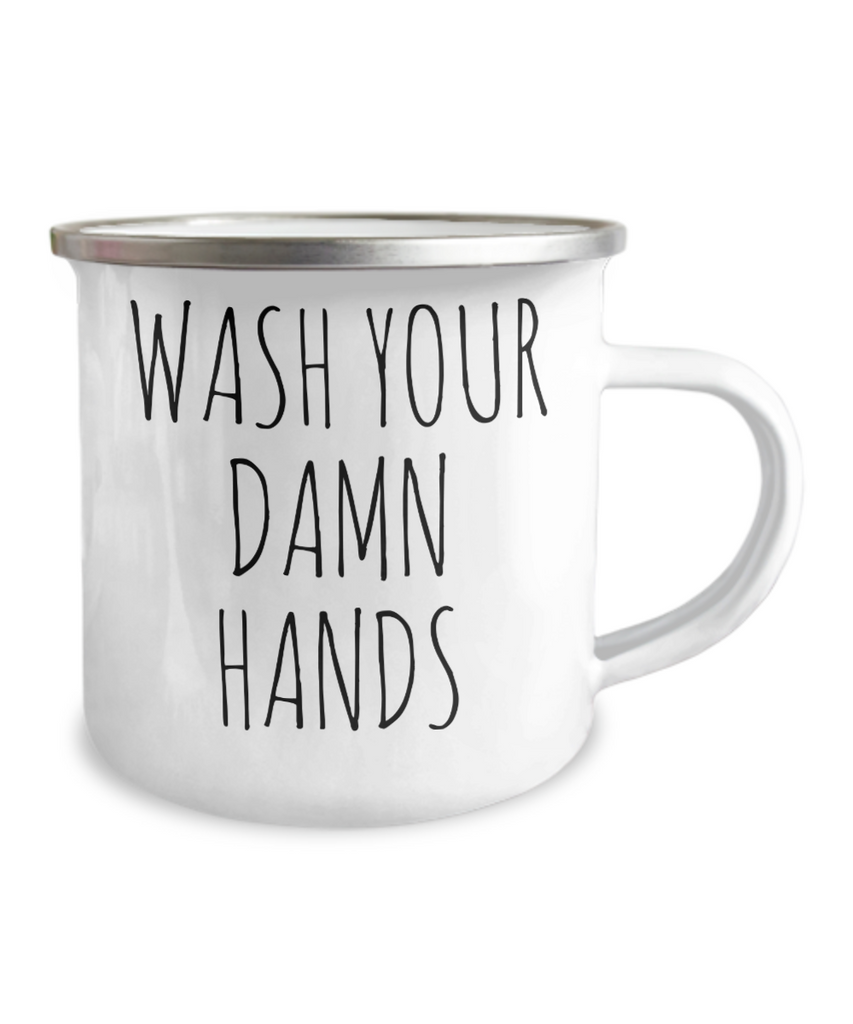 Wash Your Damn Hands Mug Funny Metal Camping Coffee Cup