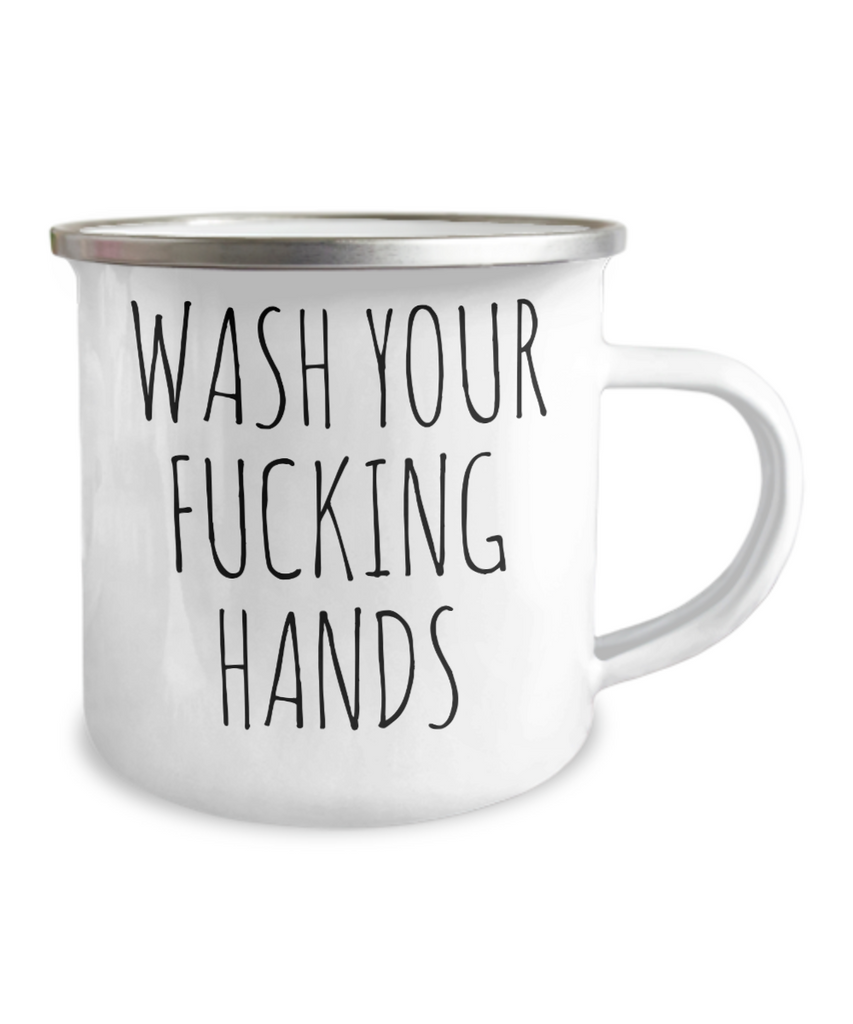 Wash Your Fucking Hands Mug Profanity Crass Funny Metal Camping Coffee Cup