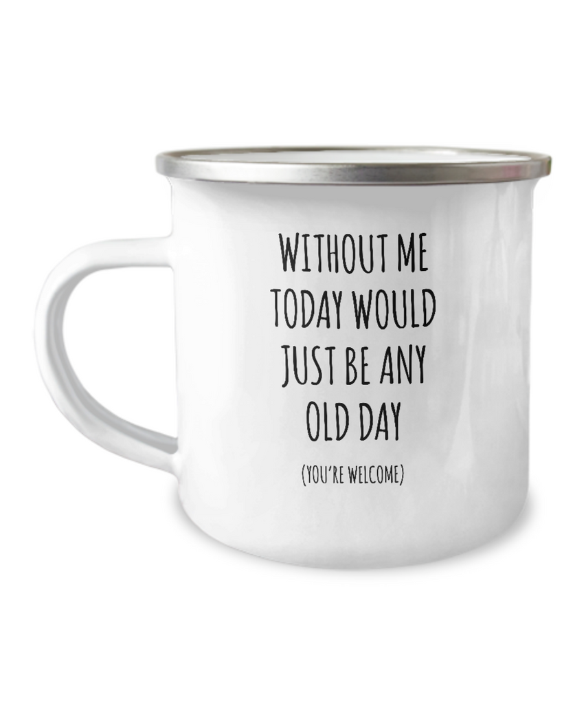 Without Me Today Would Just Be Any Old Day (You're Welcome) Metal Camping Mug Coffee Cup Funny Gift