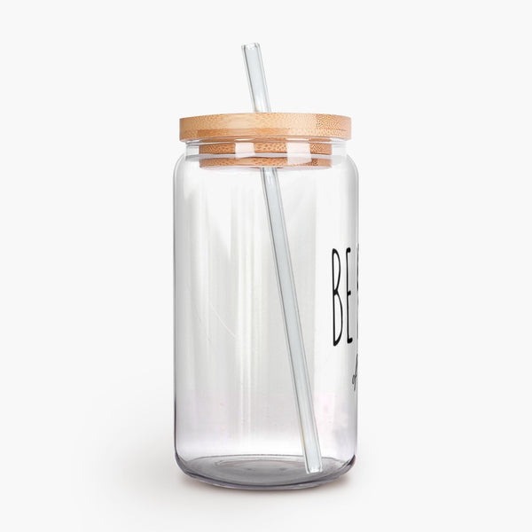 Serve up drinks in this 16 oz soda can shaped glass tumbler with bamboo lid and straw.
