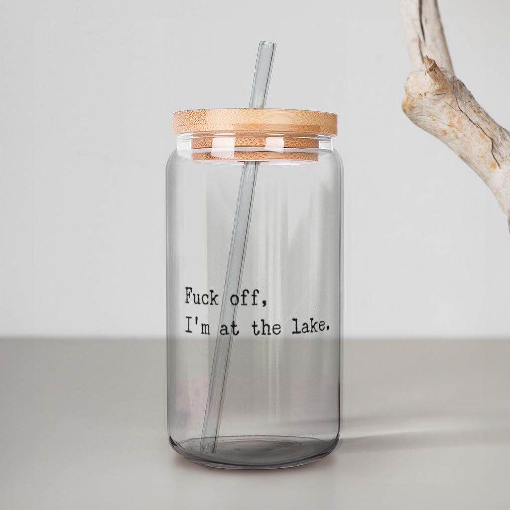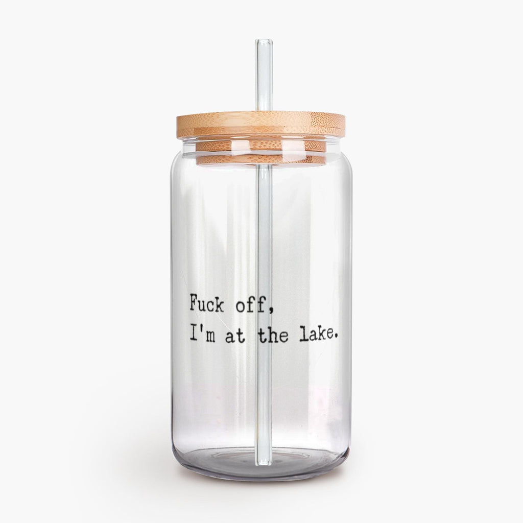 Fuck Off I'm At the Lake Can Shaped Glass Funny Lakehouse Mug Lake House Decor Lake House Accessories Gift for Lake Lovers
