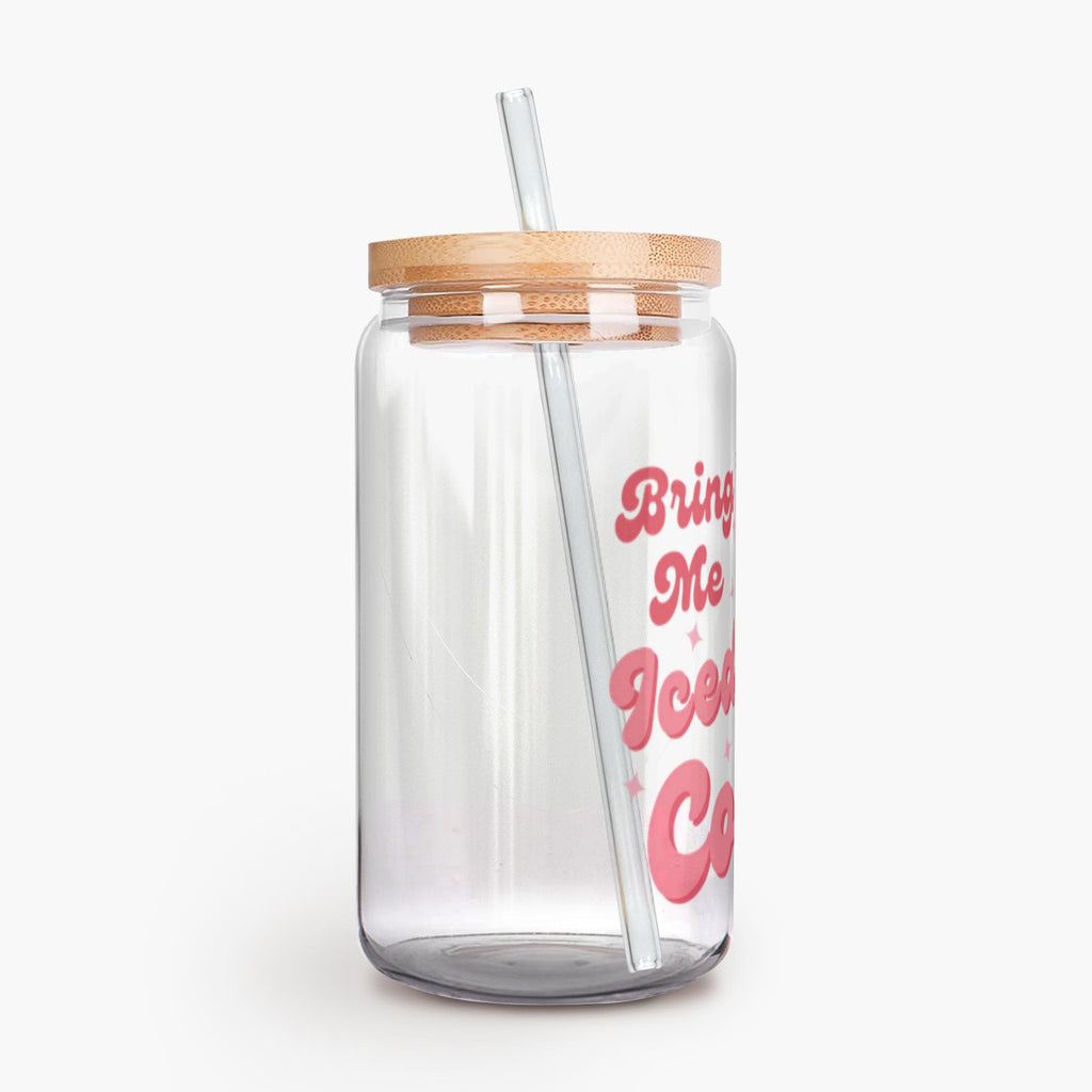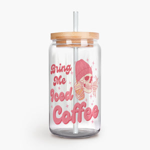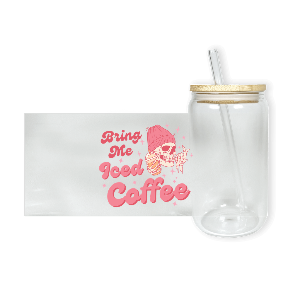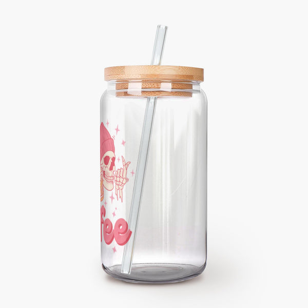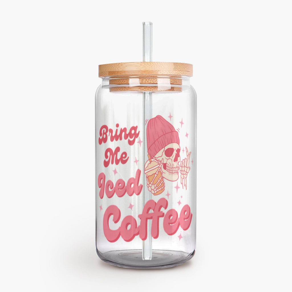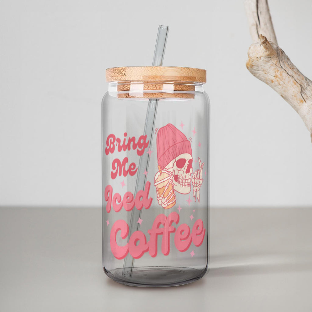 Iced Coffee Glass, Bring Me Iced Coffee, Gift for Coffee Lover, Skulls, Skeleton Glass, Can Shaped Glass, Trendy Glass Cup