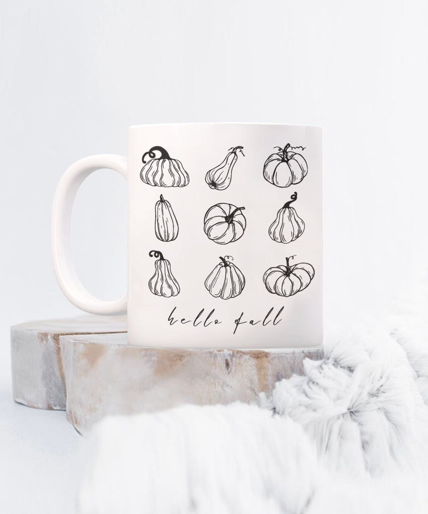 Hello Fall Mug, Autumn Mug, Pumpkin Mug, Fall Coffee Cup, Pumpkin Spice Mug