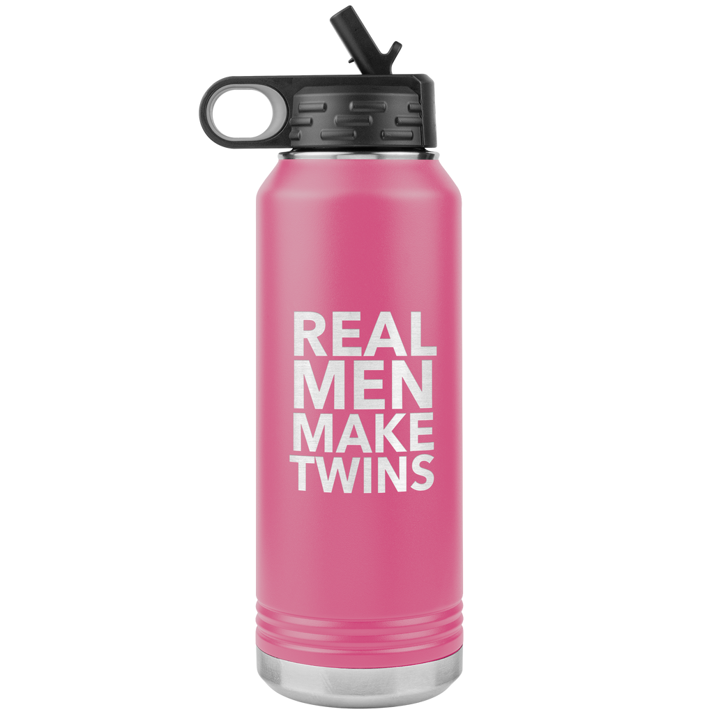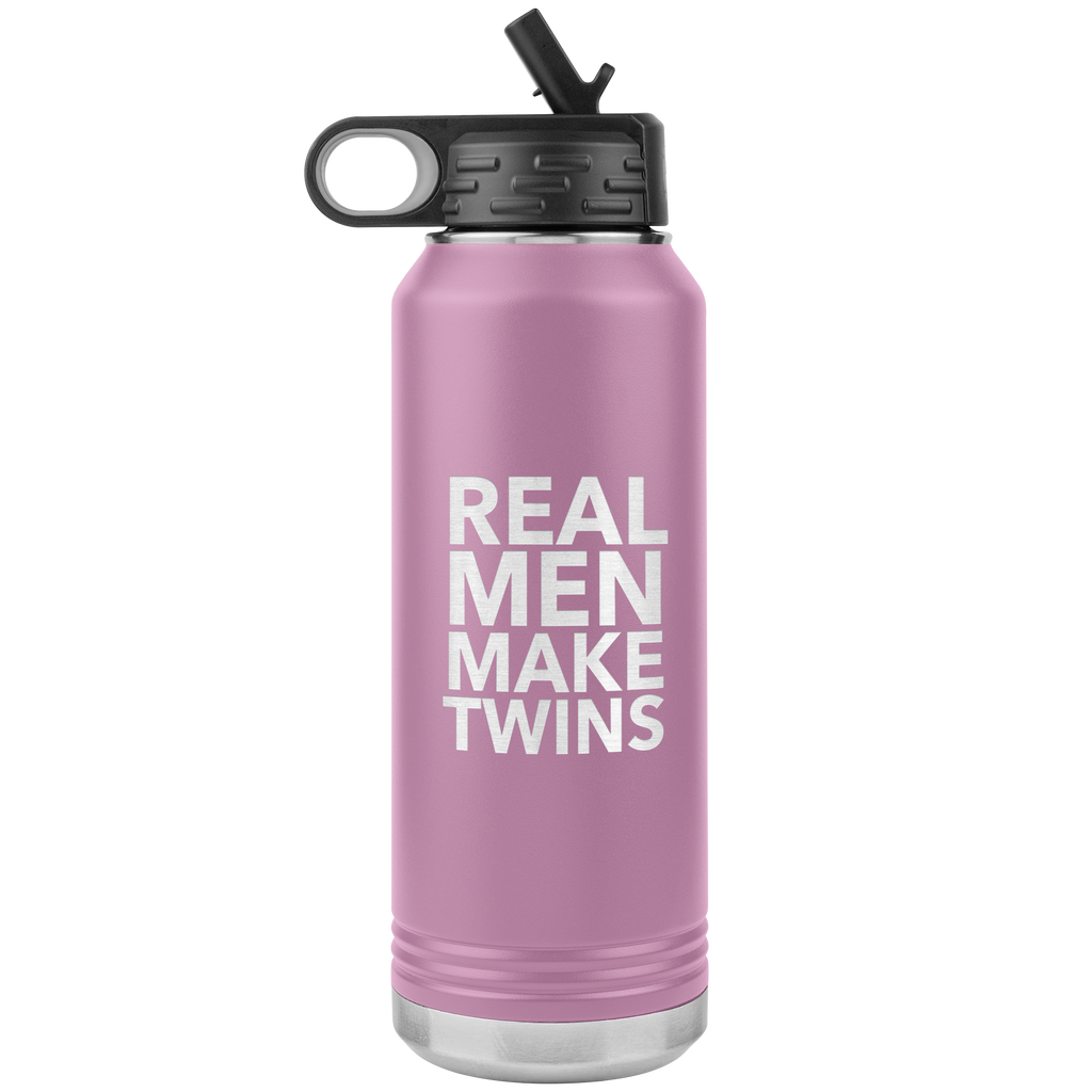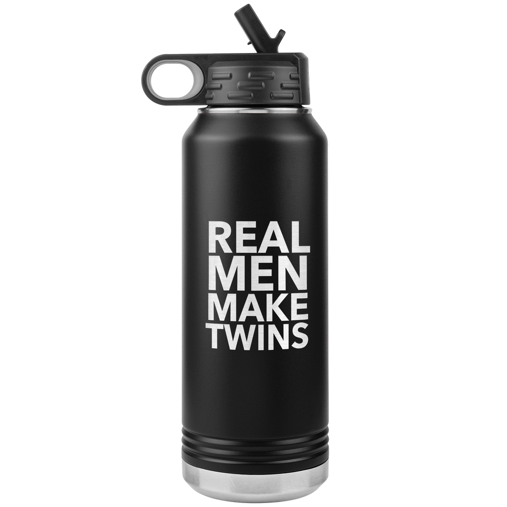 Dad of Twins Gift for Father's Day Real Men Make Twins Funny Water Bottle Insulated Tumbler 32oz BPA Free