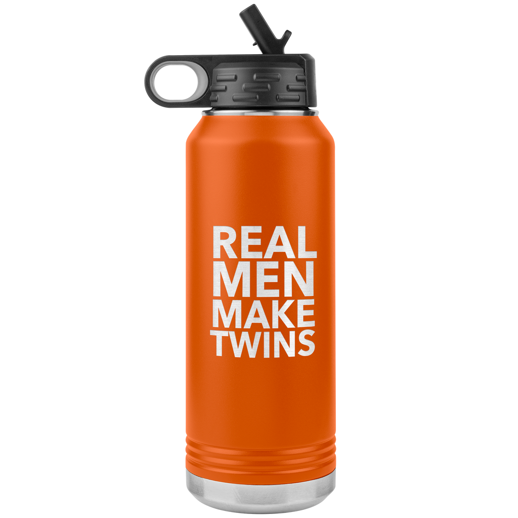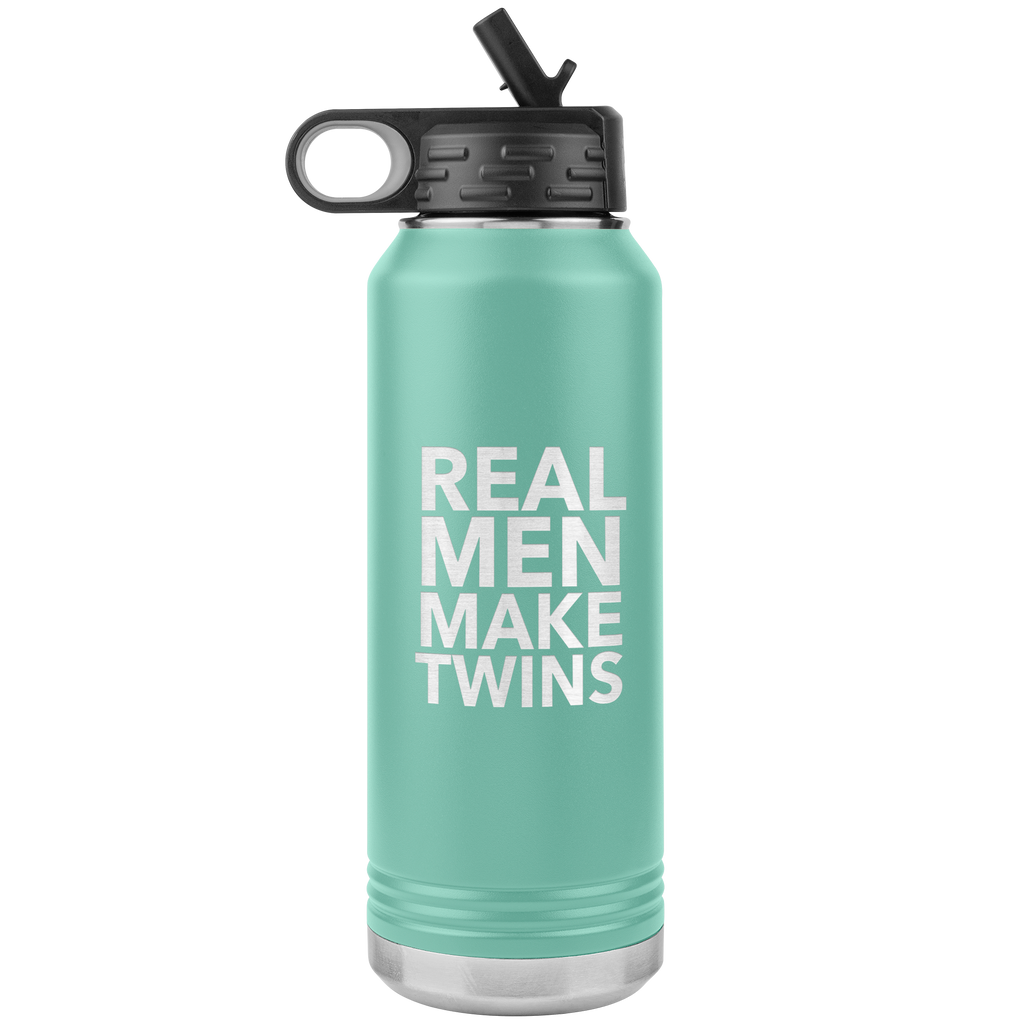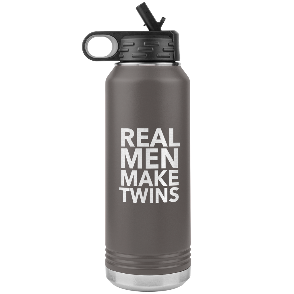 Dad of Twins Gift for Father's Day Real Men Make Twins Funny Water Bottle Insulated Tumbler 32oz BPA Free