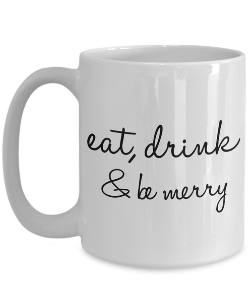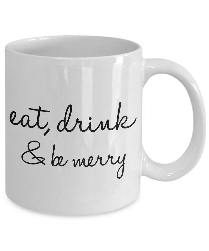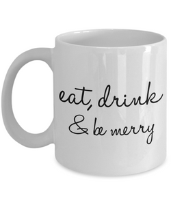 Holiday Mug Gift - Ceramic Holiday Mugs - Eat Drink and Be Merry Coffee Mug Ceramic Tea Cup