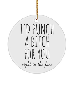 Dumb Gifts for Friends Funny Gift for Best Friend BFF I'd Punch a Bitch for You Ceramic Christmas Tree Ornament