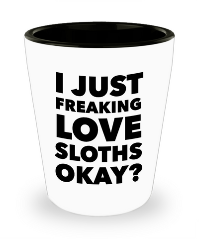 Sloth Shot Glass Funny Sloth Themed Gifts for Him and Her - I Just Freaking Love Sloths Okay? Ceramic Shot Glasses Gift Ideas