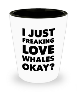 Whale Shot Glass Whale Lovers Gifts Whale Themed Gifts for Adults - I Just Freaking Love Whales Okay? Funny Ceramic Shot Glasses