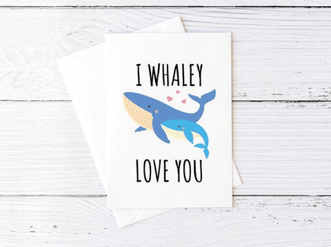 Punny Card for Mother's Day I Whaley Love You Cute Greeting Card