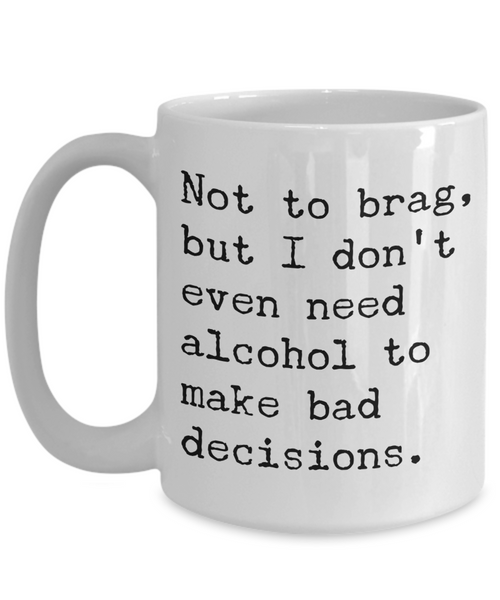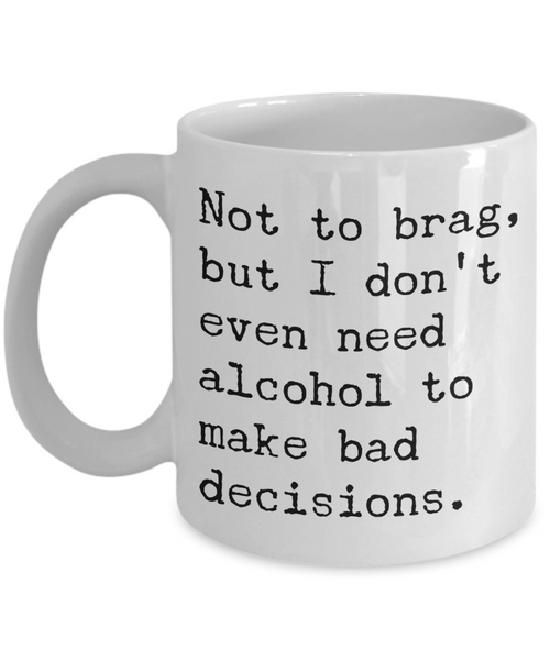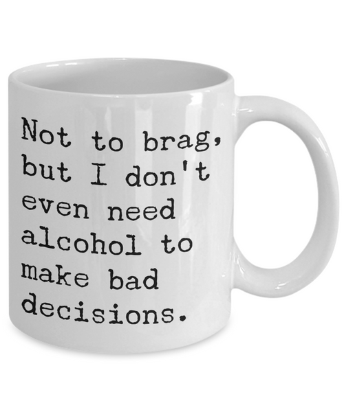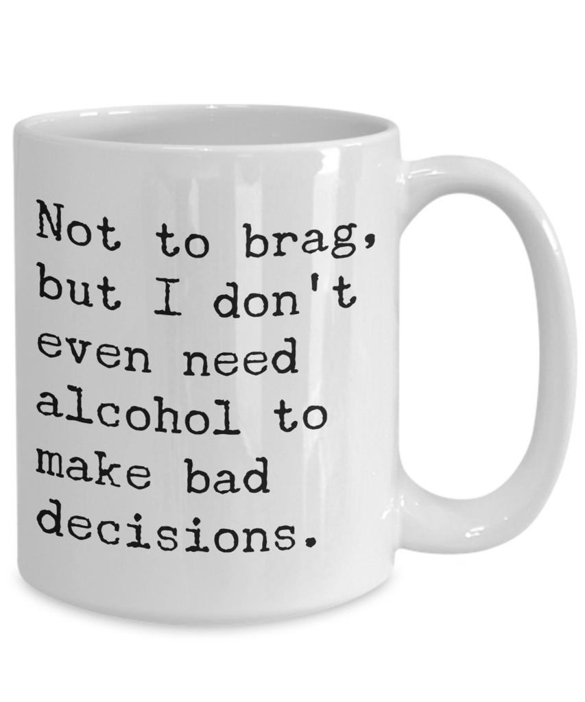 Sobriety Coffee Mugs - Not To Brag But I Don't Even Need Alcohol To Make Bad Decisions Ceramic Coffee Cup