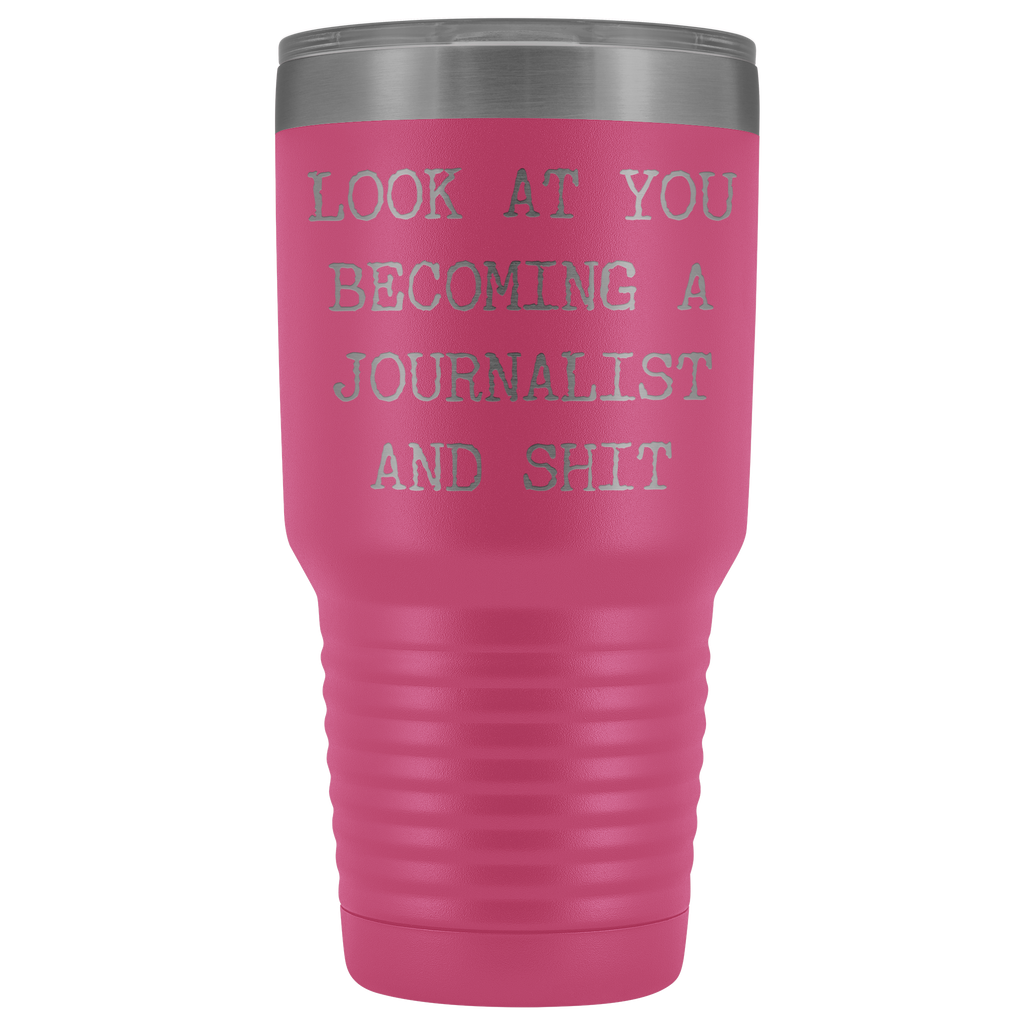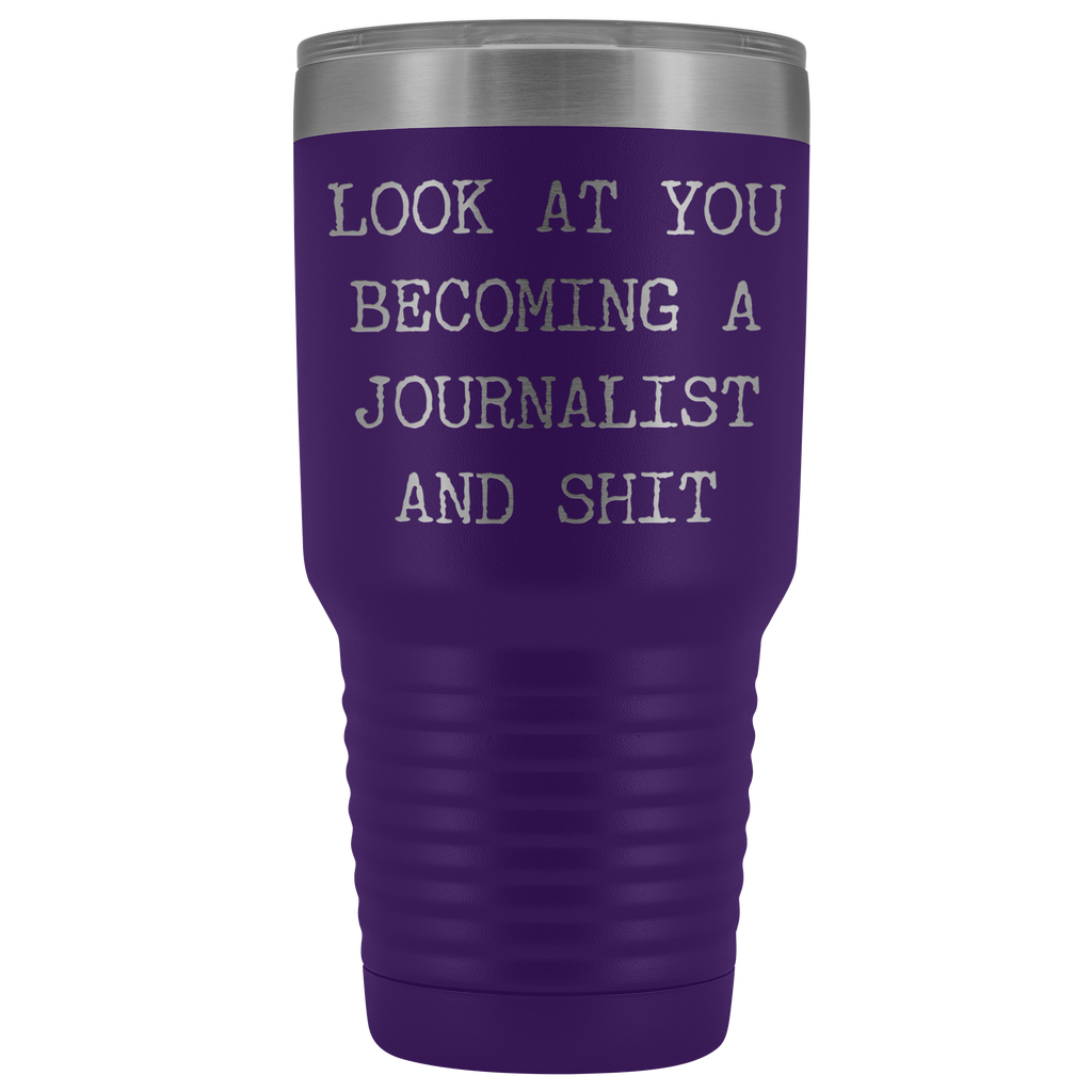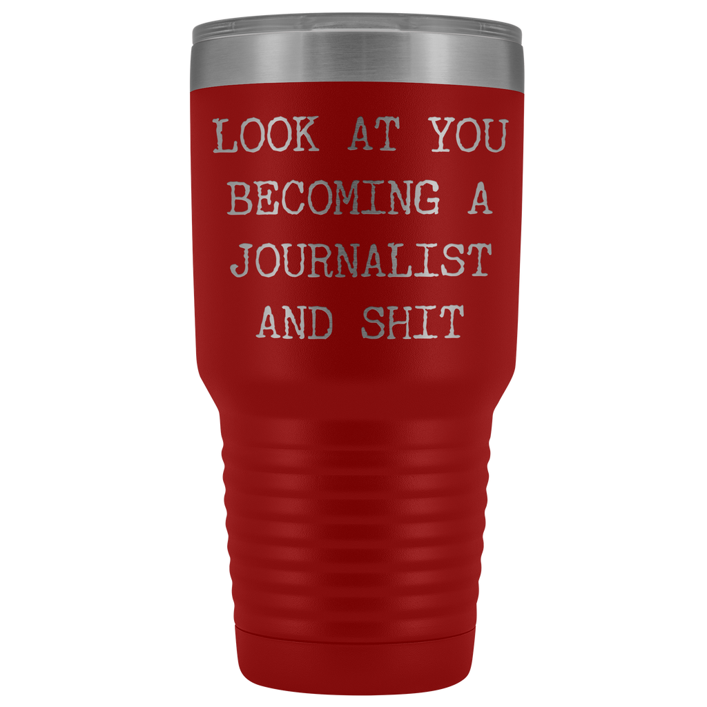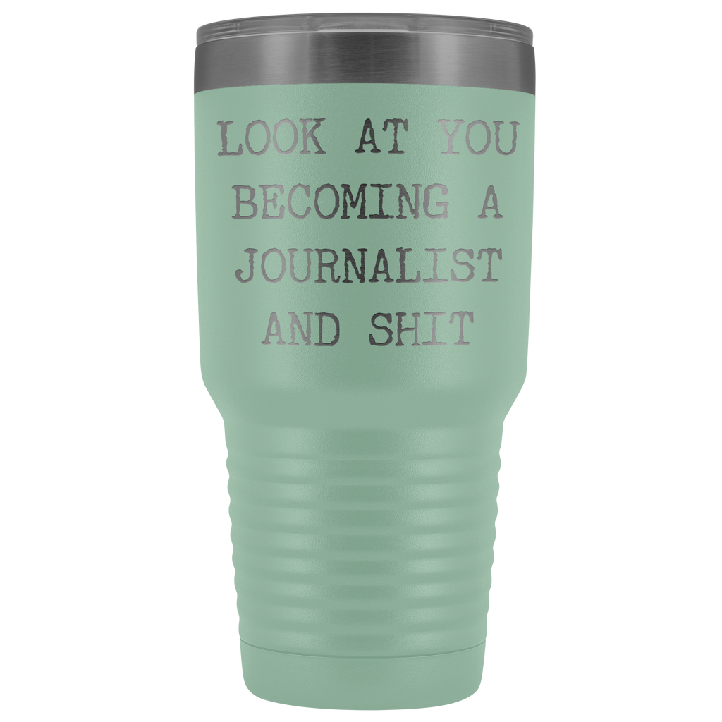 Journalism School Graduation Look at You Becoming a Journalist Tumbler Metal Mug Insulated Hot Cold Travel Coffee Cup 30oz BPA Free