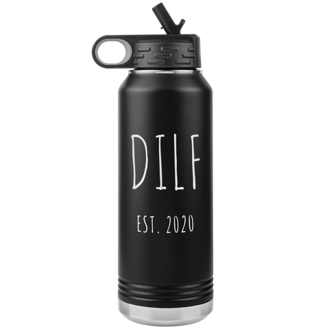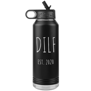 DILF Est. 2020 Water Bottle Present For New Dad Expecting Dad Gag Gifts Funny New Father Future Dad to Be Insulated 32oz BPA Free