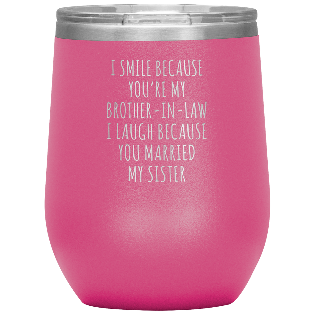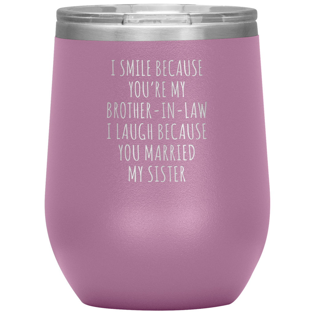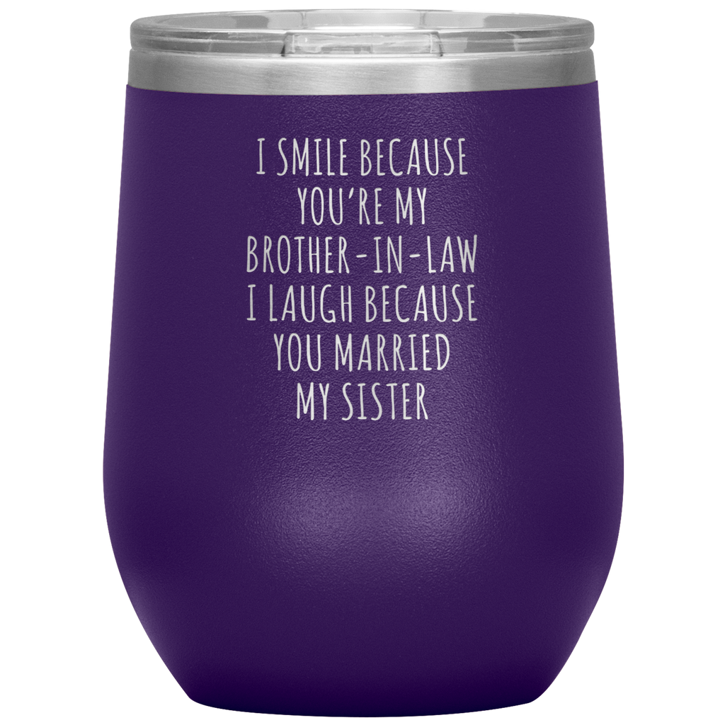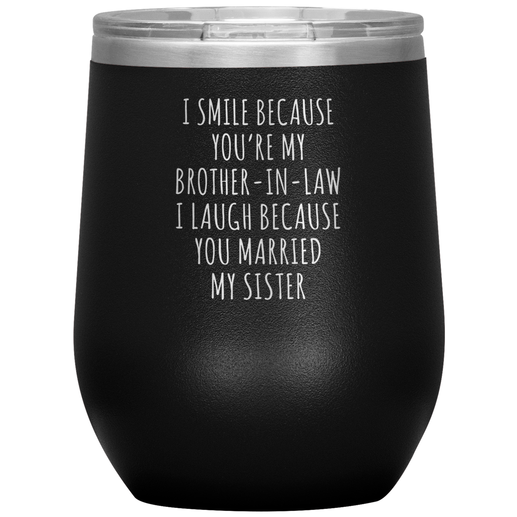 I Smile Because You're My Brother-in-Law Stemless Insulated Wine Tumbler BPA Free 12oz