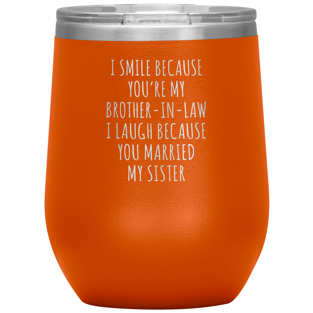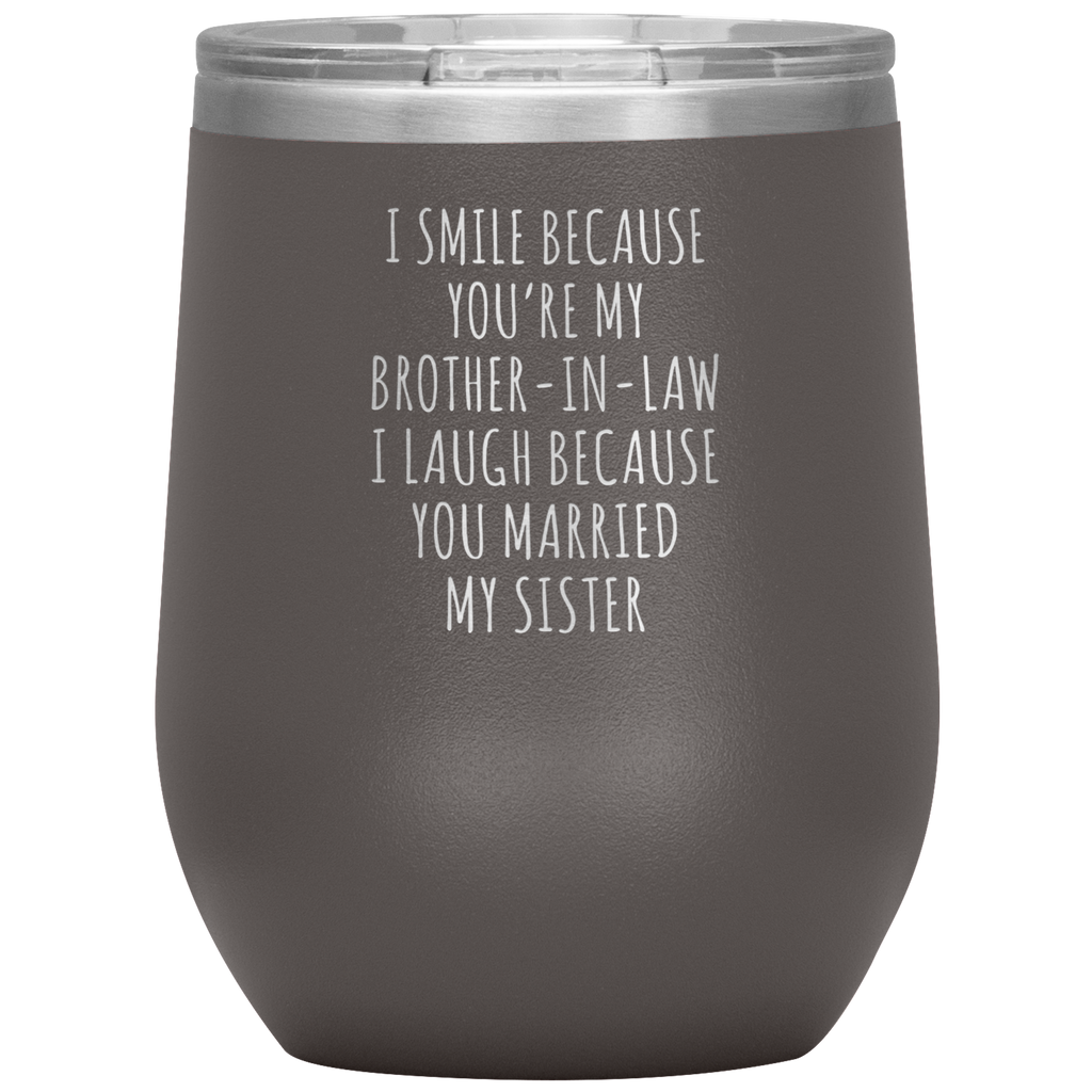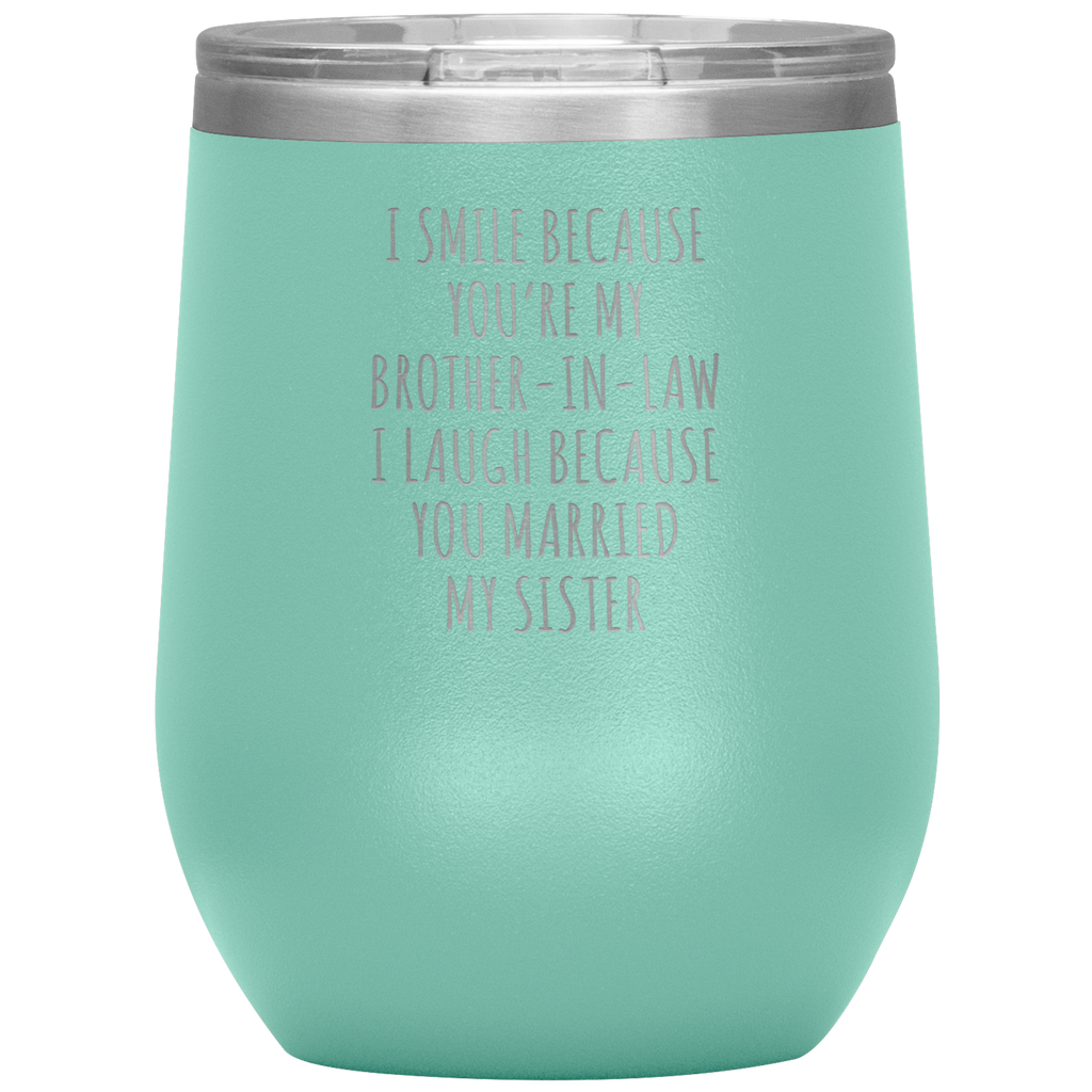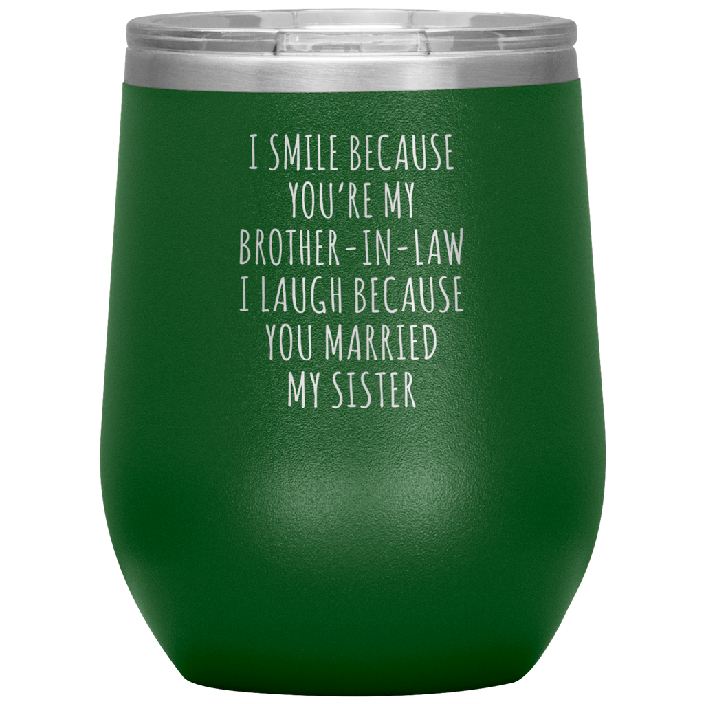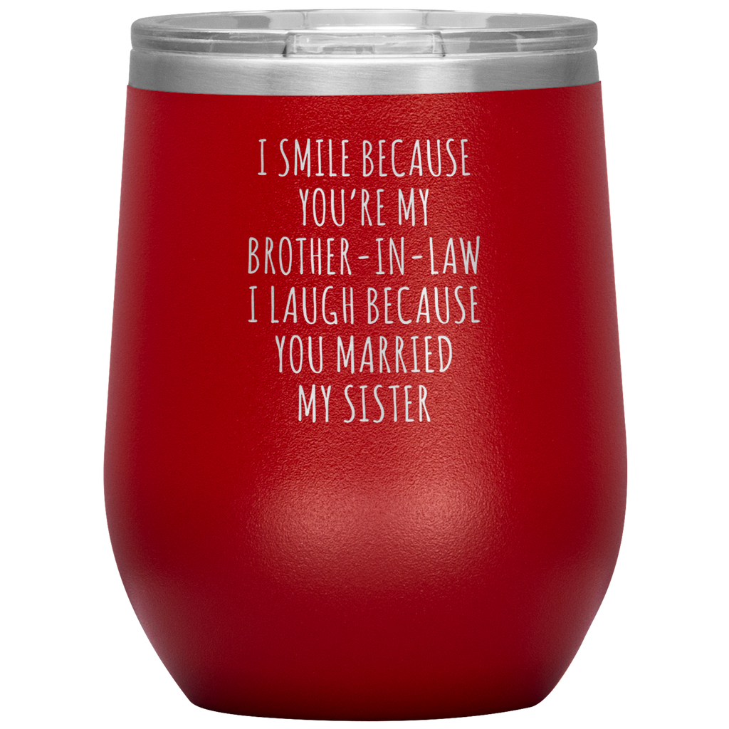 I Smile Because You're My Brother-in-Law Stemless Insulated Wine Tumbler BPA Free 12oz
