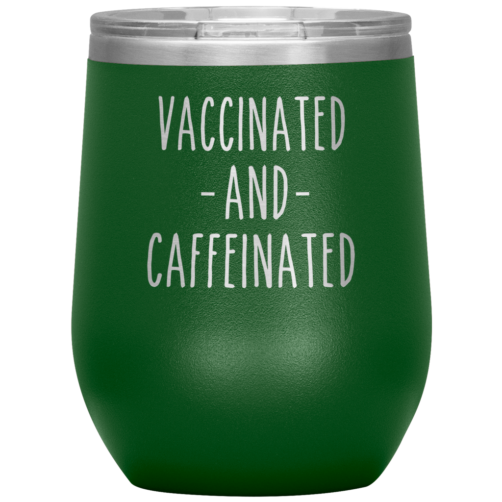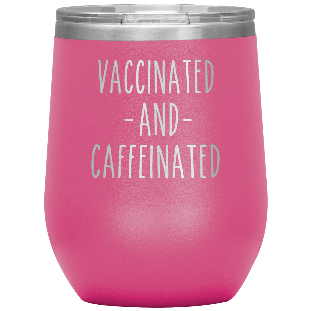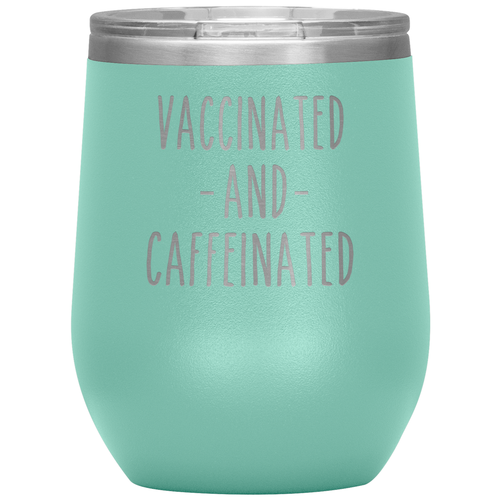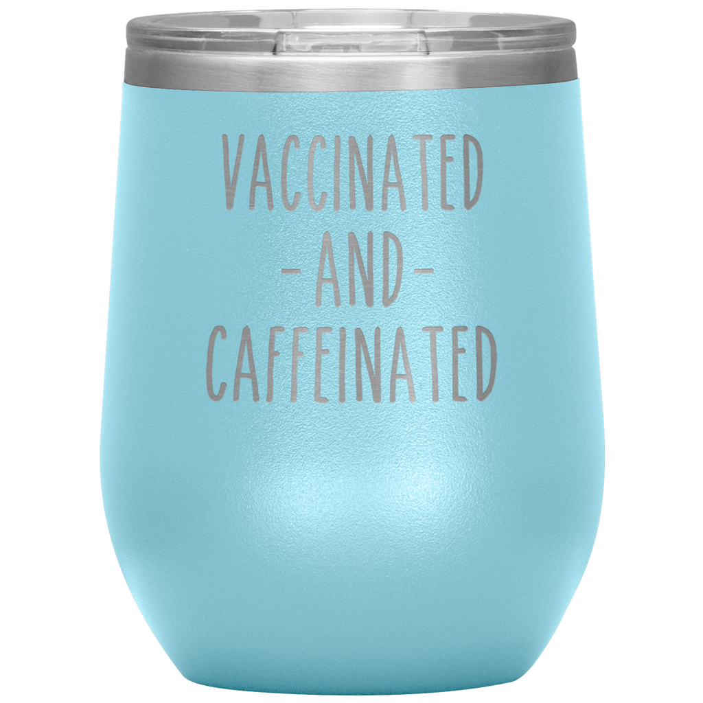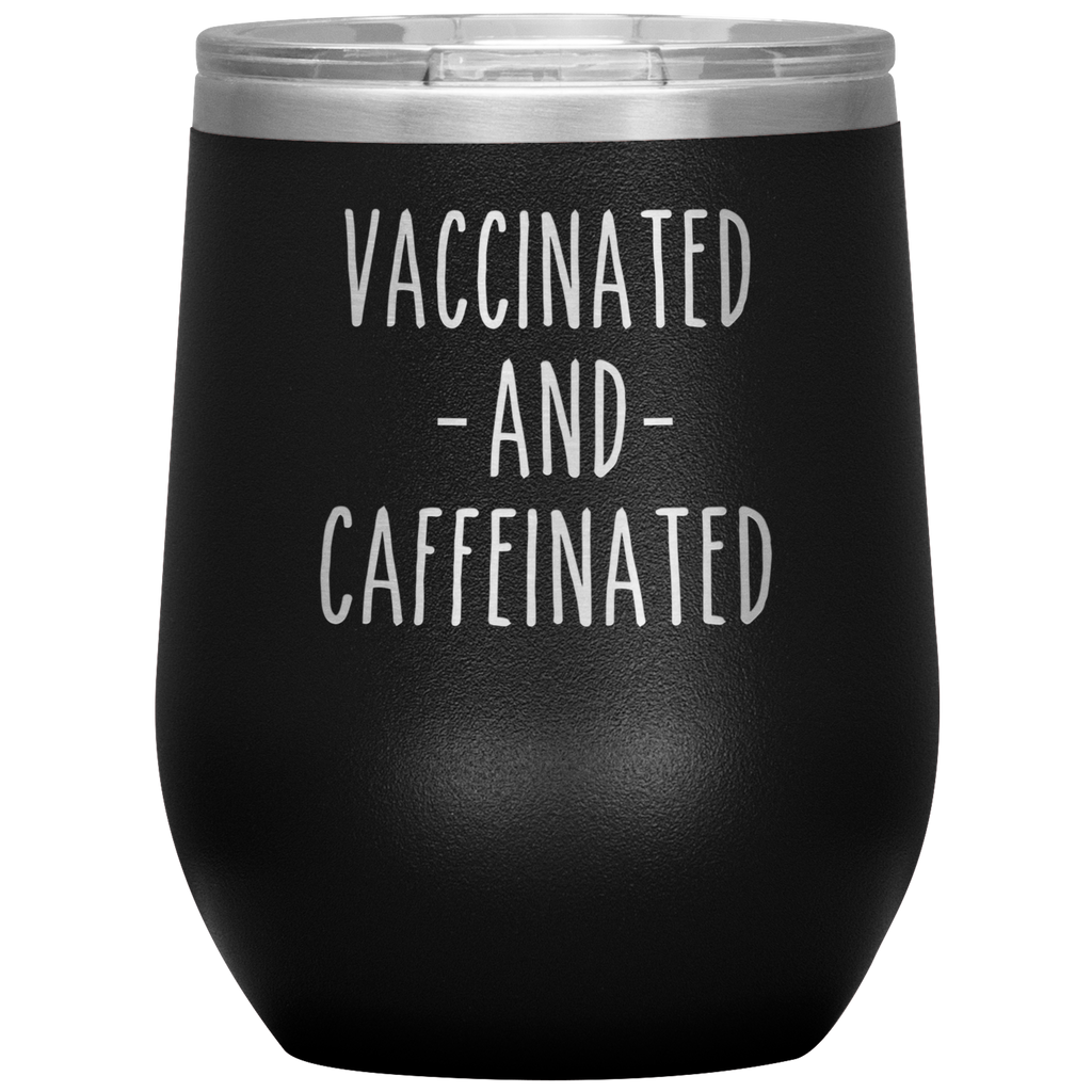 Vaccinated and Caffeinated Stemless Insulated Travel Wine Tumbler BPA Free 12oz