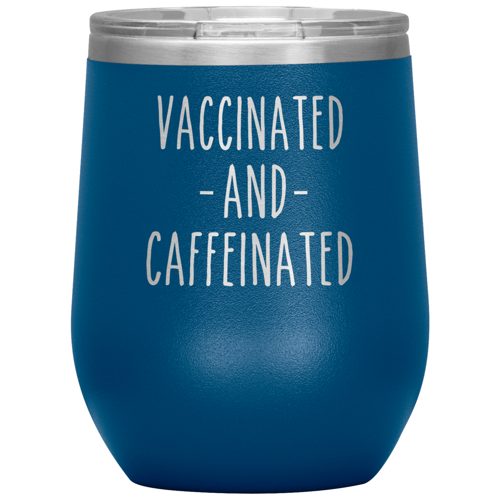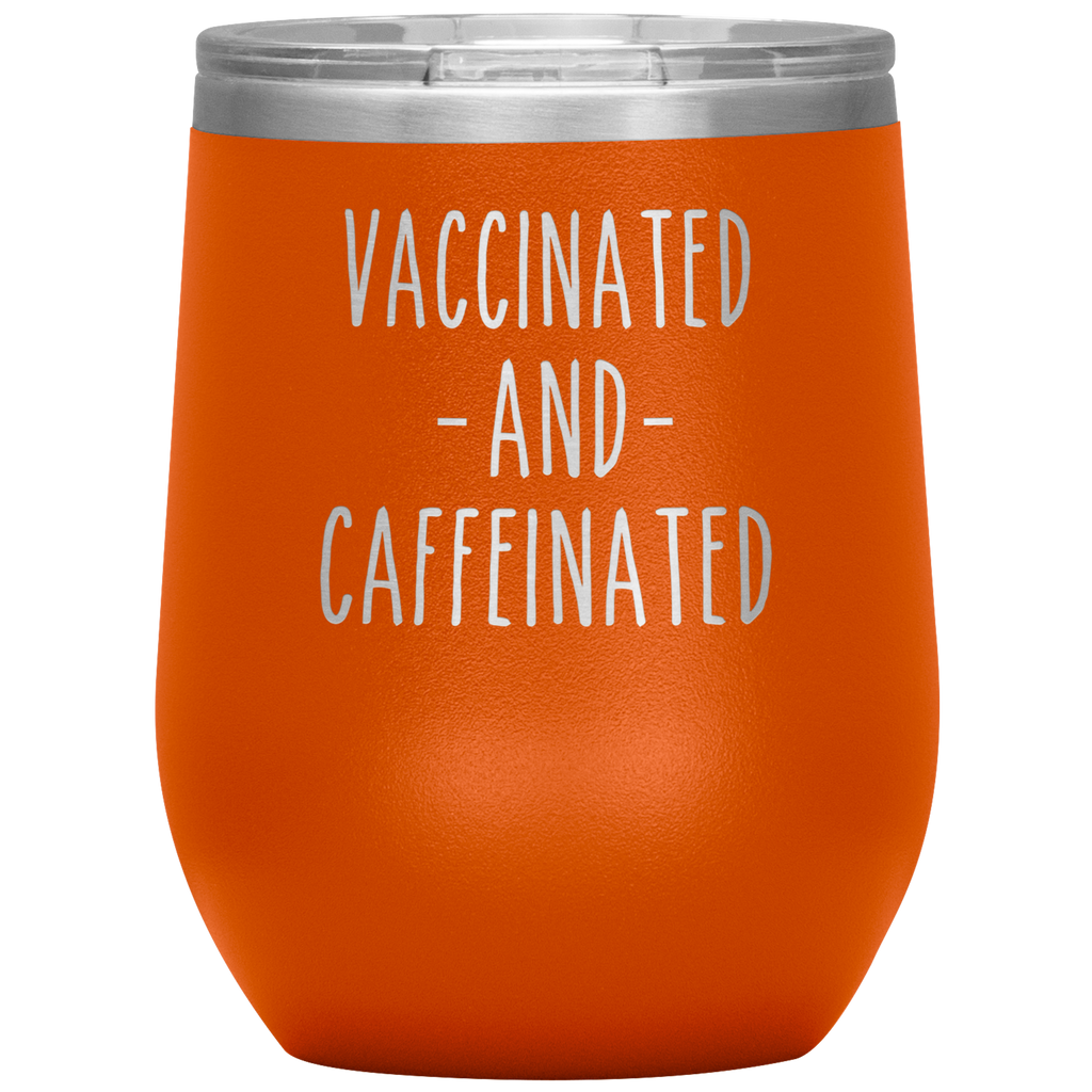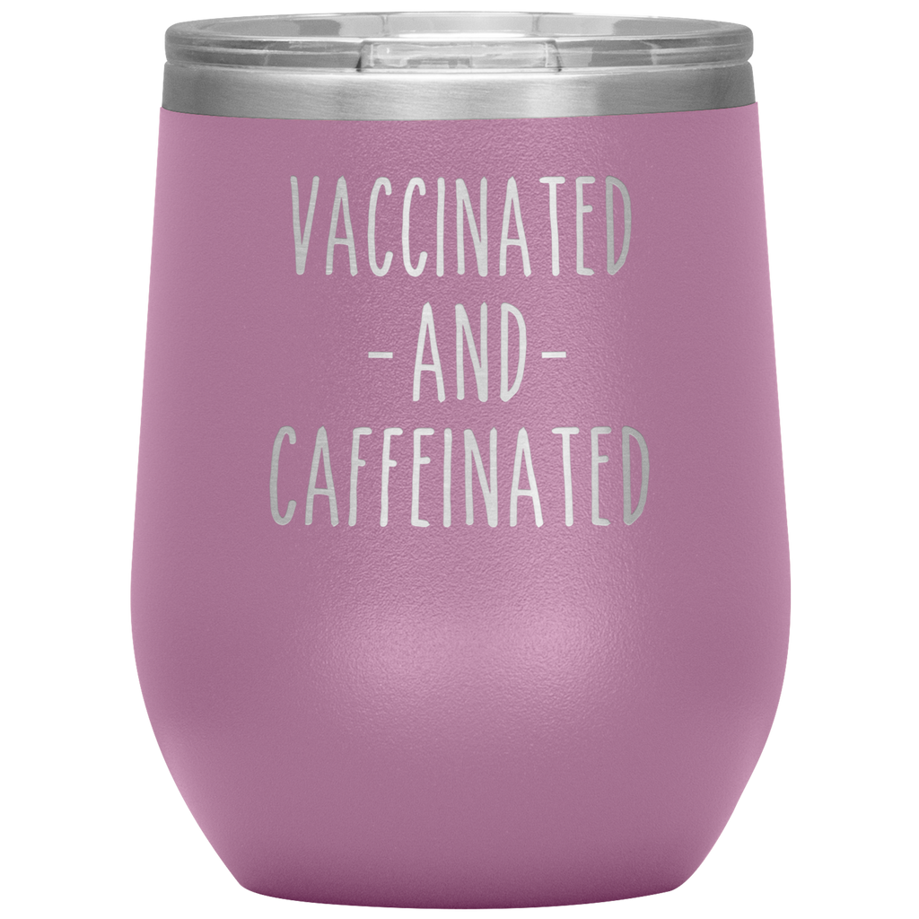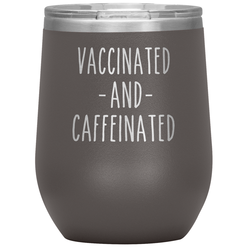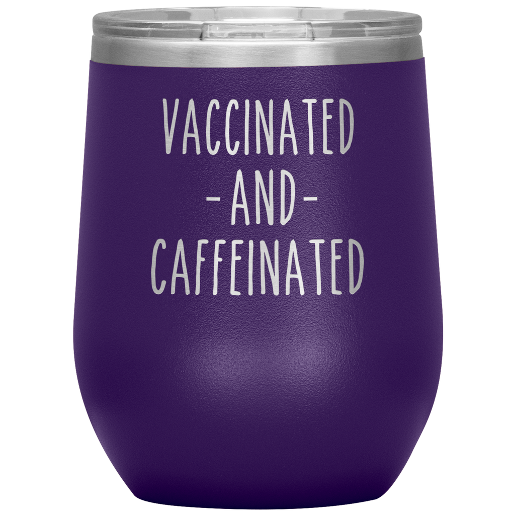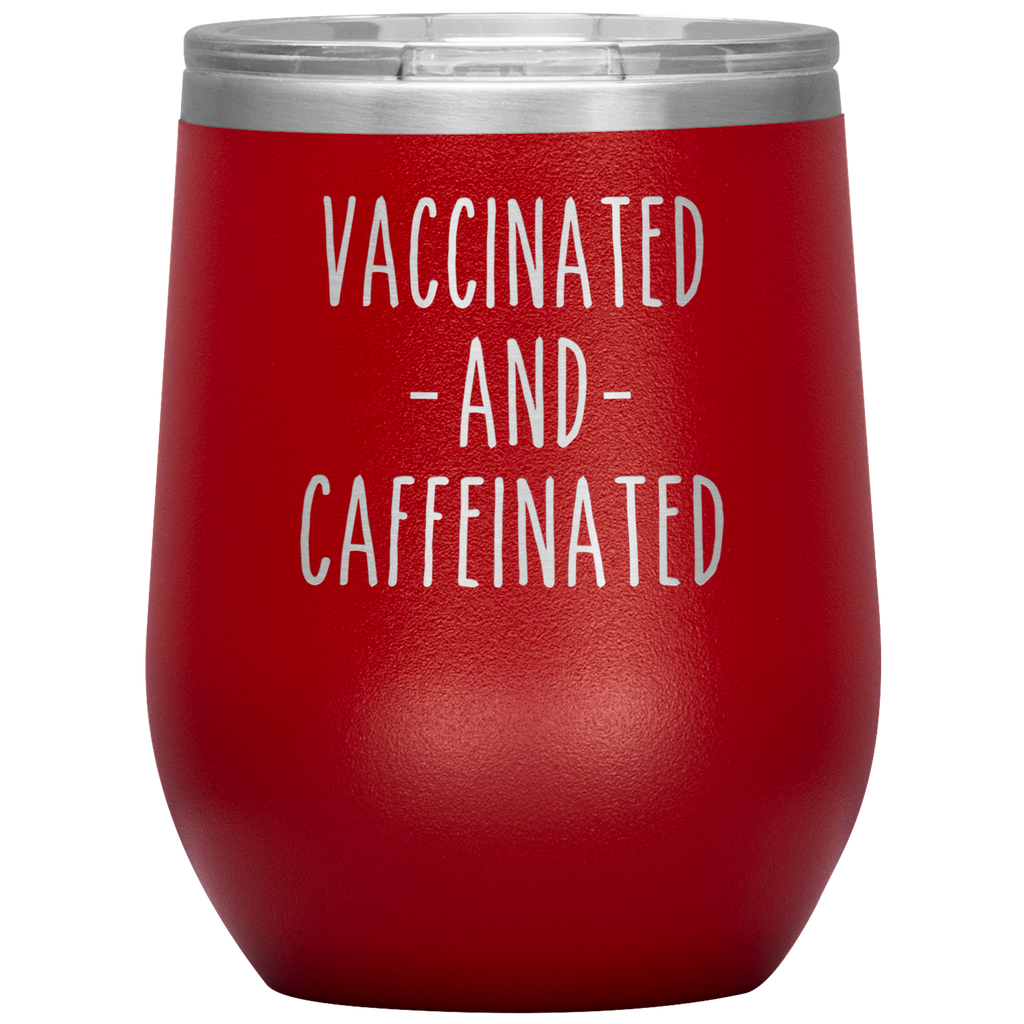 Vaccinated and Caffeinated Stemless Insulated Travel Wine Tumbler BPA Free 12oz