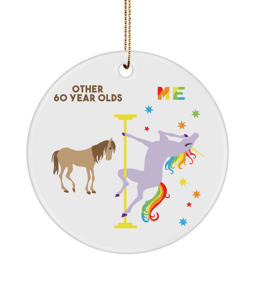 60 Year Old Birthday Rainbow Unicorn Ceramic Christmas Tree Ornament
