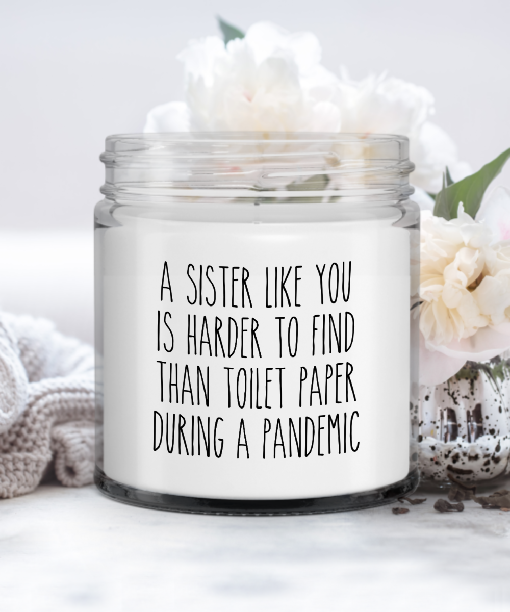 A Sister Like You Is Harder To Find Than Toilet Paper During A Pandemic Candle Vanilla Scented Soy Wax Blend 9 oz. with Lid