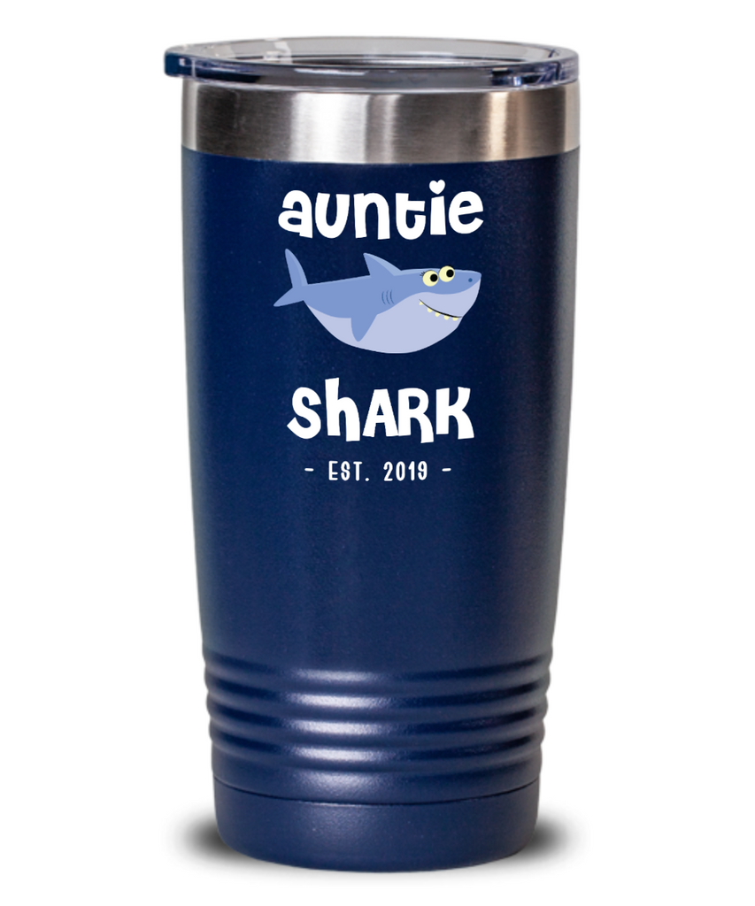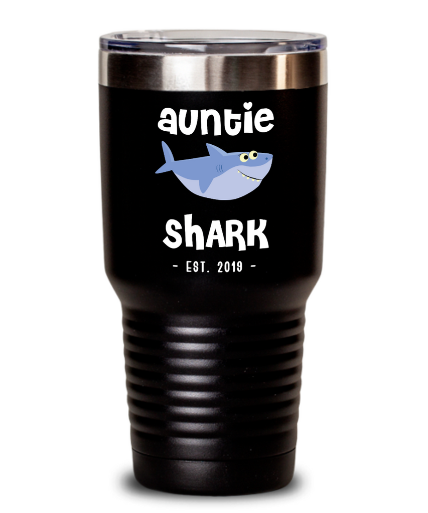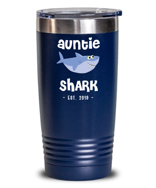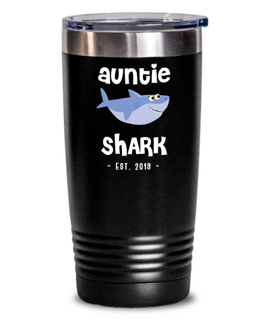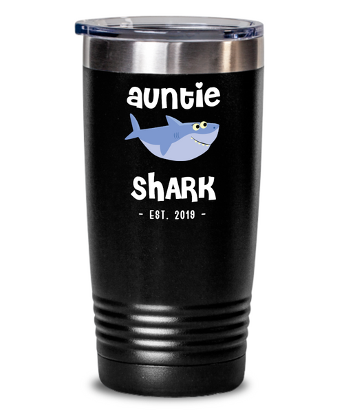 Auntie Shark Tumbler New Aunt Est 2019 Double Wall Vacuum Insulated Hot Cold Travel Coffee Cup BPA Free Do Do Do Expecting Aunt Pregnancy Reveal Announcement Gifts