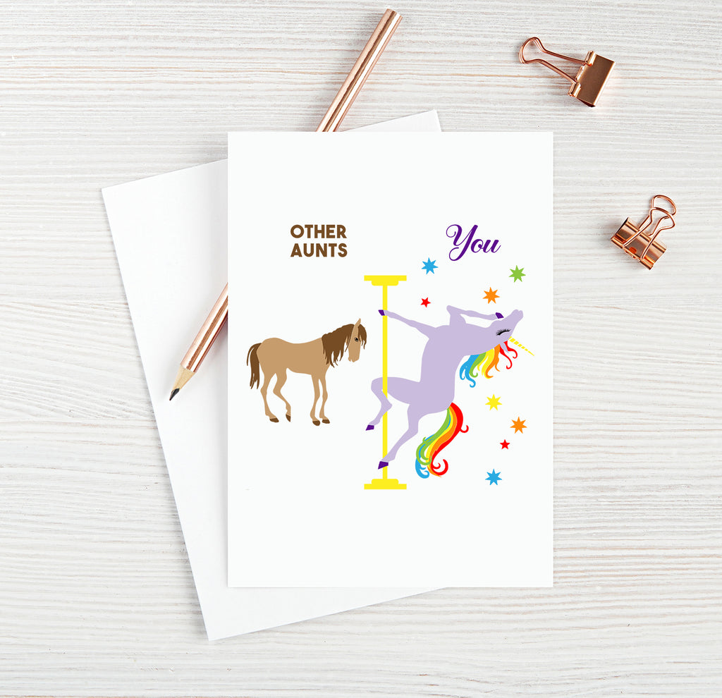 Aunts Birthday Card Funny Aunt Card for Best Aunts Ever Blank Card Unicorn Birthday Card Pole Dance Gifts