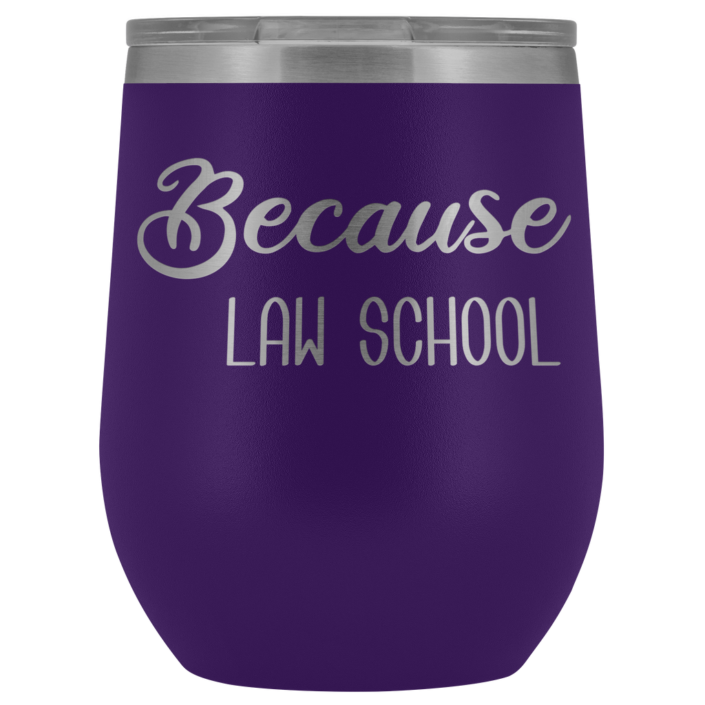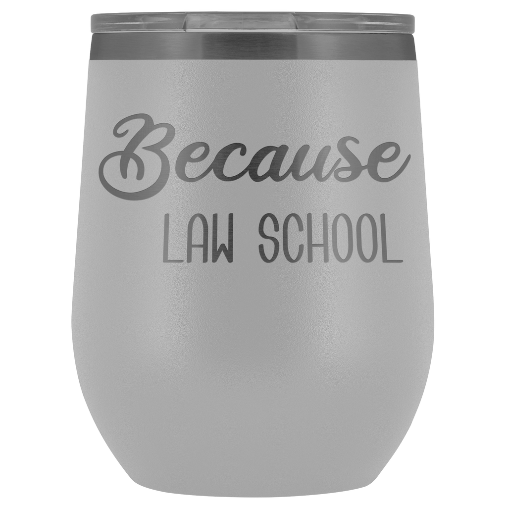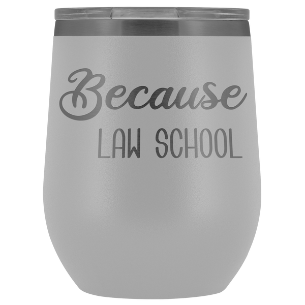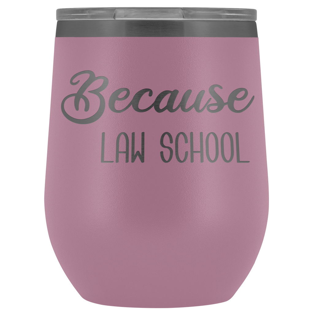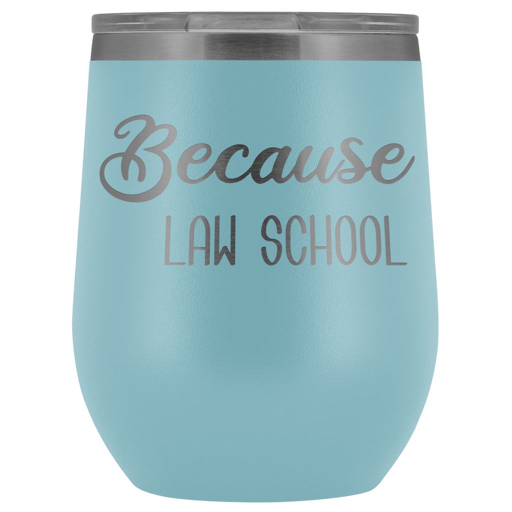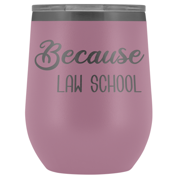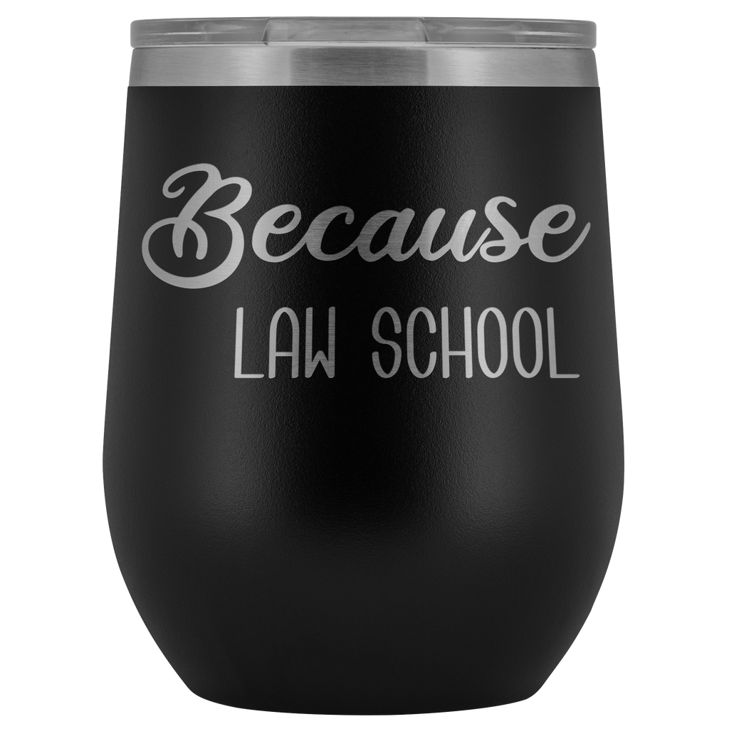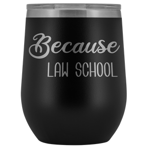Because Law School Wine Tumbler Funny Law Student Gifts Stemless Insulated Hot Cold BPA Free 12oz Travel Sippy Cup