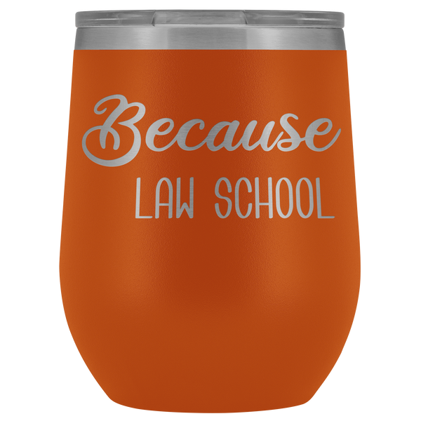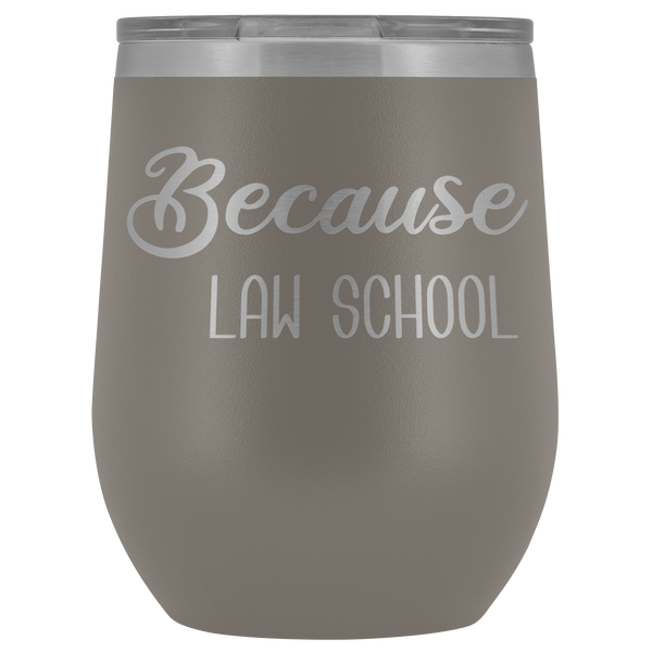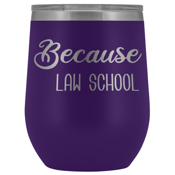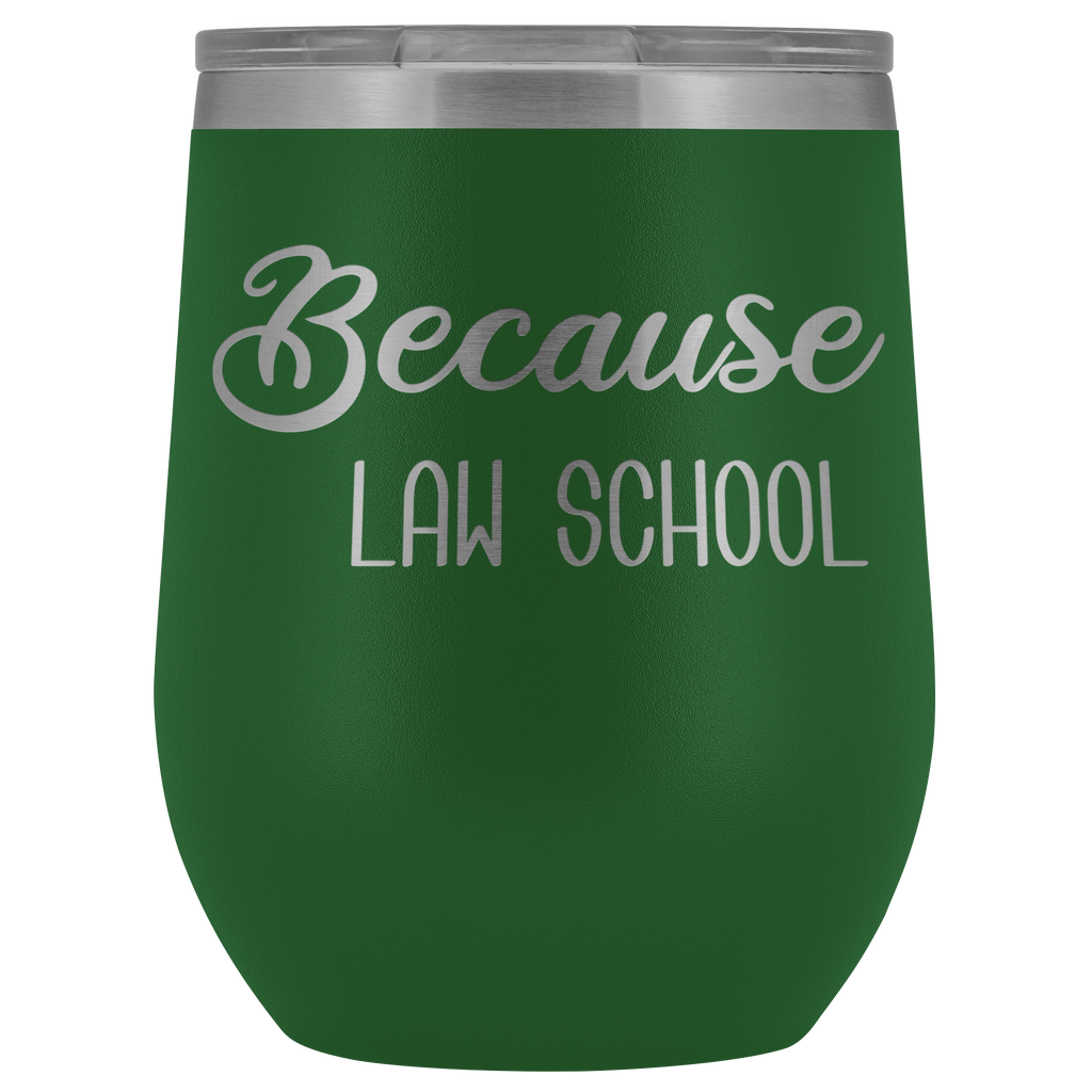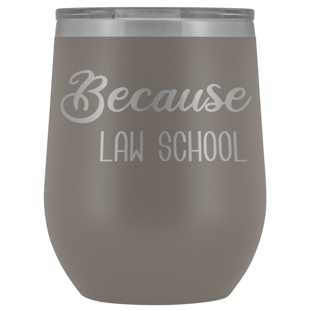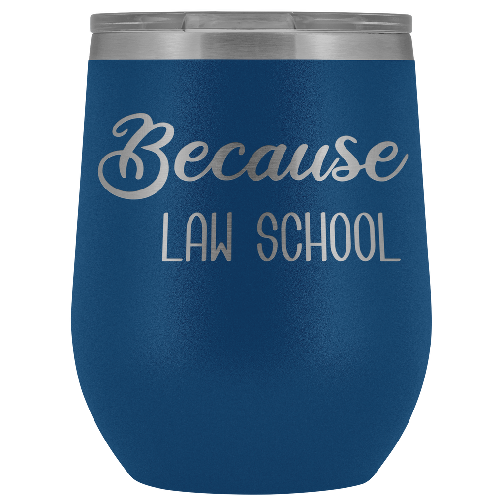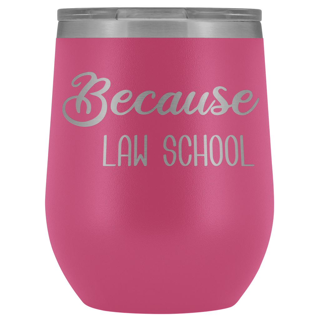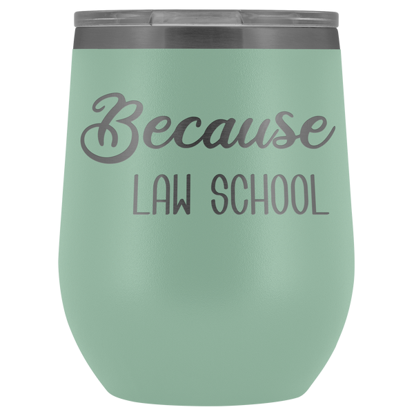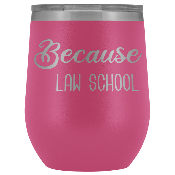 Because Law School Wine Tumbler Funny Law Student Gifts Stemless Insulated Hot Cold BPA Free 12oz Travel Sippy Cup