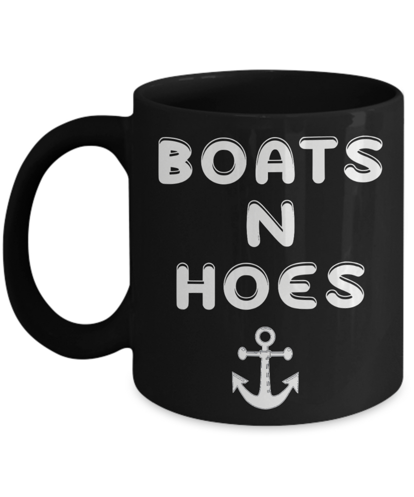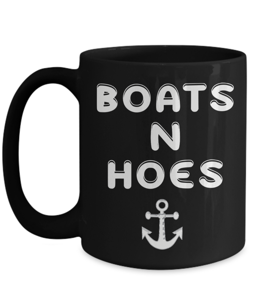 Boats N Hoes Cup Funny Black Ceramic Coffee Mug for Boating