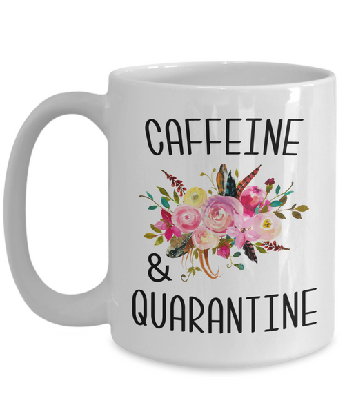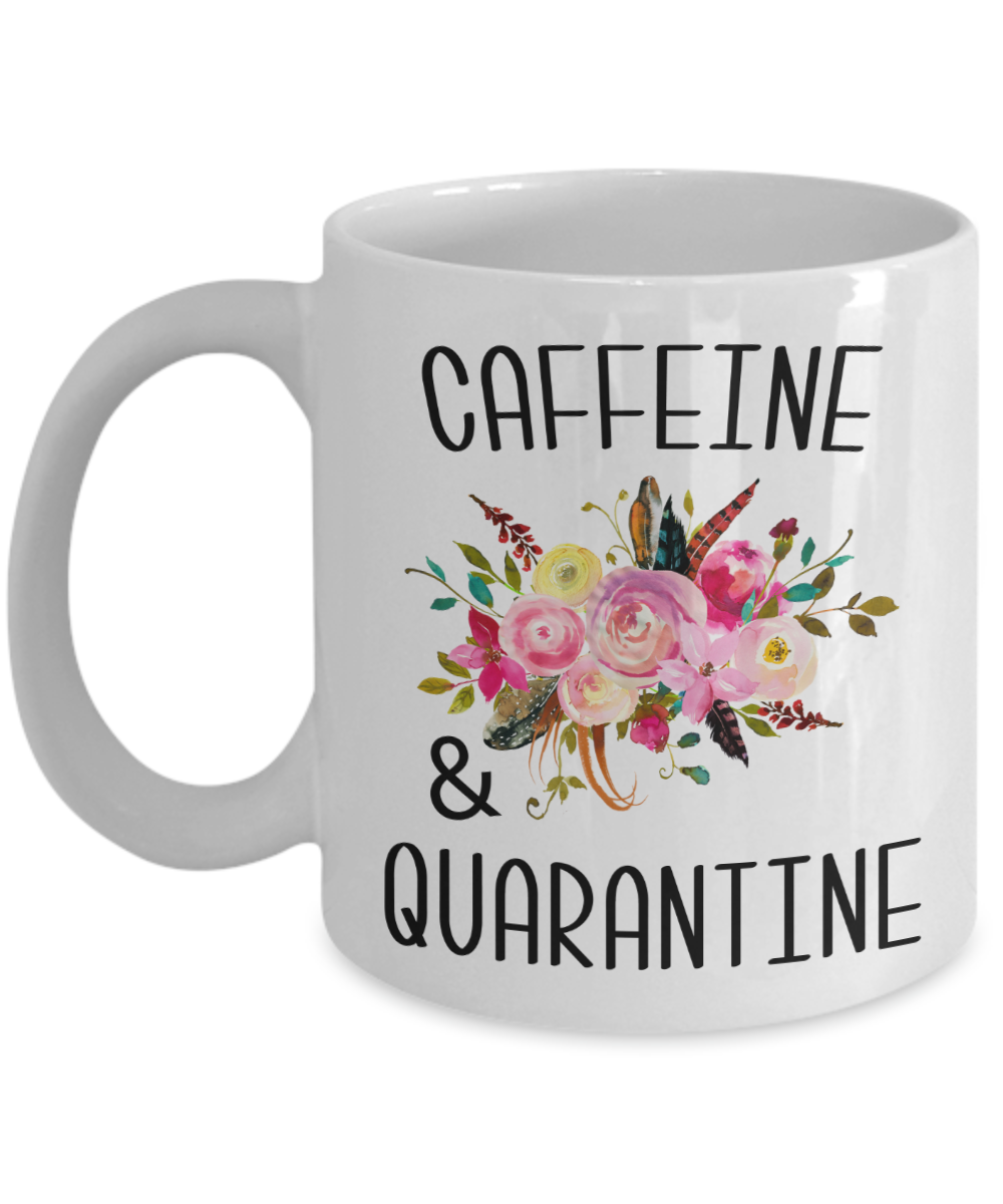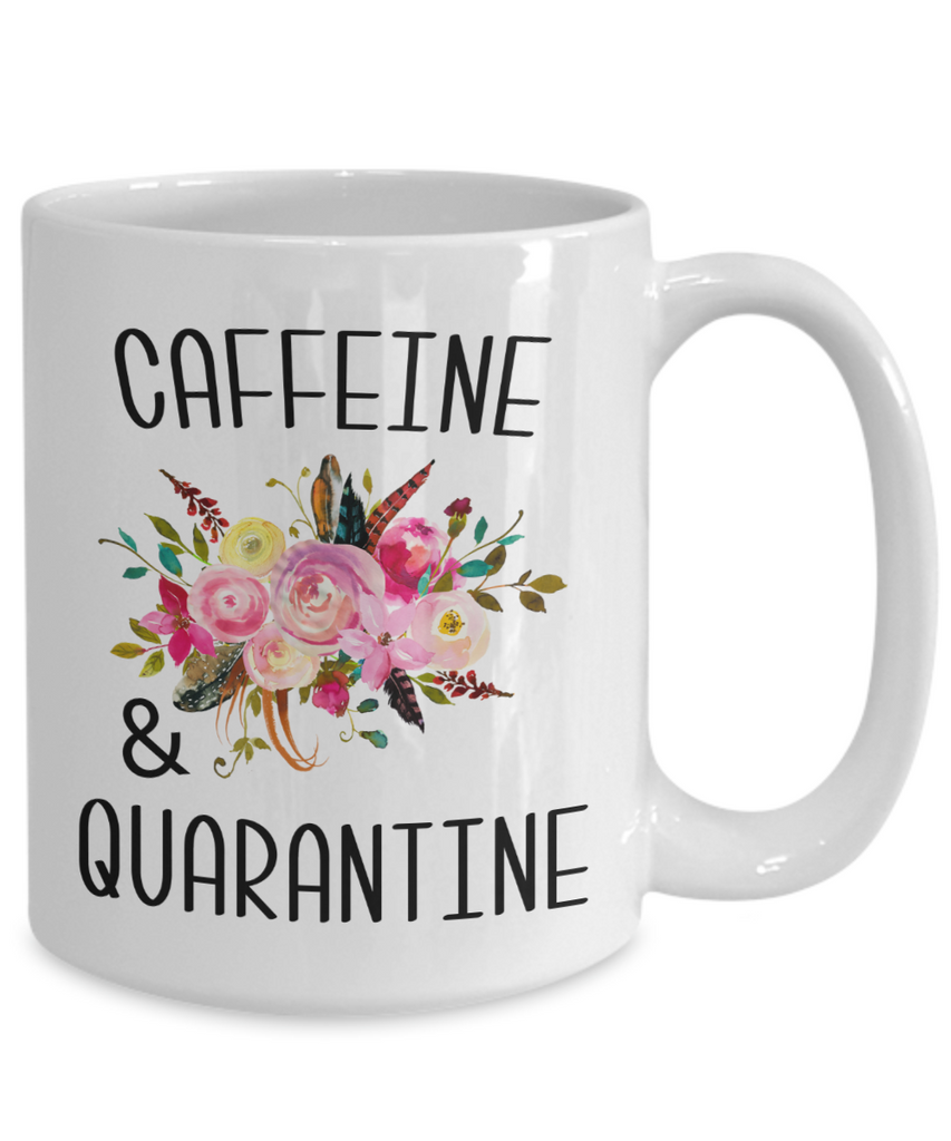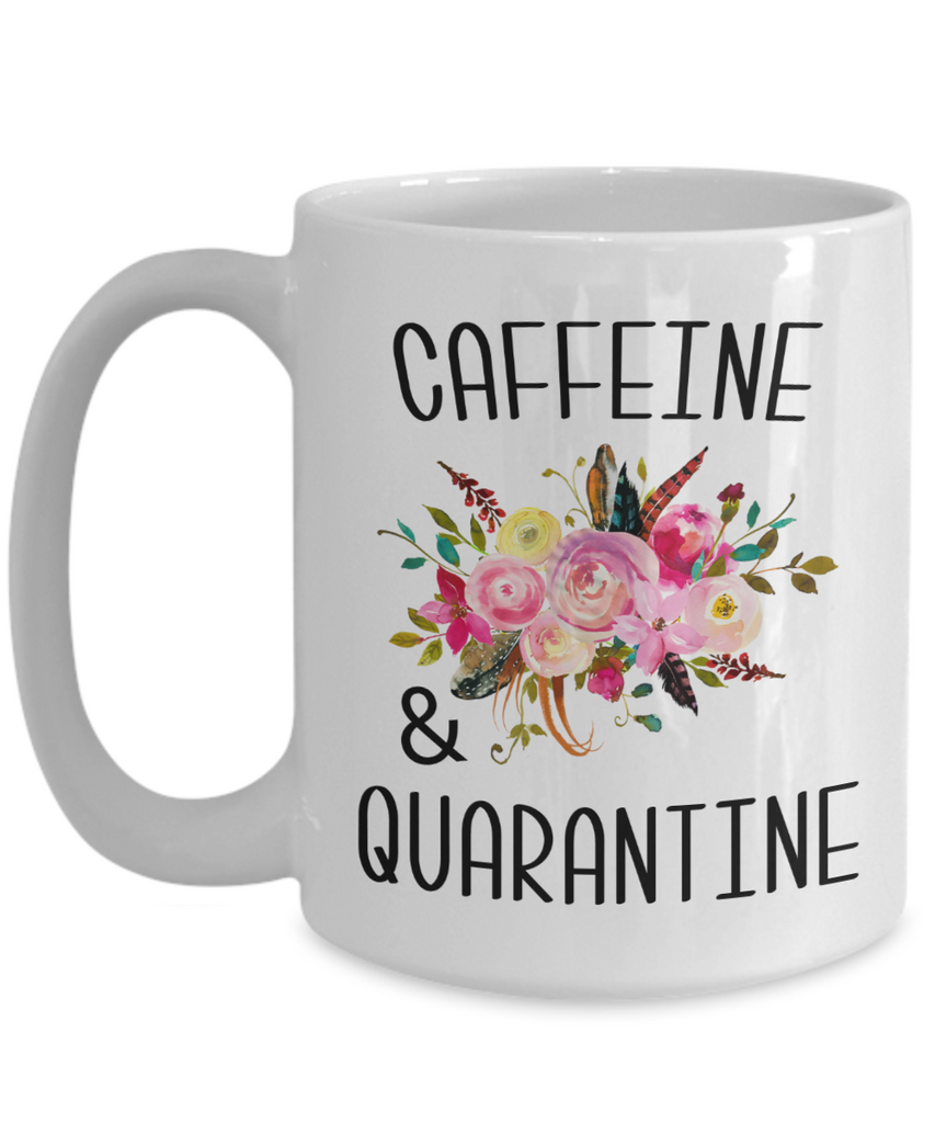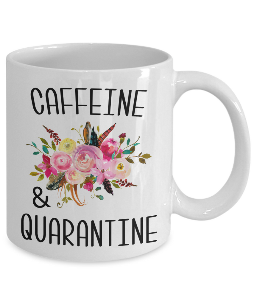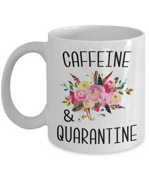 Caffeine and Quarantine Mug Funny Gift For Her Floral Coffee Cup