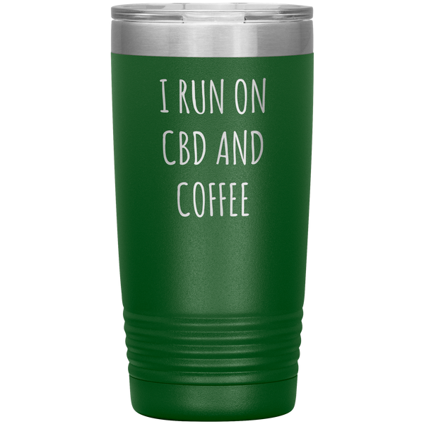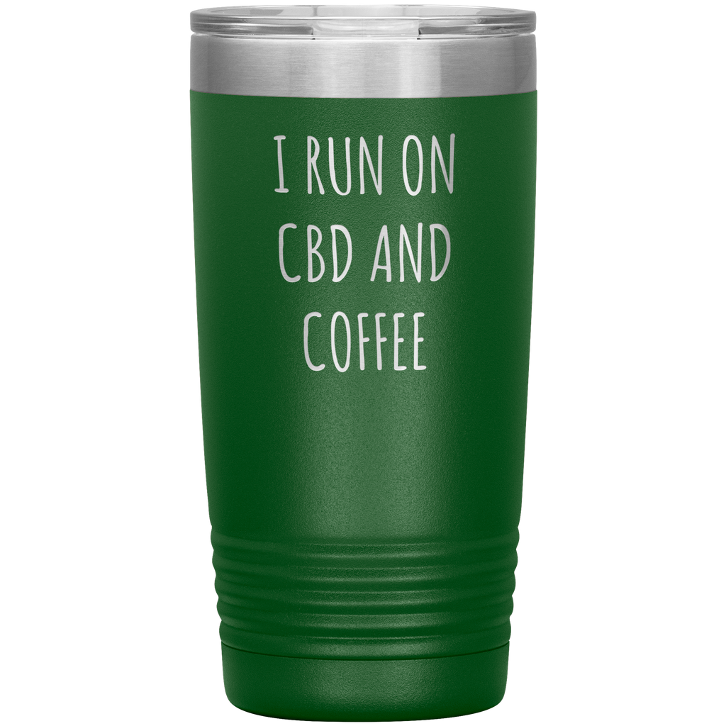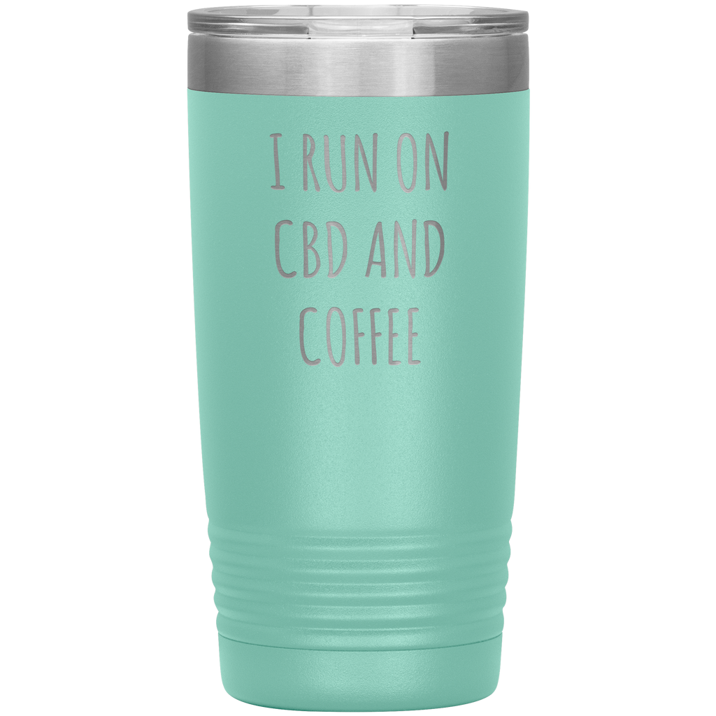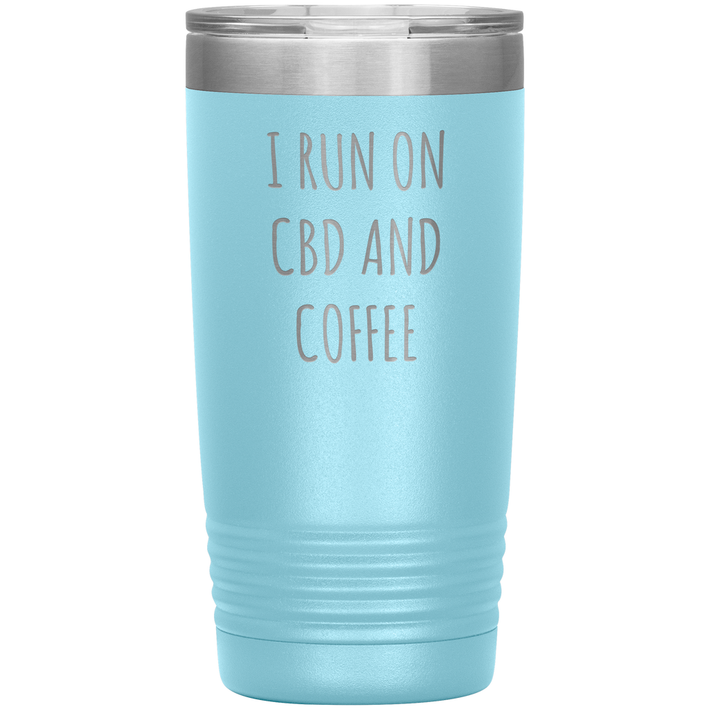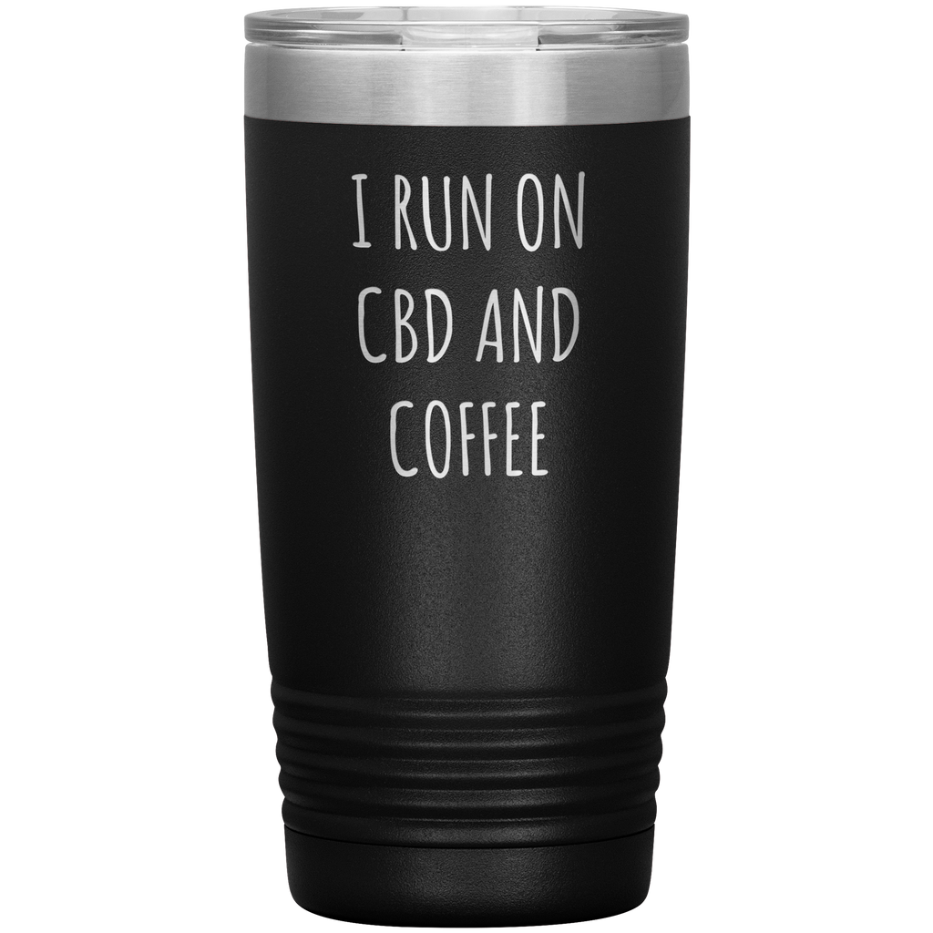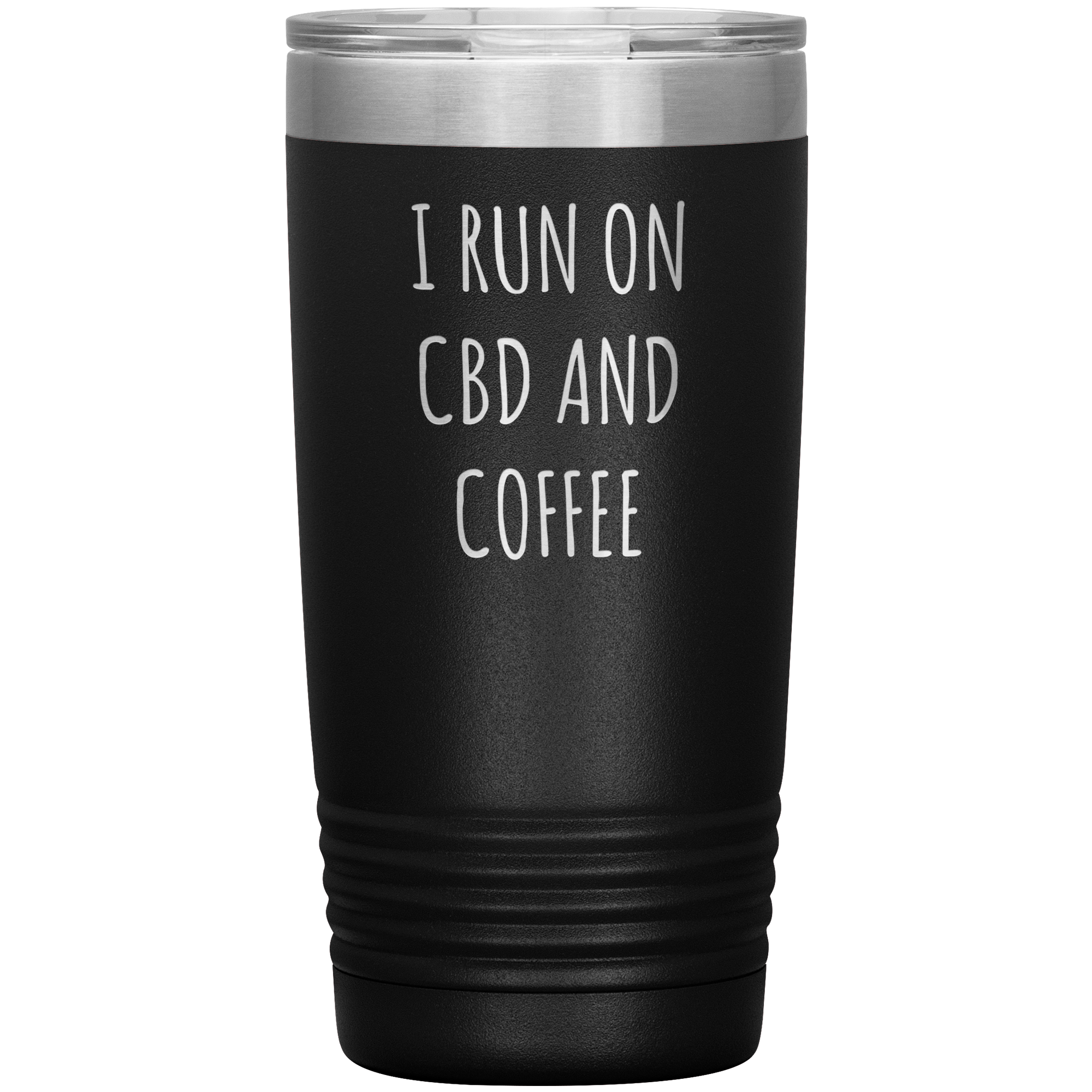 CBD Oil Gift I Run on CBD & Coffee Tumbler Mug Insulated Hot Cold Travel Coffee Cup 20oz BPA Free