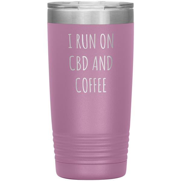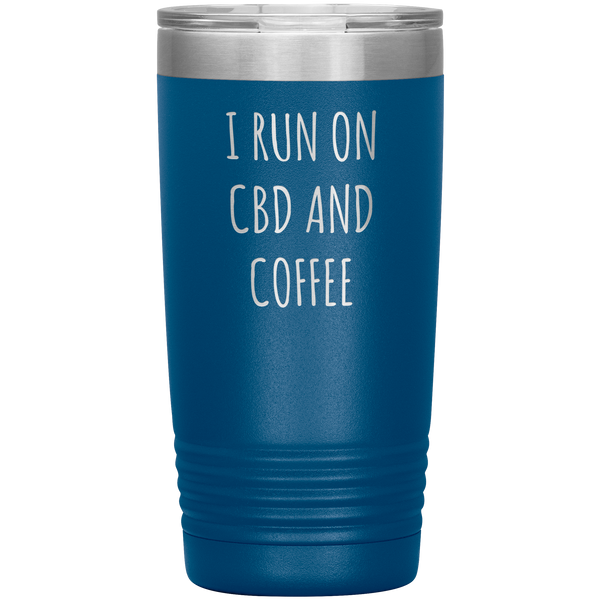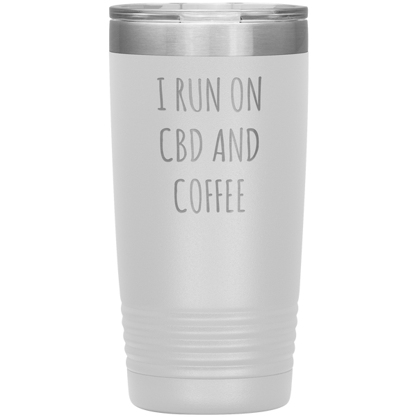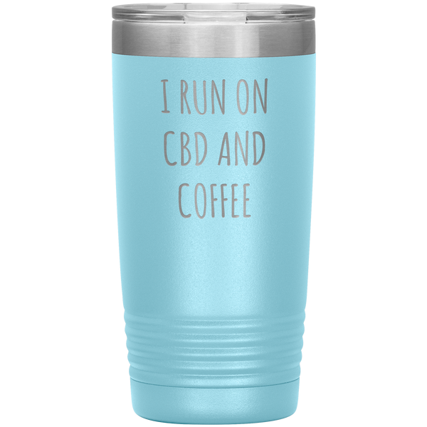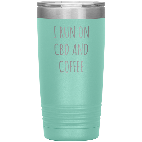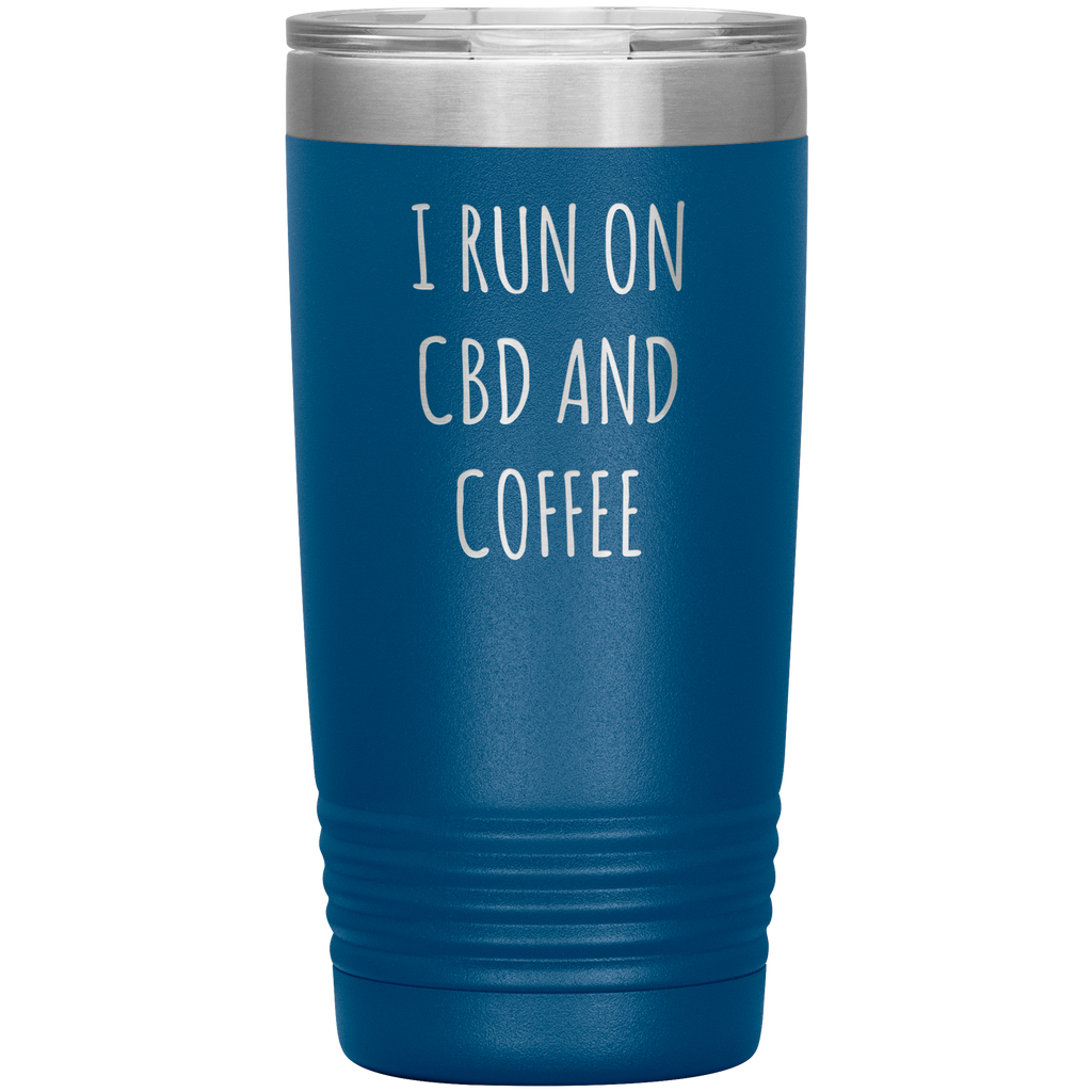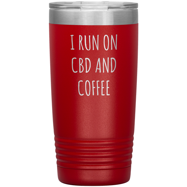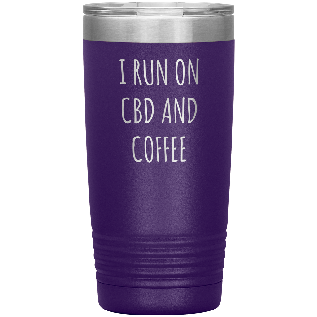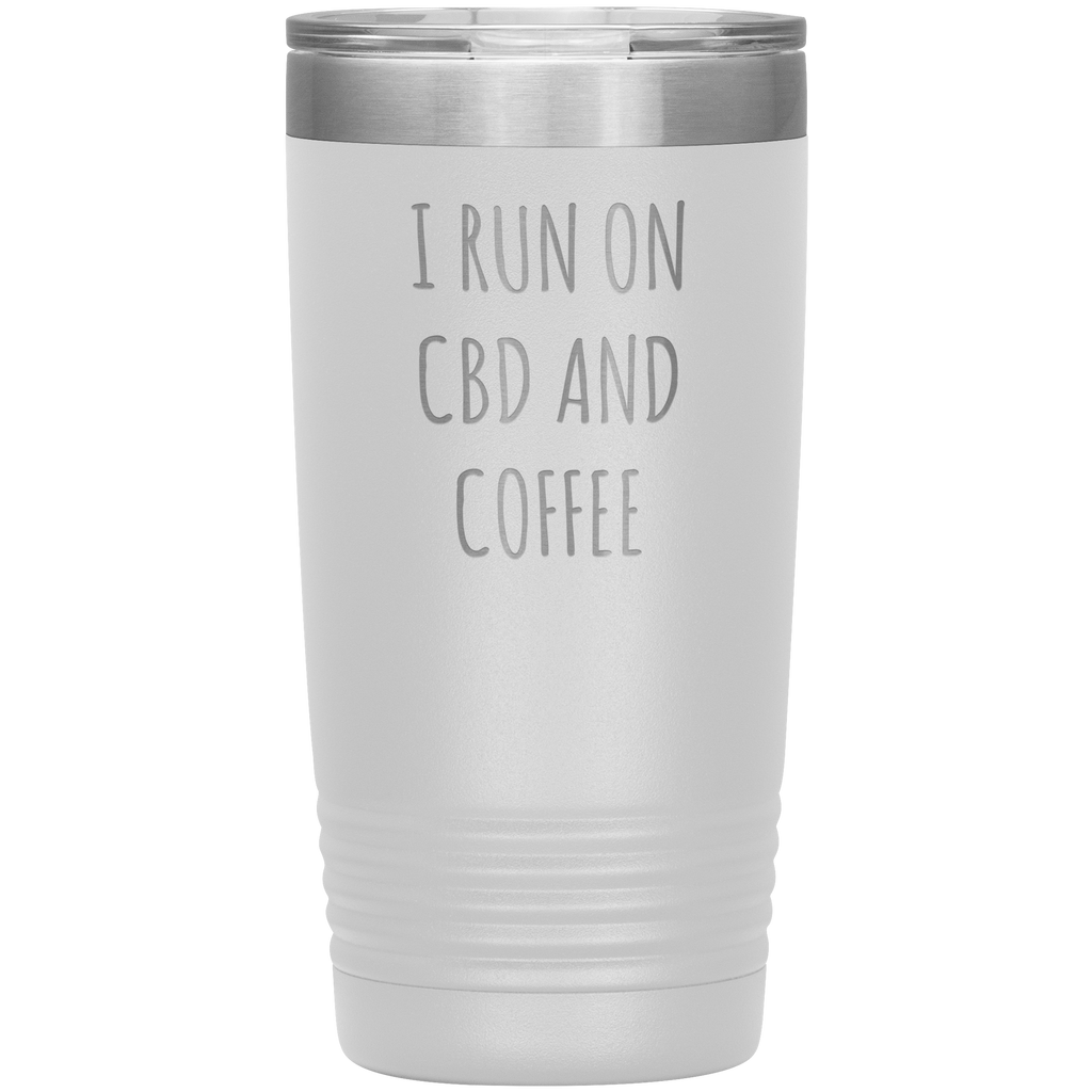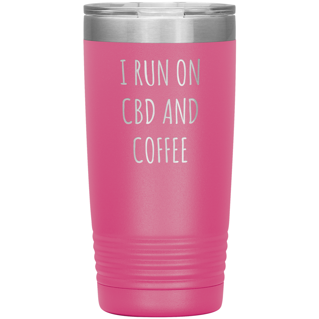 CBD Oil Gift I Run on CBD & Coffee Tumbler Mug Insulated Hot Cold Travel Coffee Cup 20oz BPA Free