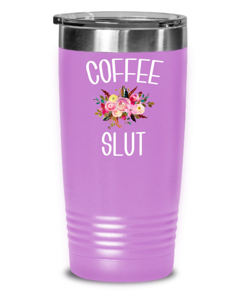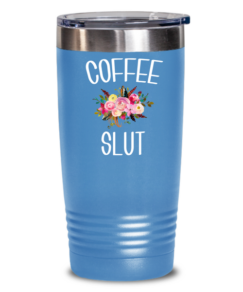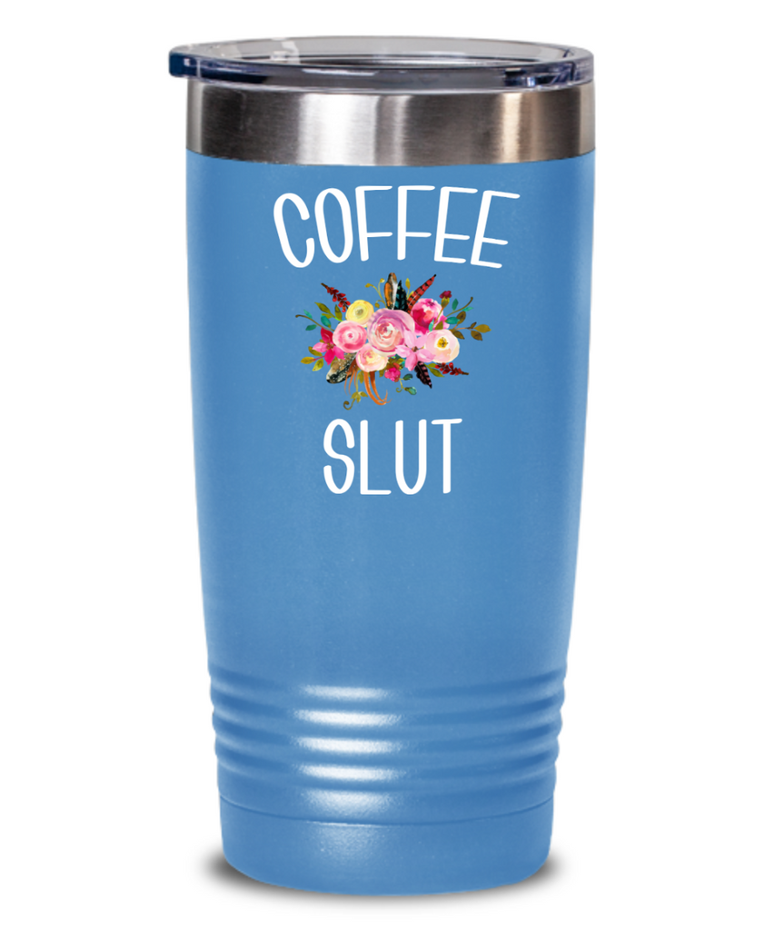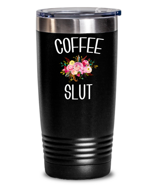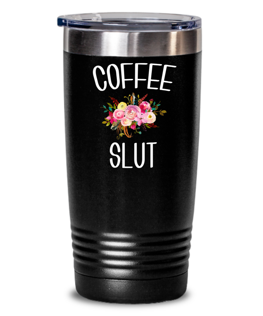 Coffee Slut Tumbler Funny Mug Gift for Coffee Addict Best Friend Gift Mugs for Women Floral Insulated Hot Cold Travel Cup BPA Free