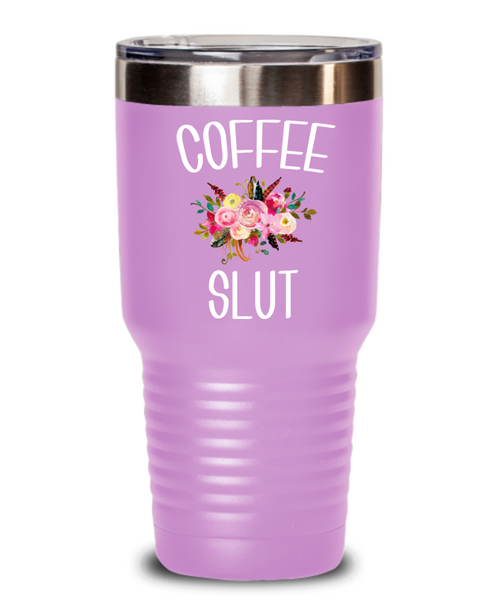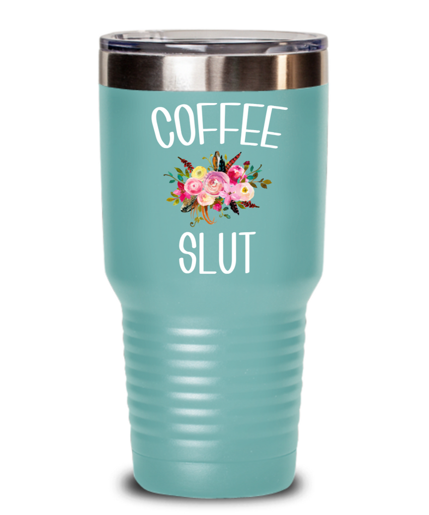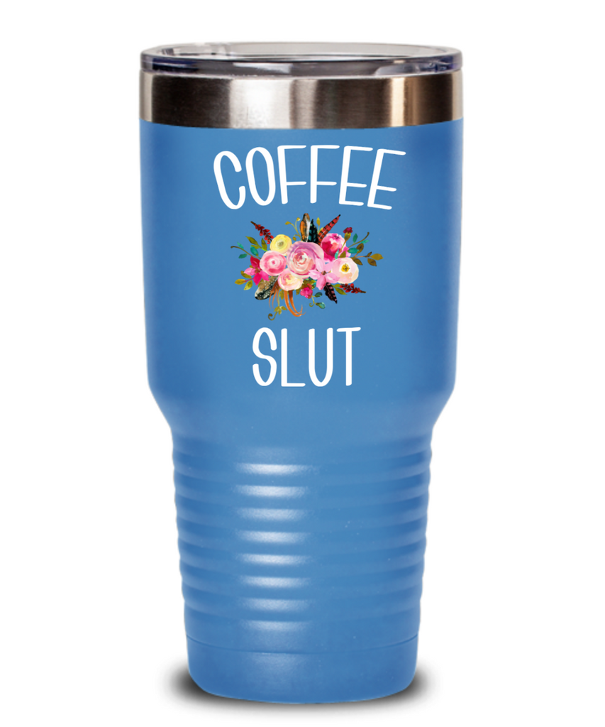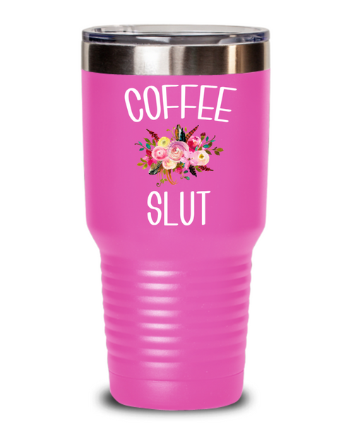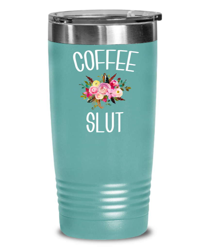 Coffee Slut Tumbler Funny Mug Gift for Coffee Addict Best Friend Gift Mugs for Women Floral Insulated Hot Cold Travel Cup BPA Free