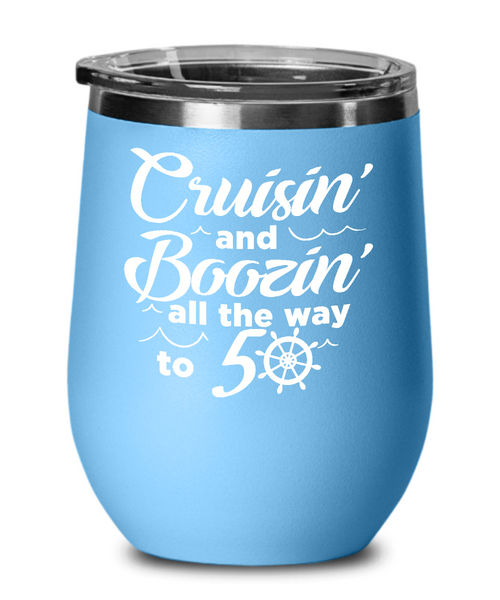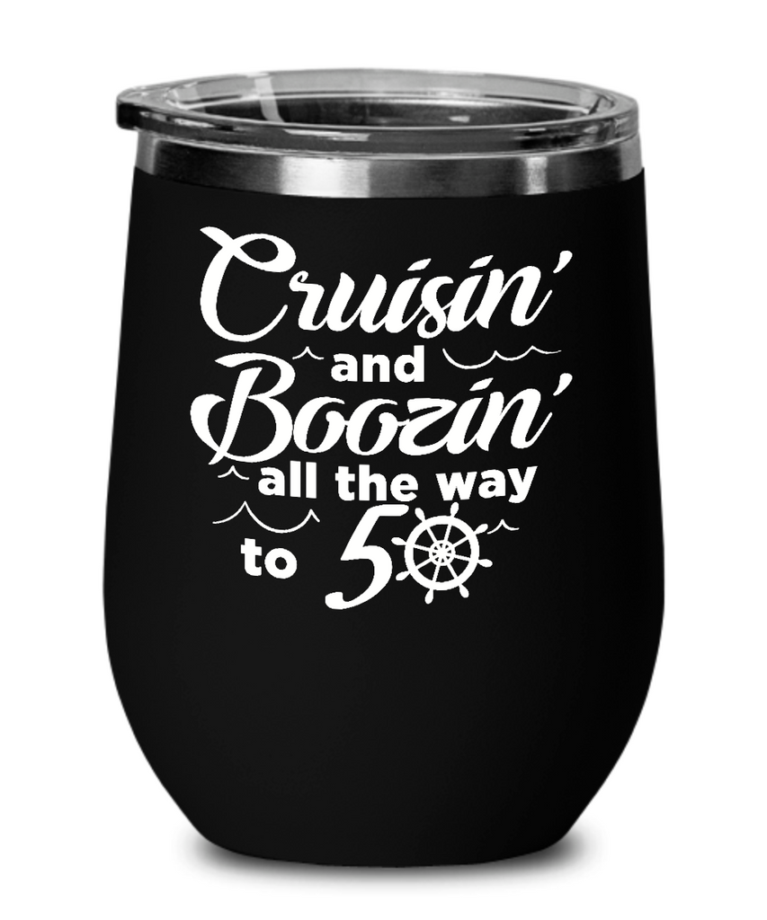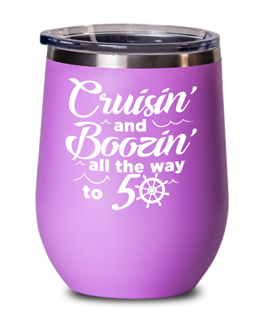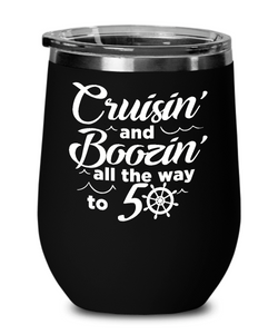 Cruisin' And Boozin' All The Way To 50 Insulated Wine Tumbler 12oz Travel Cup Funny Gift