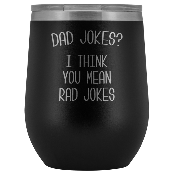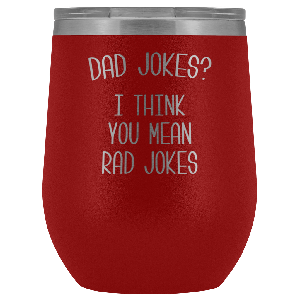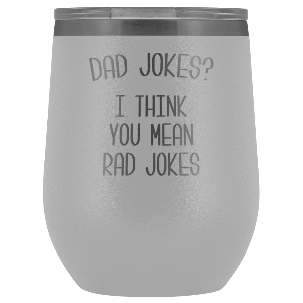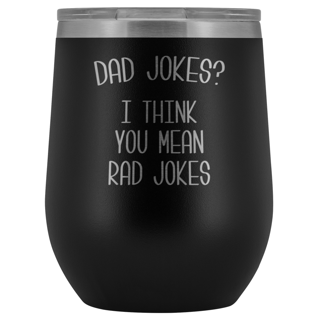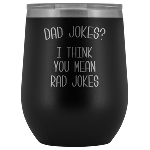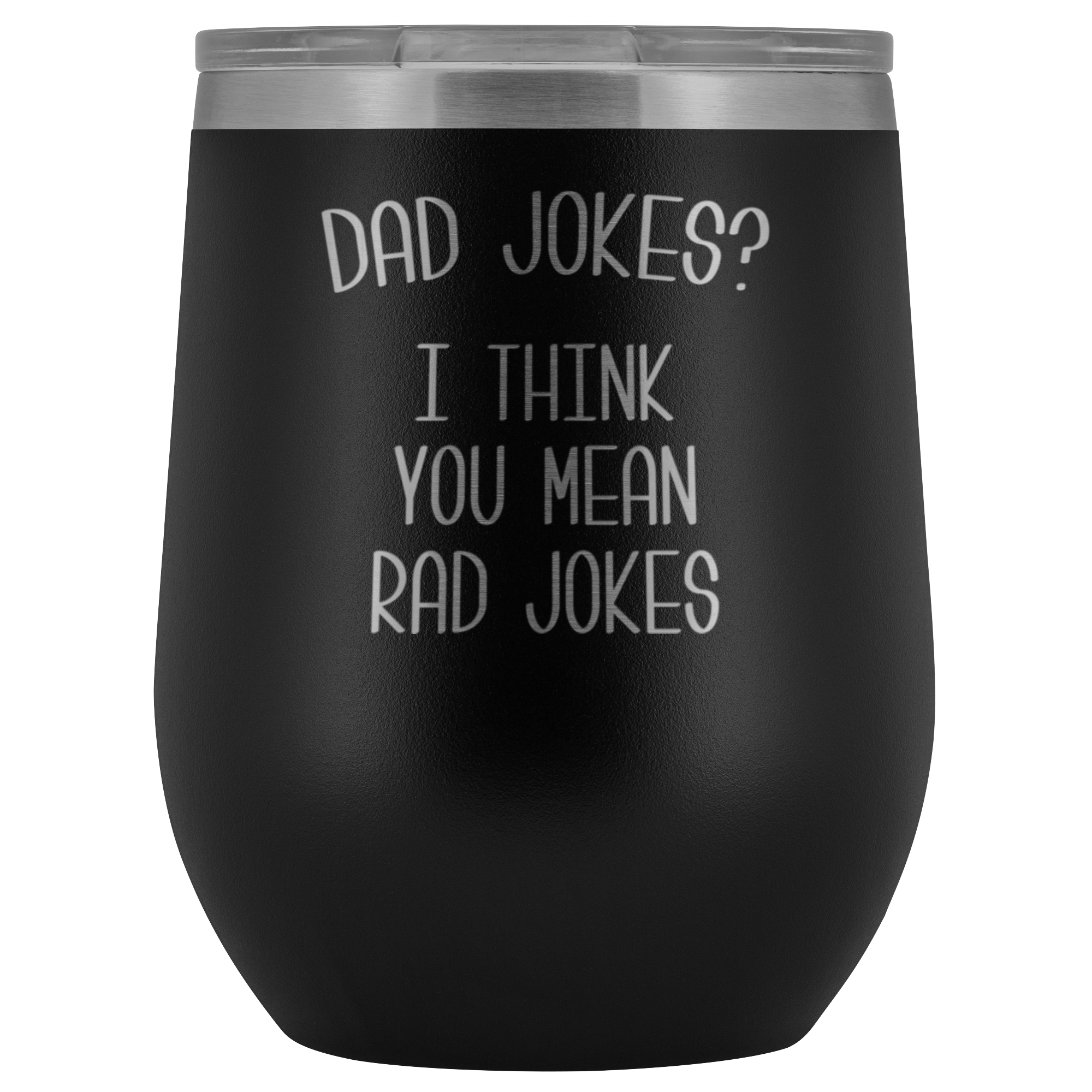 Dad Jokes I Think You Mean Rad Jokes Funny Stemless Stainless Steel Insulated Wine Tumbler Gift Hot Cold BPA Free 12oz Travel Cup