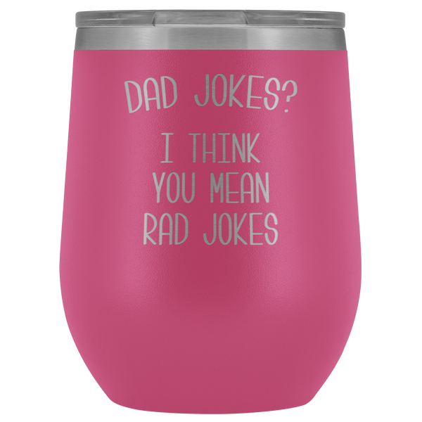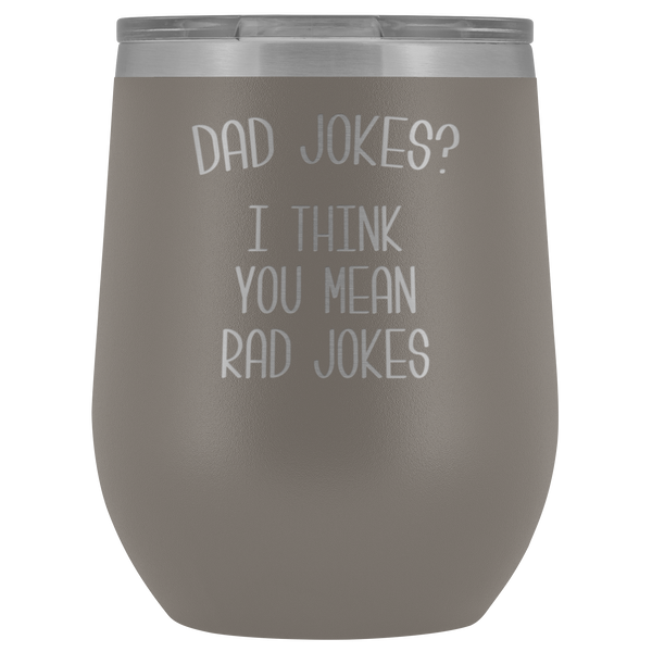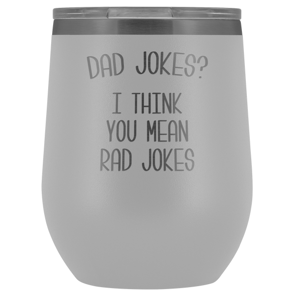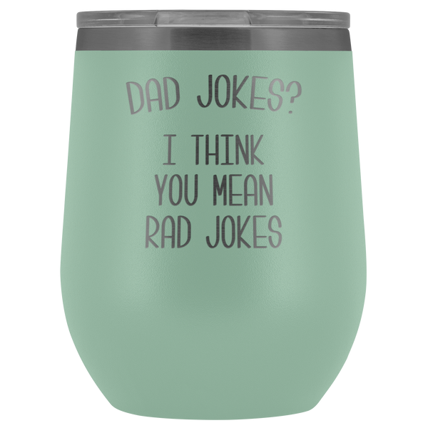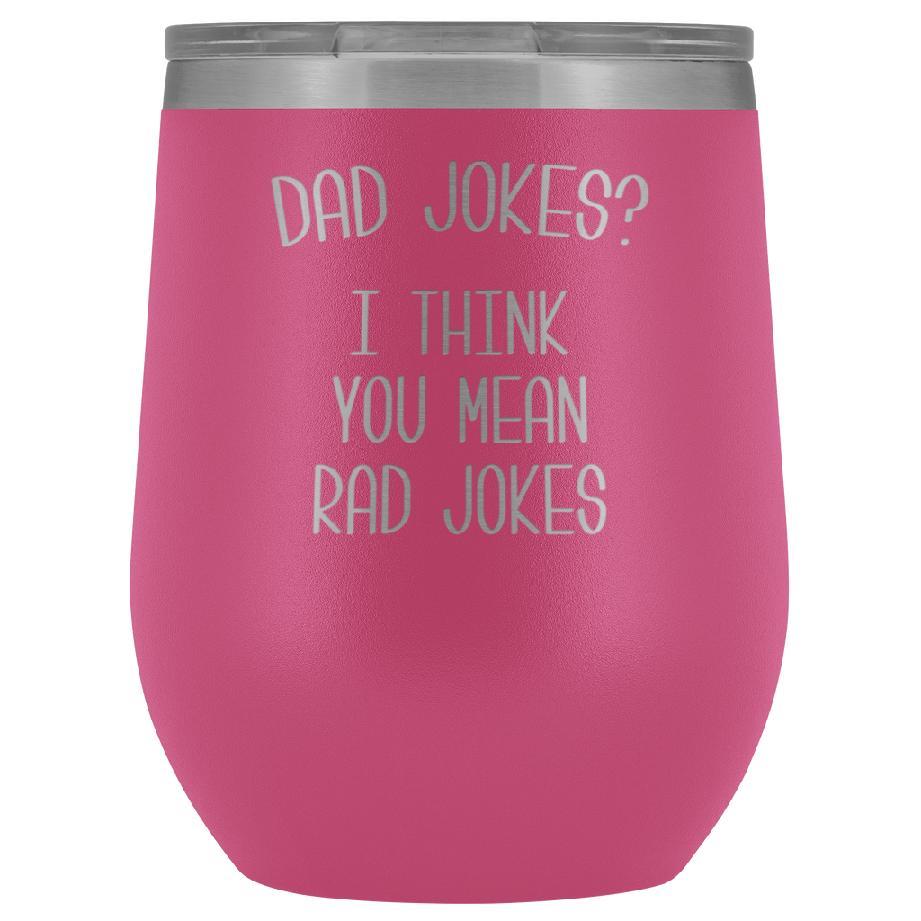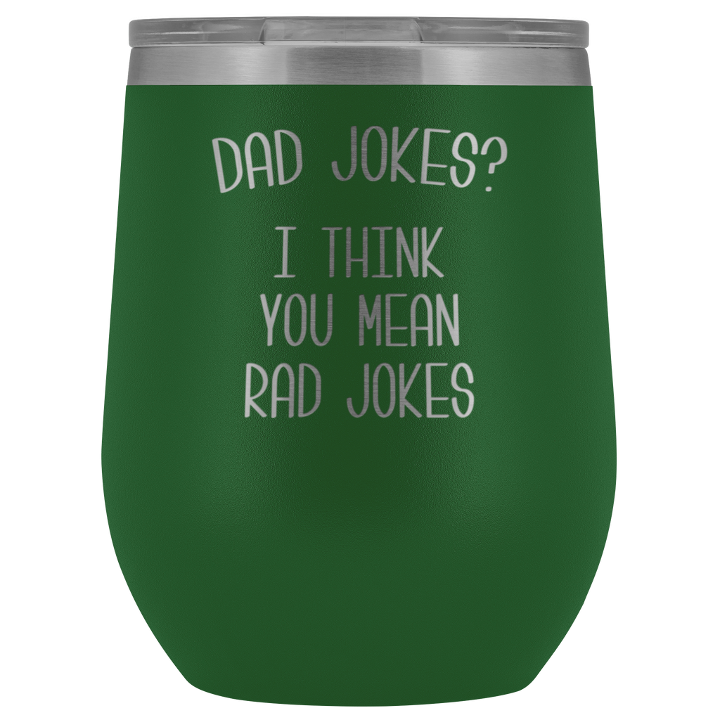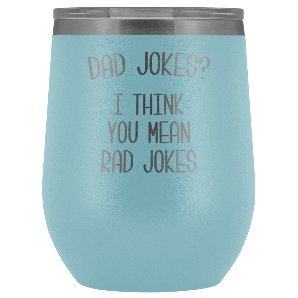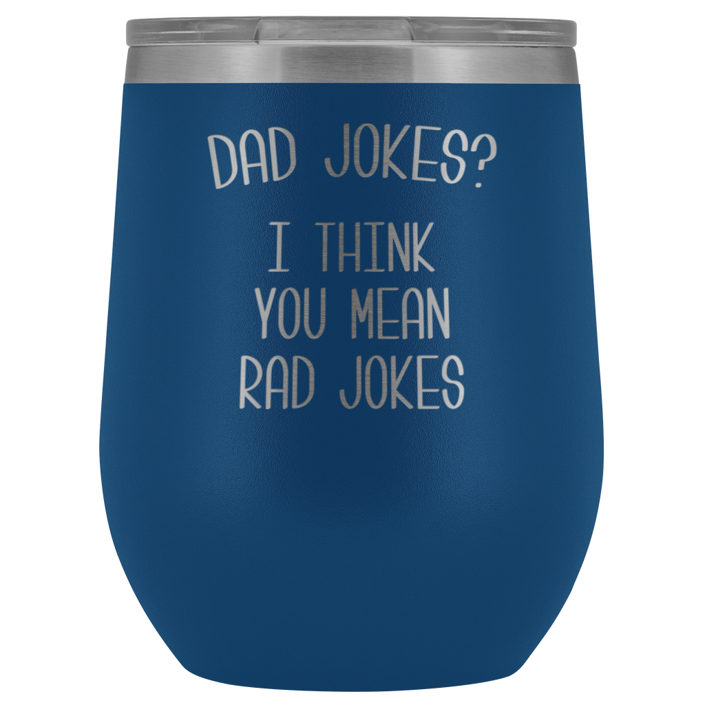 Dad Jokes I Think You Mean Rad Jokes Funny Stemless Stainless Steel Insulated Wine Tumbler Gift Hot Cold BPA Free 12oz Travel Cup