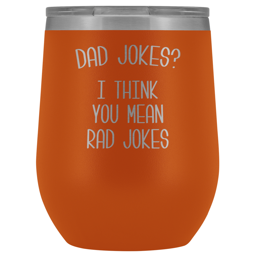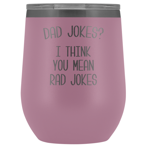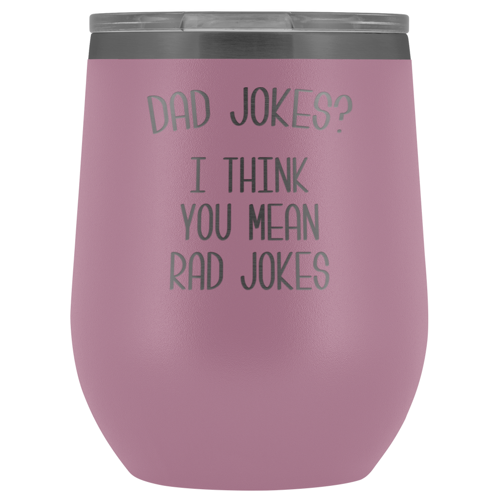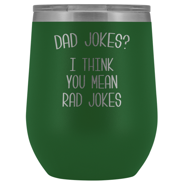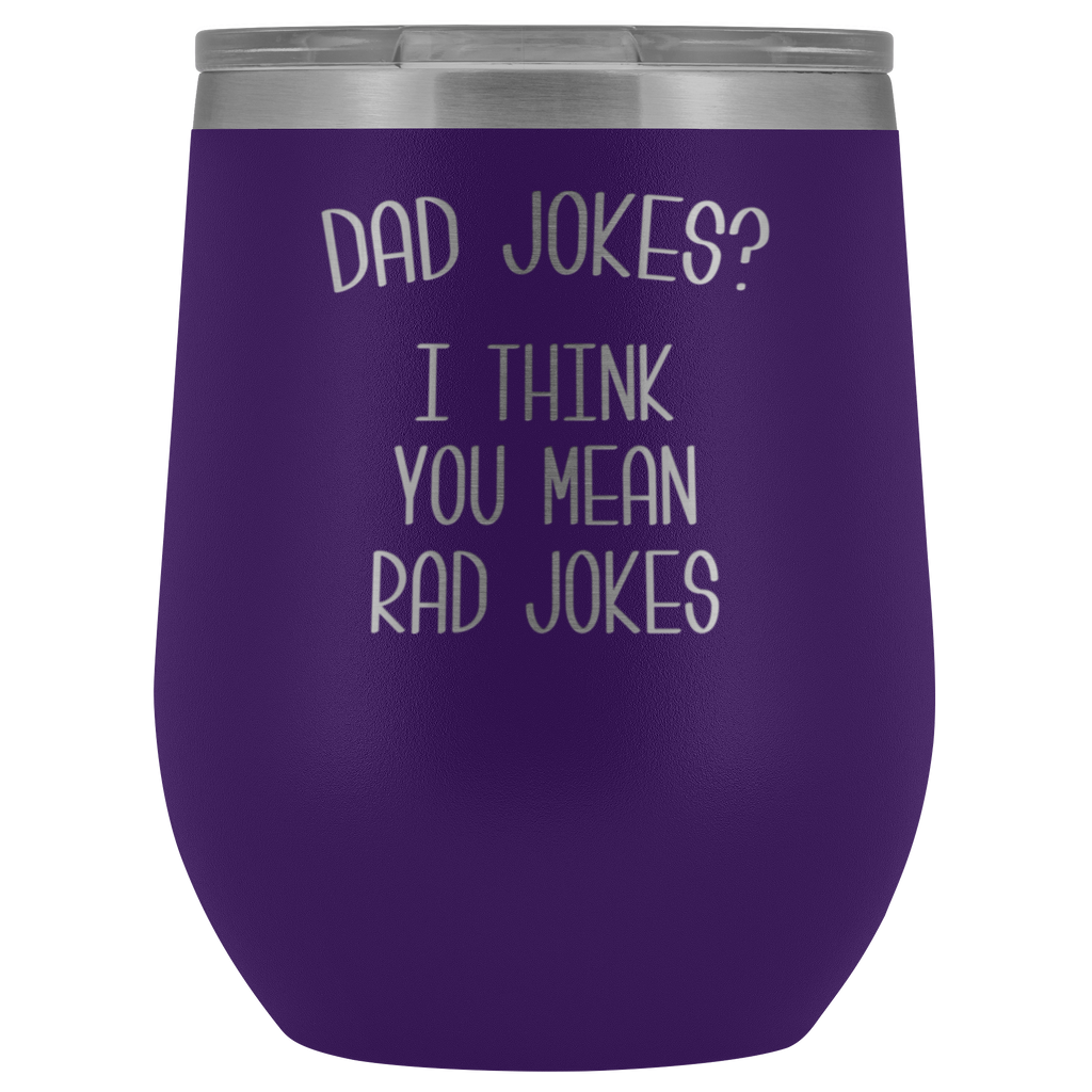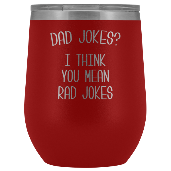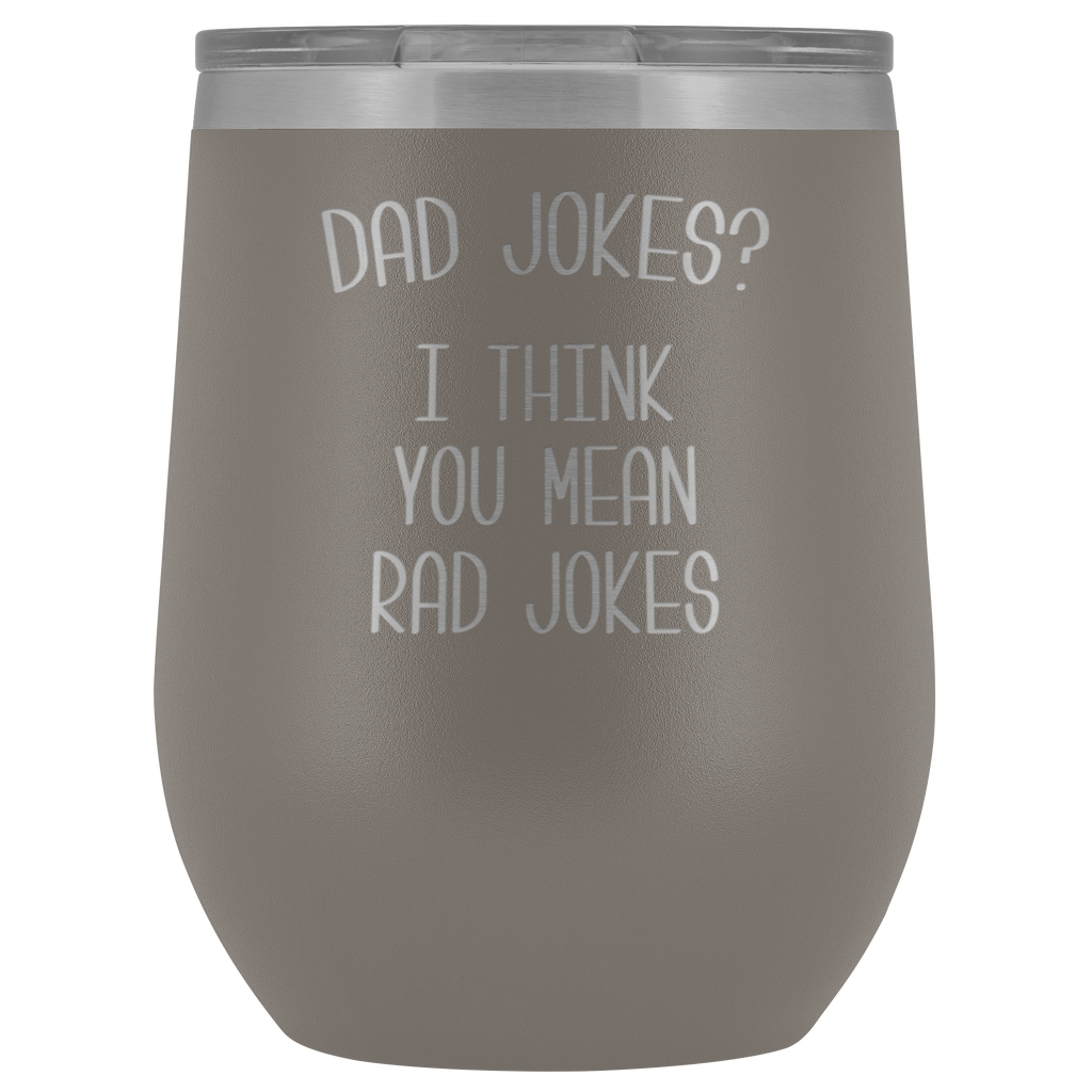 Dad Jokes I Think You Mean Rad Jokes Funny Stemless Stainless Steel Insulated Wine Tumbler Gift Hot Cold BPA Free 12oz Travel Cup