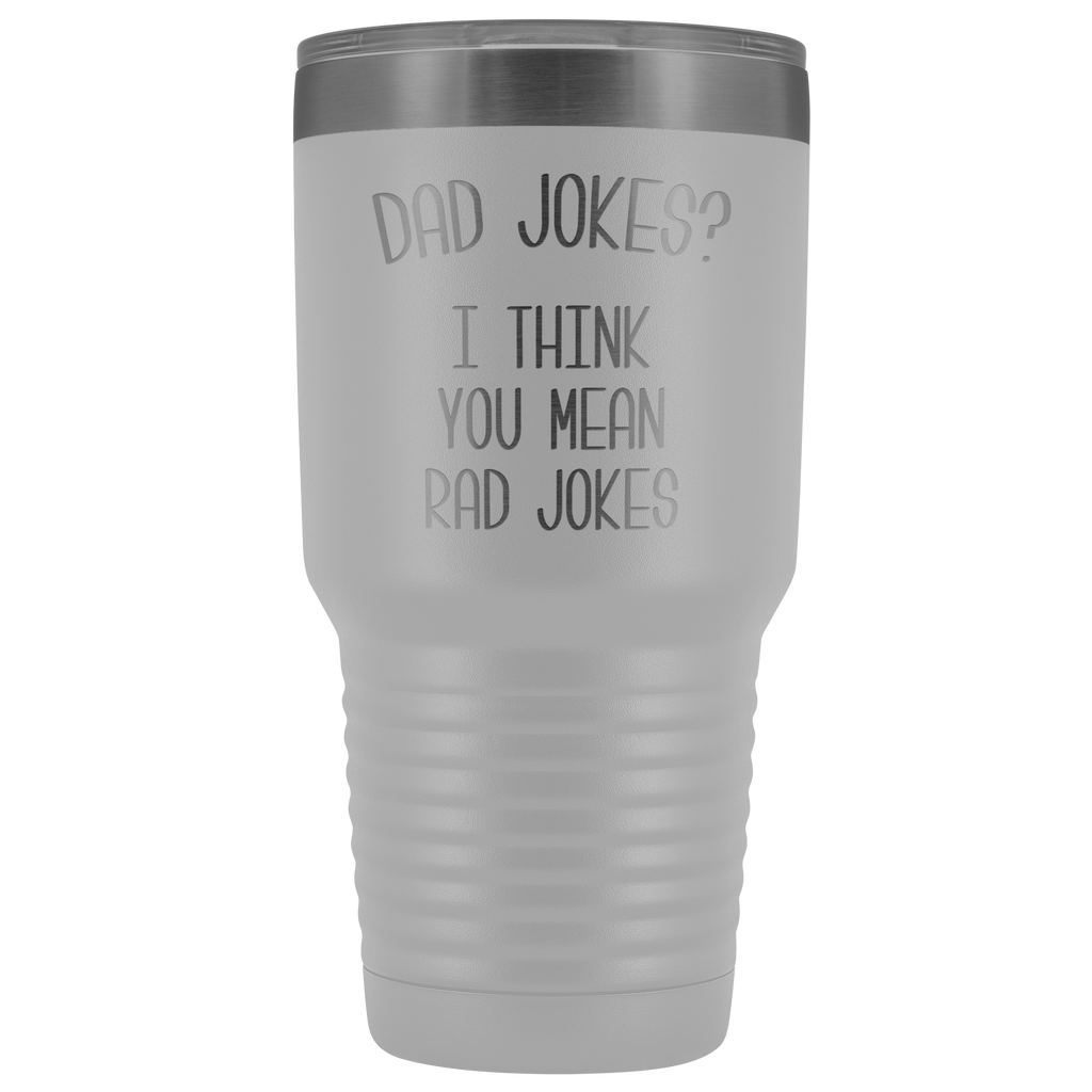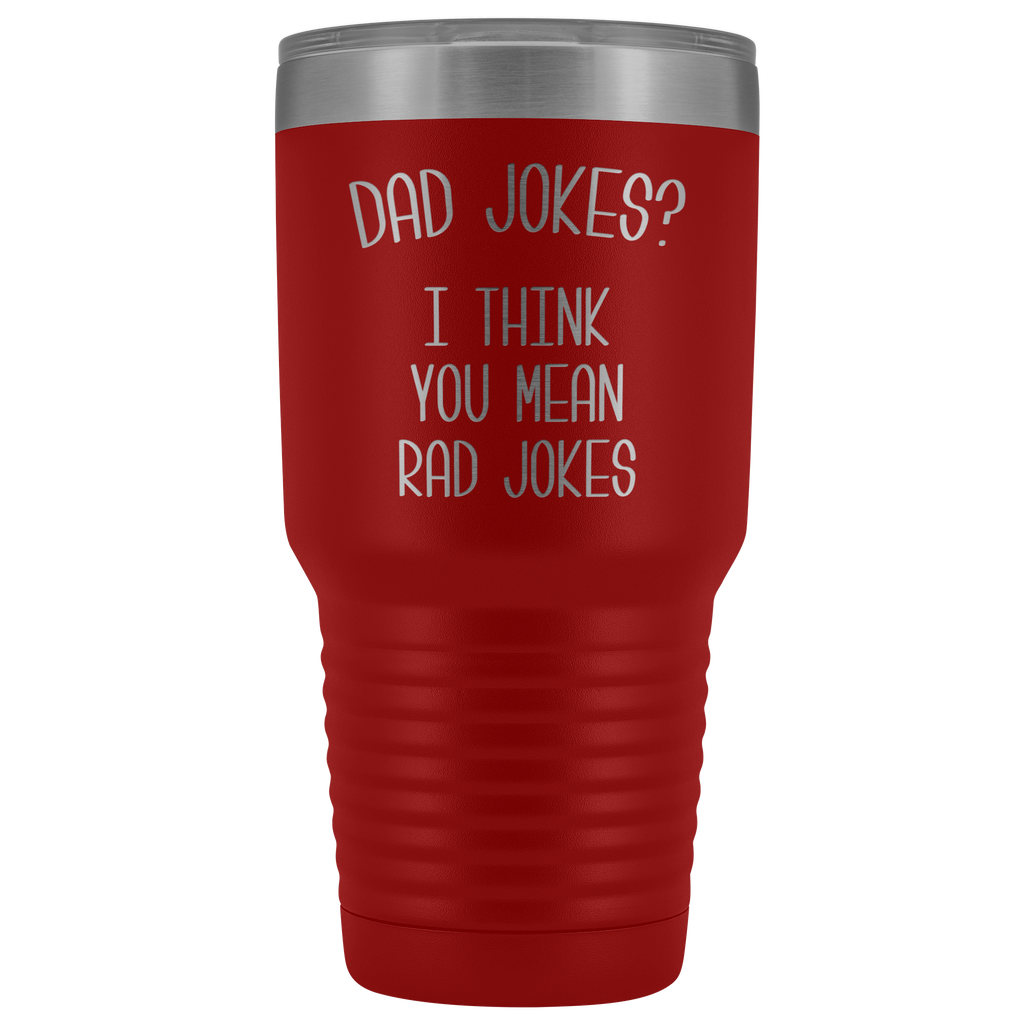 Dad Jokes Tumbler I Think You Mean Rad Jokes Funny Father's Day Gift Metal Mug Insulated Hot Cold Travel Coffee Cup 30oz BPA Free