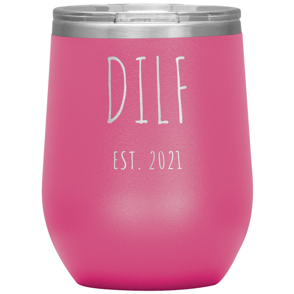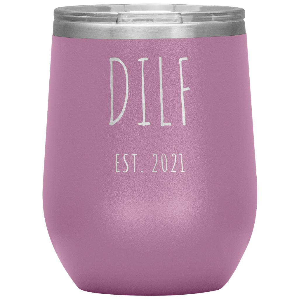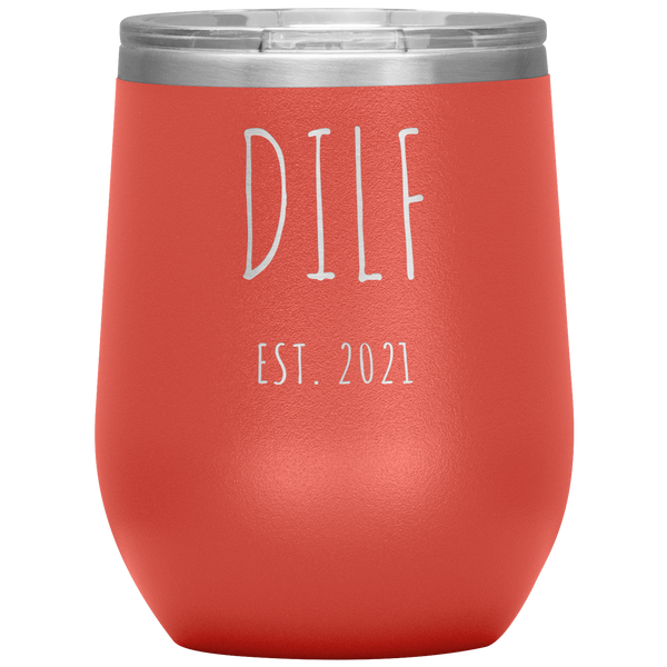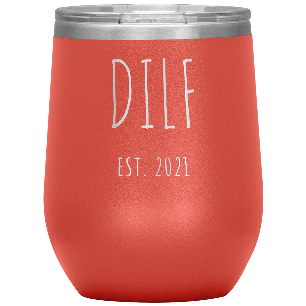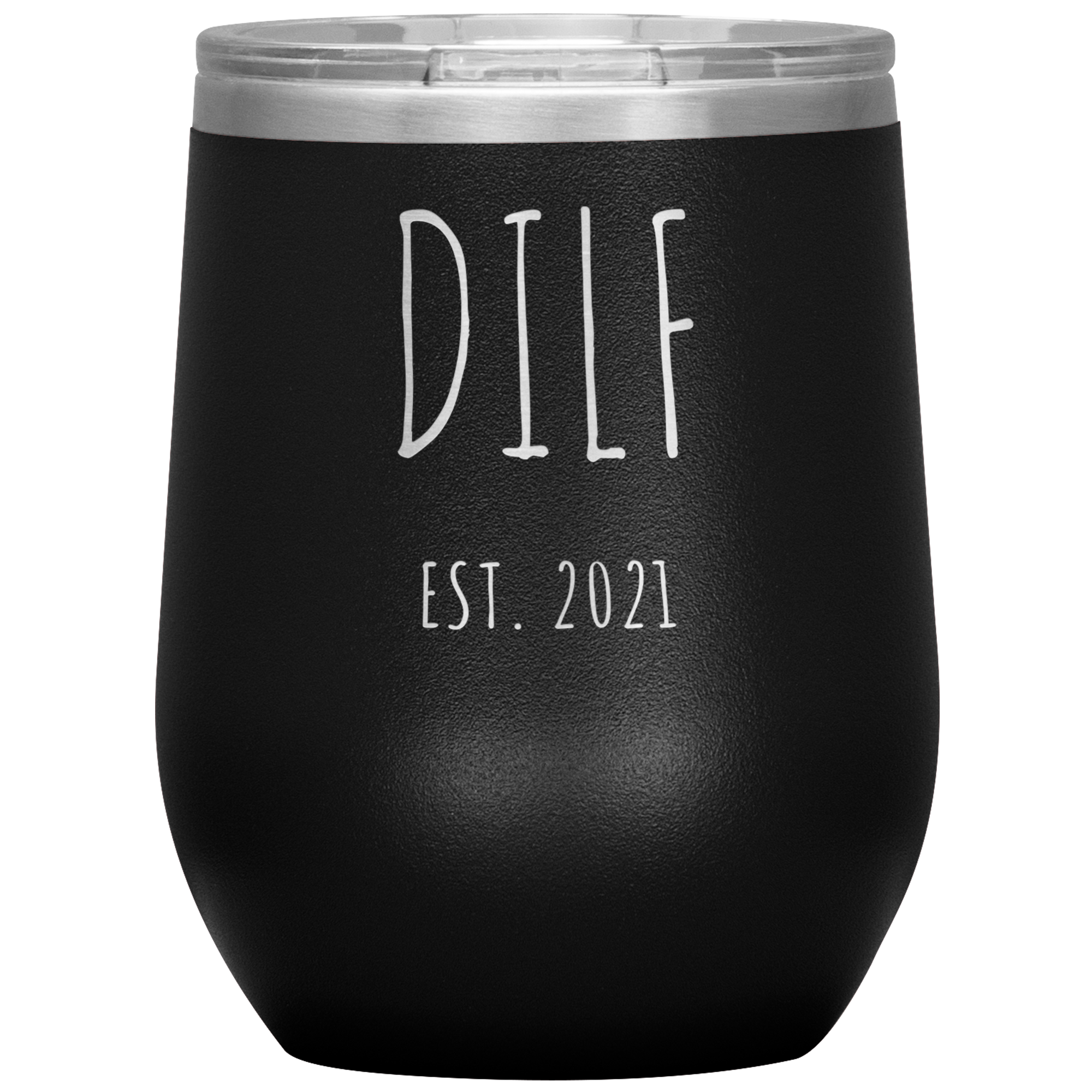 DILF Est 2021 Present For New Dad Gifts Funny New Father Tumbler Future Dad Stemless Stainless Steel Insulated Wine Tumbler BPA Free 12oz