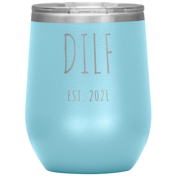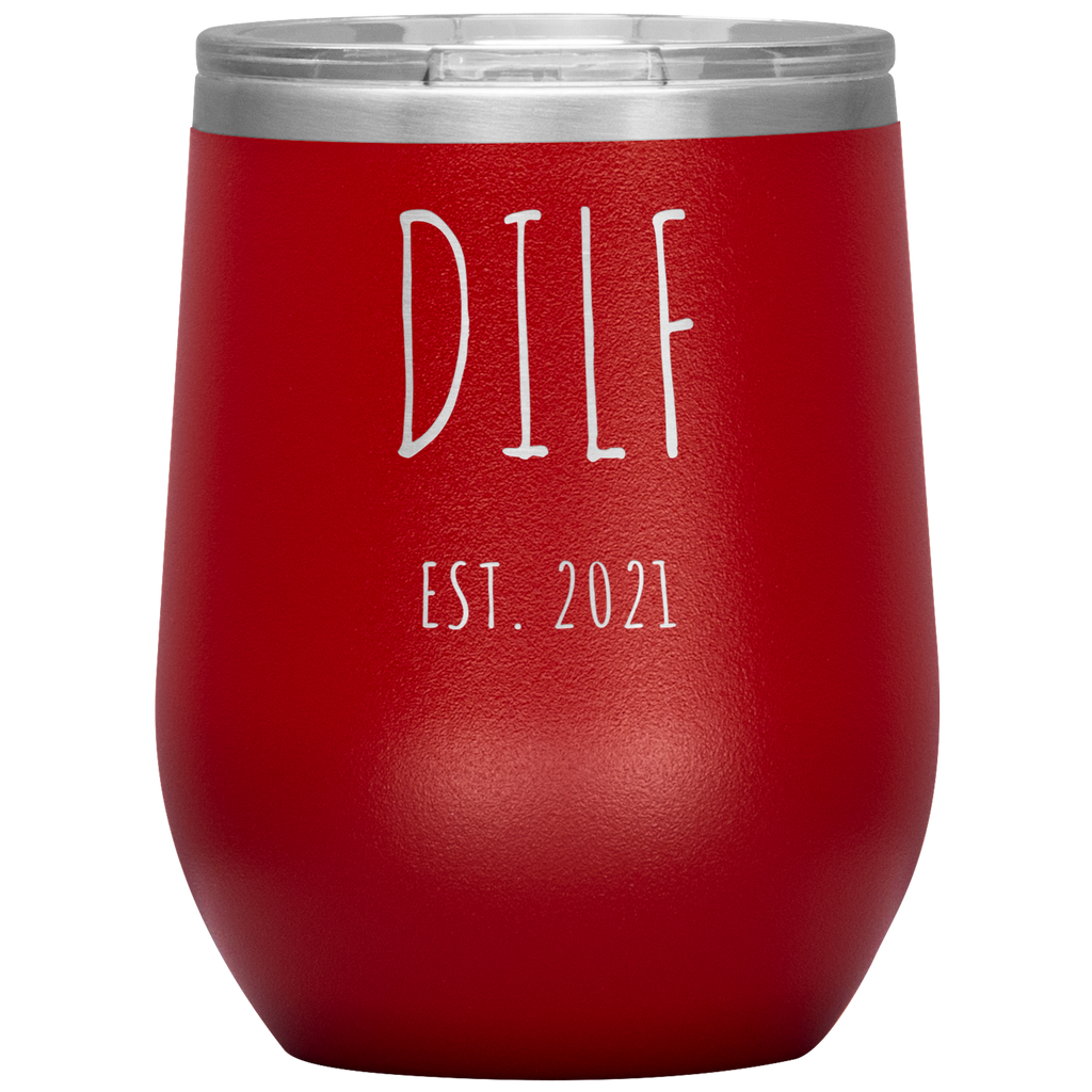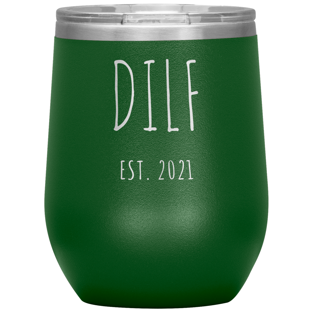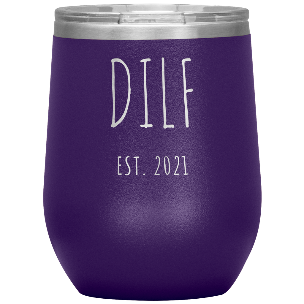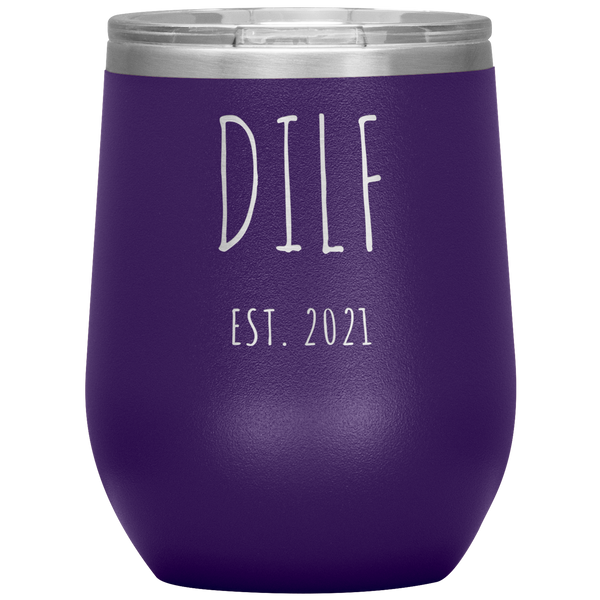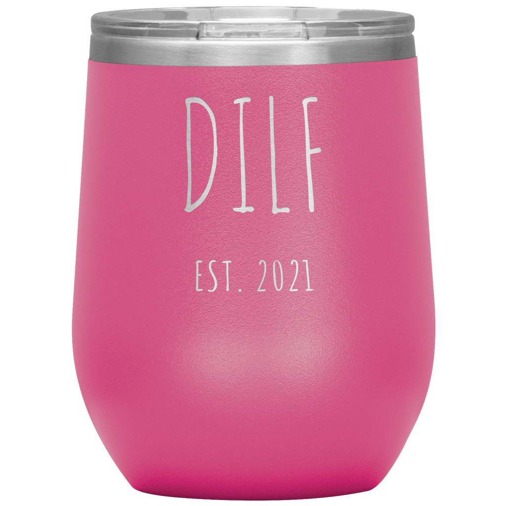 DILF Est 2021 Present For New Dad Gifts Funny New Father Tumbler Future Dad Stemless Stainless Steel Insulated Wine Tumbler BPA Free 12oz
