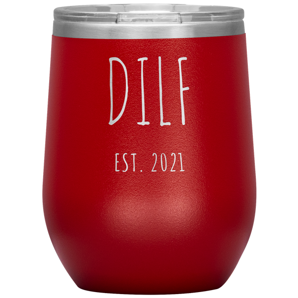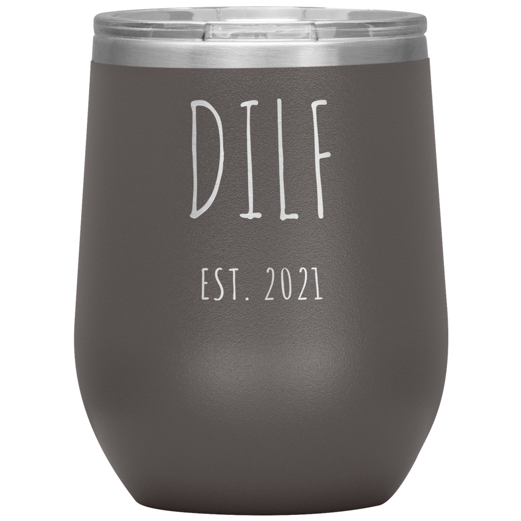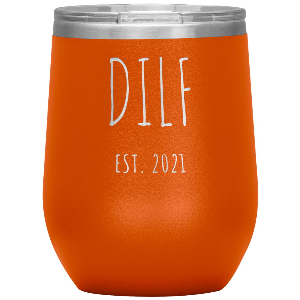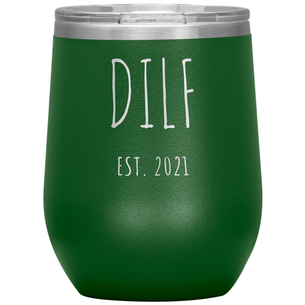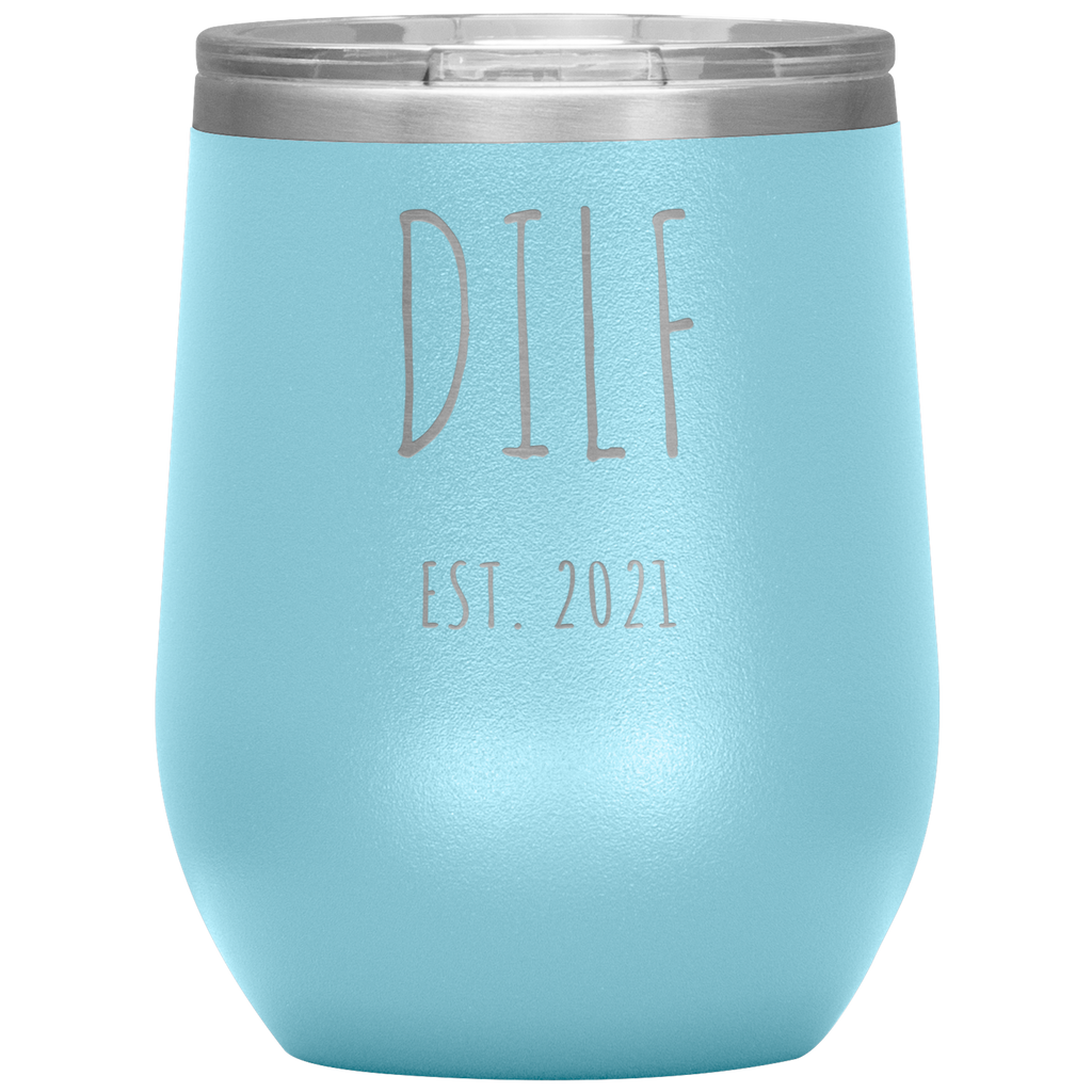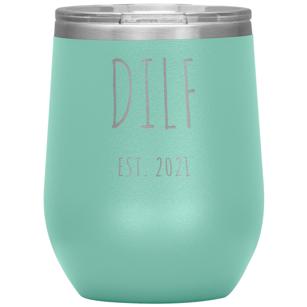 DILF Est 2021 Present For New Dad Gifts Funny New Father Tumbler Future Dad Stemless Stainless Steel Insulated Wine Tumbler BPA Free 12oz