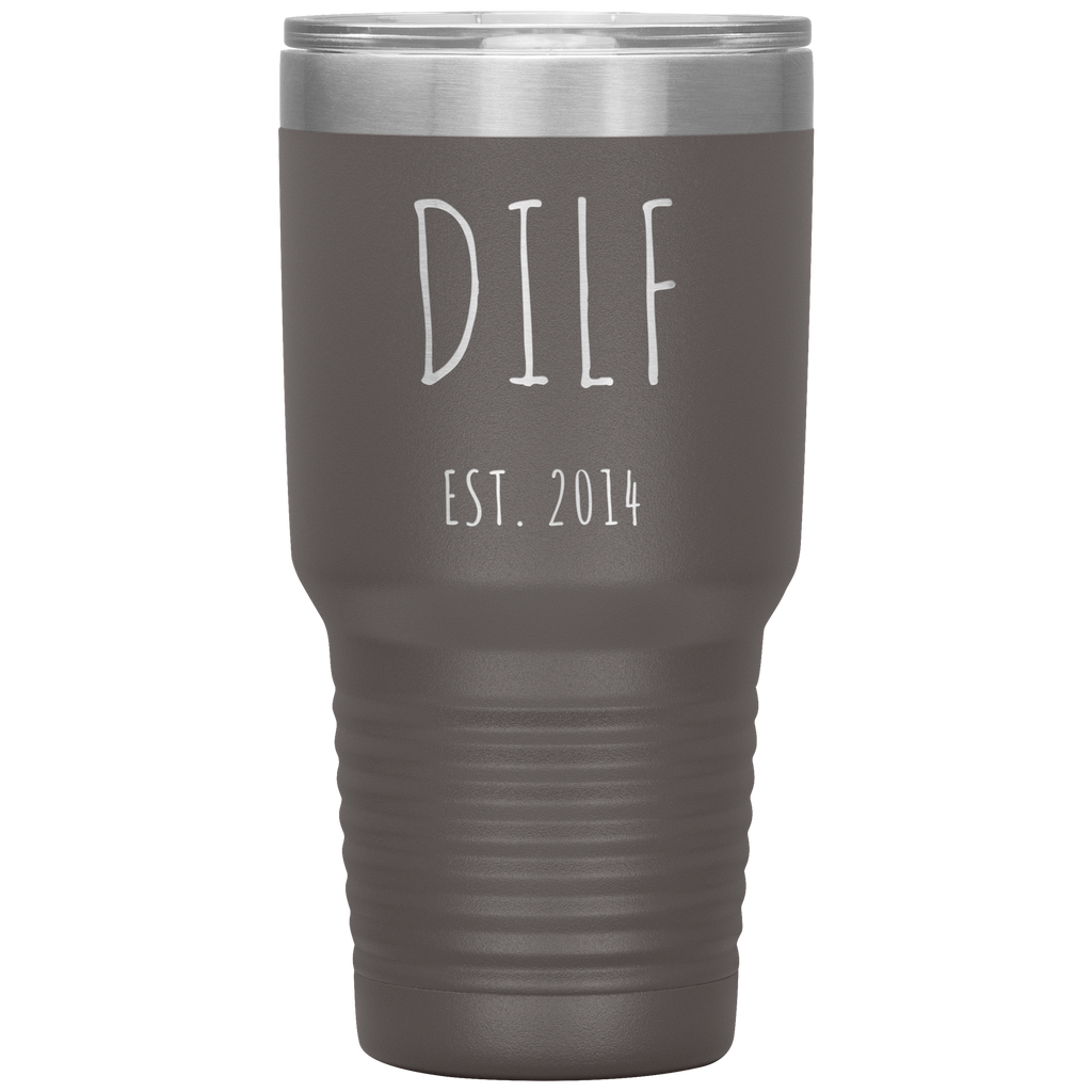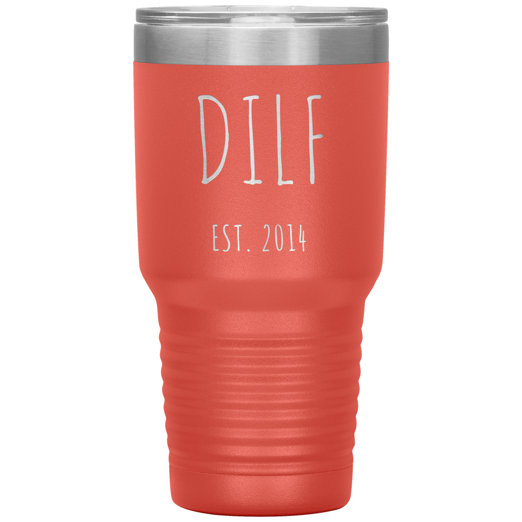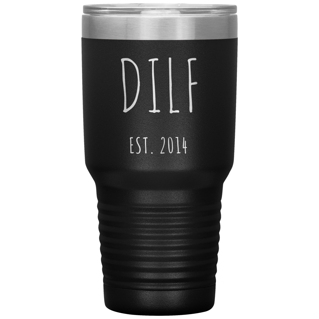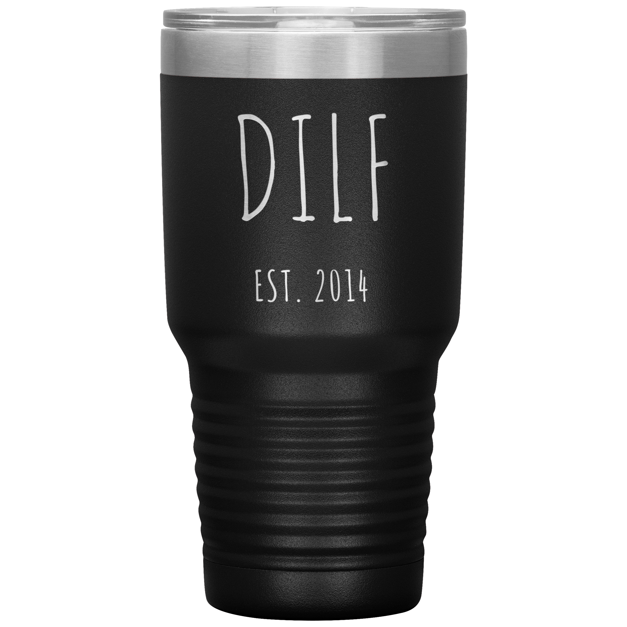 DILF Mug Present For New Dad Gifts Funny New Father Est 2014 Tumbler First Time Dad Metal Insulated Hot Cold Travel Coffee Cup 30oz BPA Free