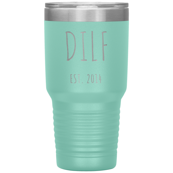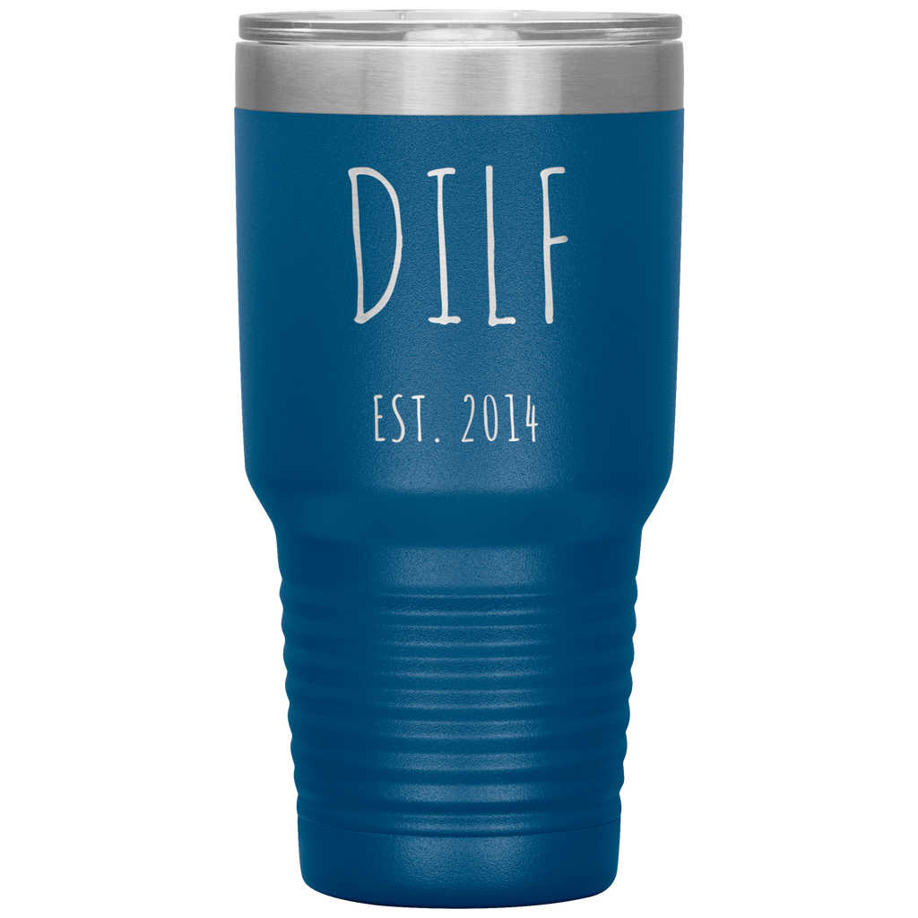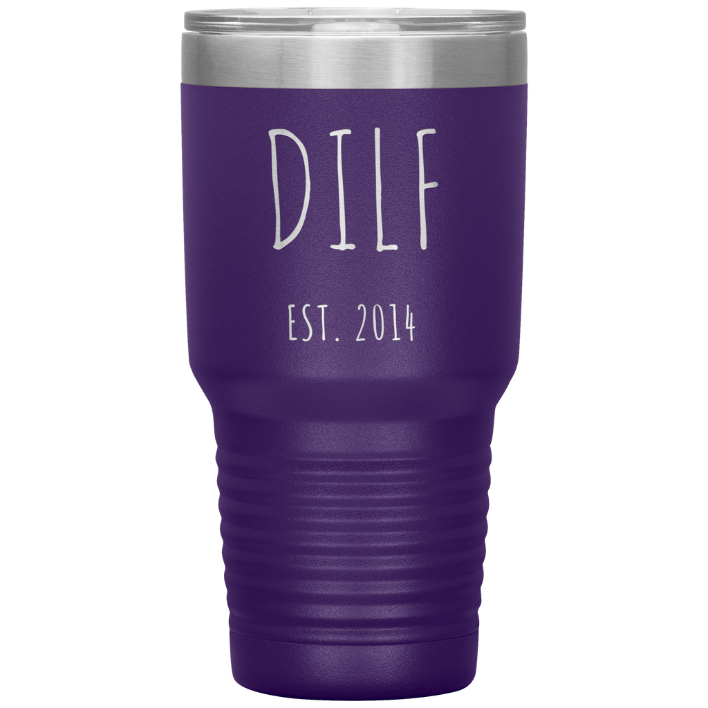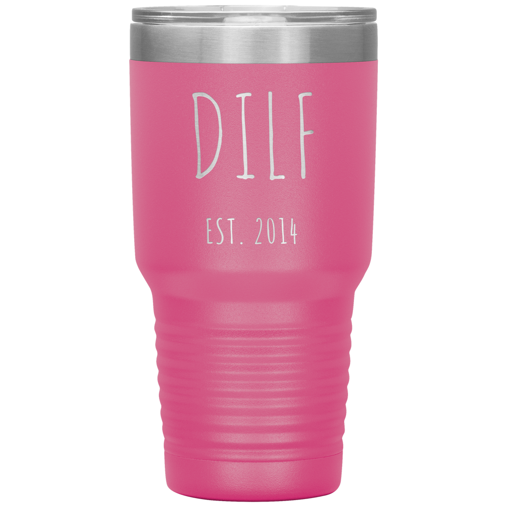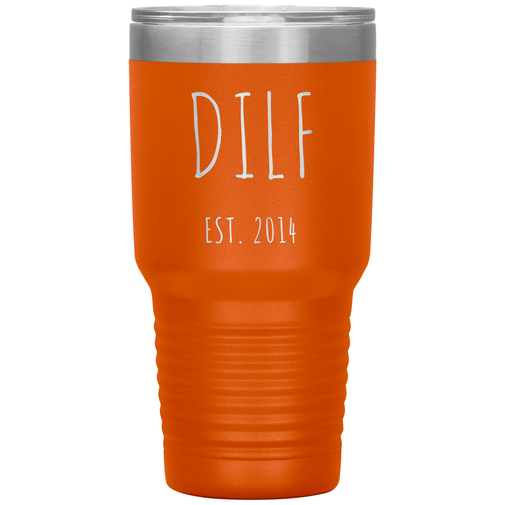 DILF Mug Present For New Dad Gifts Funny New Father Est 2014 Tumbler First Time Dad Metal Insulated Hot Cold Travel Coffee Cup 30oz BPA Free
