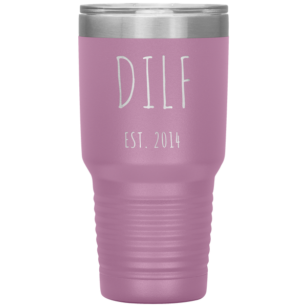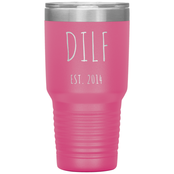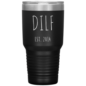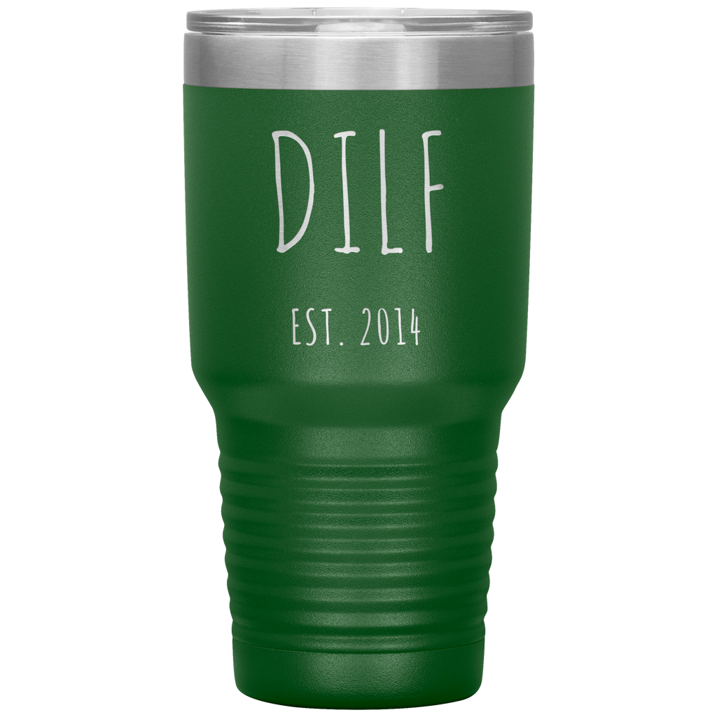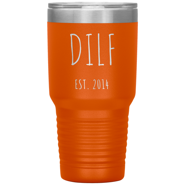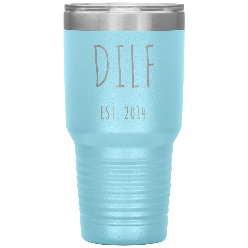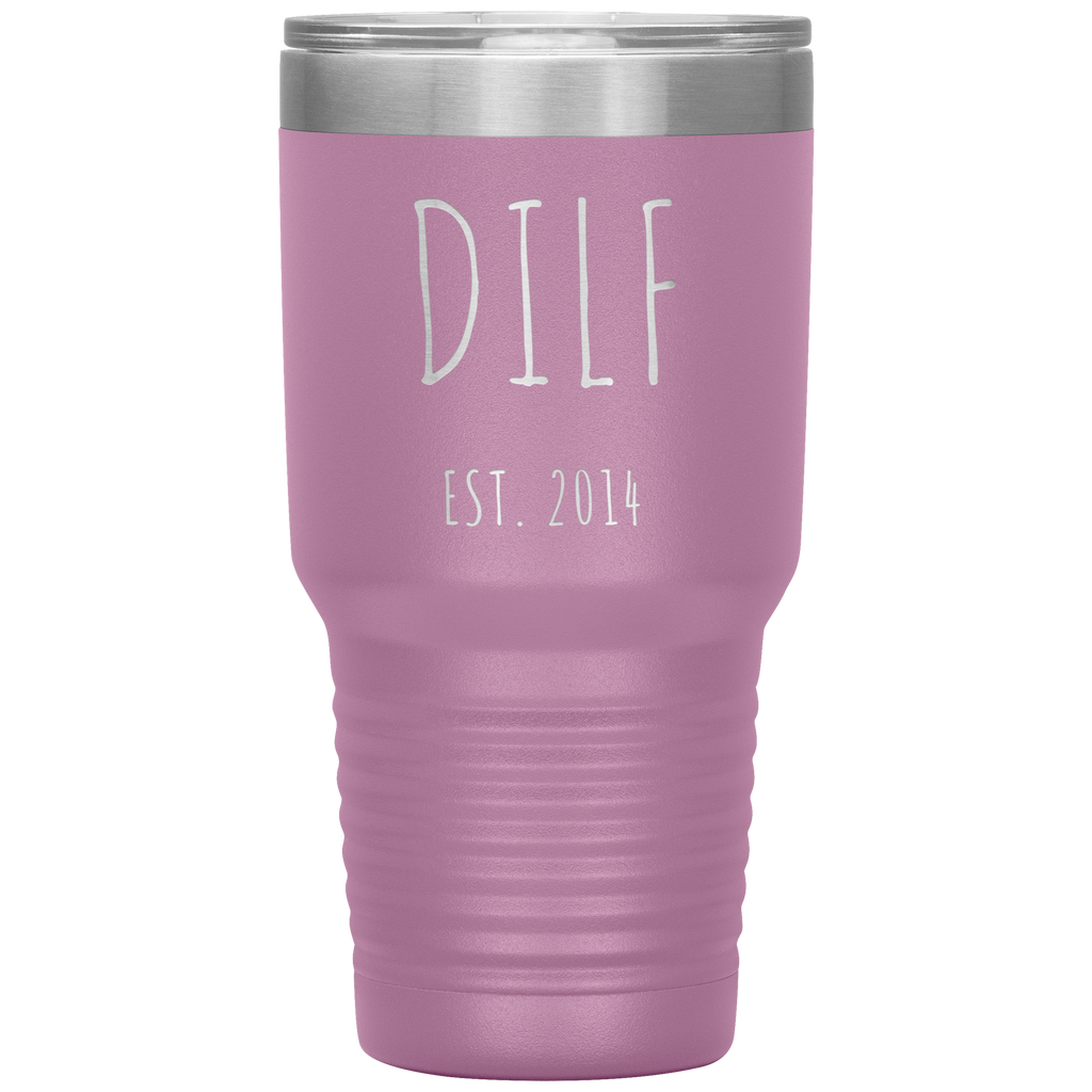 DILF Mug Present For New Dad Gifts Funny New Father Est 2014 Tumbler First Time Dad Metal Insulated Hot Cold Travel Coffee Cup 30oz BPA Free