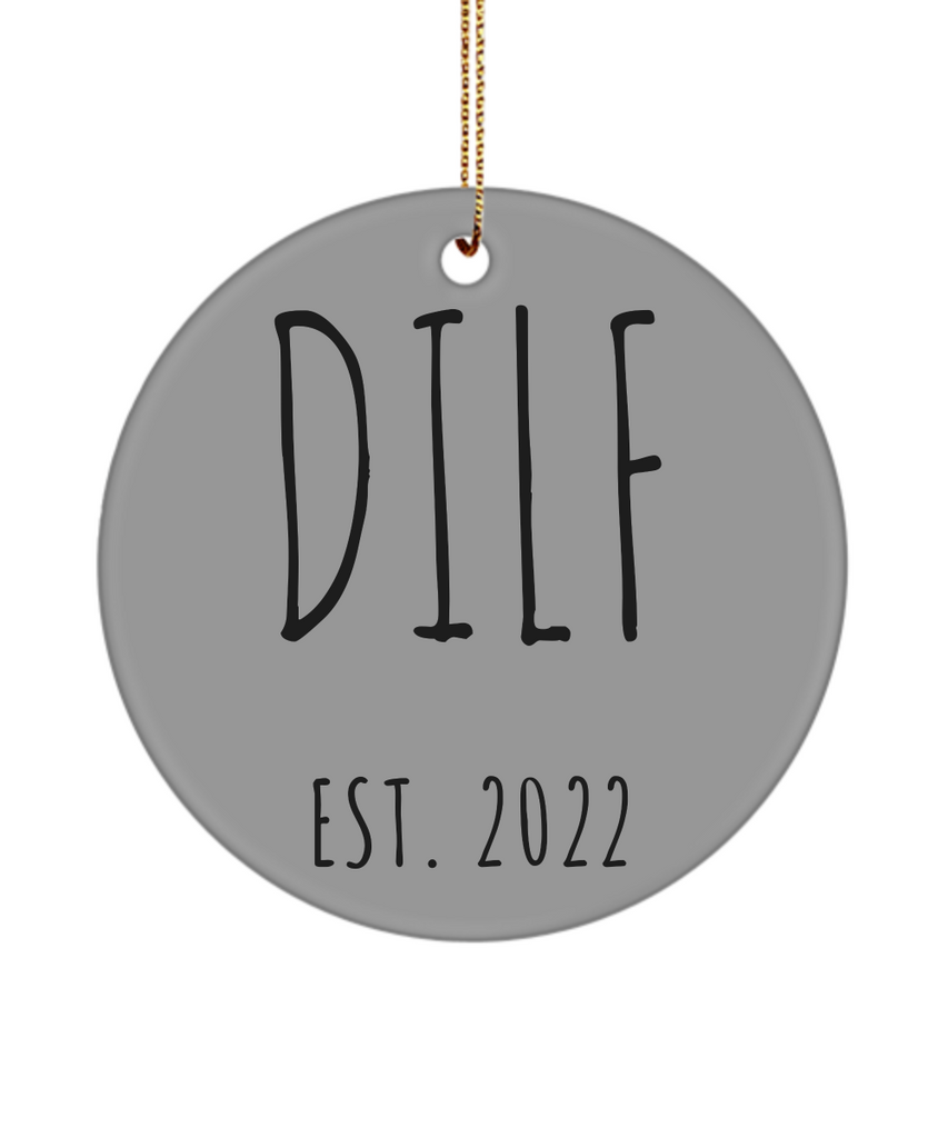 DILF Ornament New Dad To Be Gifts Funny New Father Pregnant Expecting Dad New Baby Gift for Dad DILF Est 2022