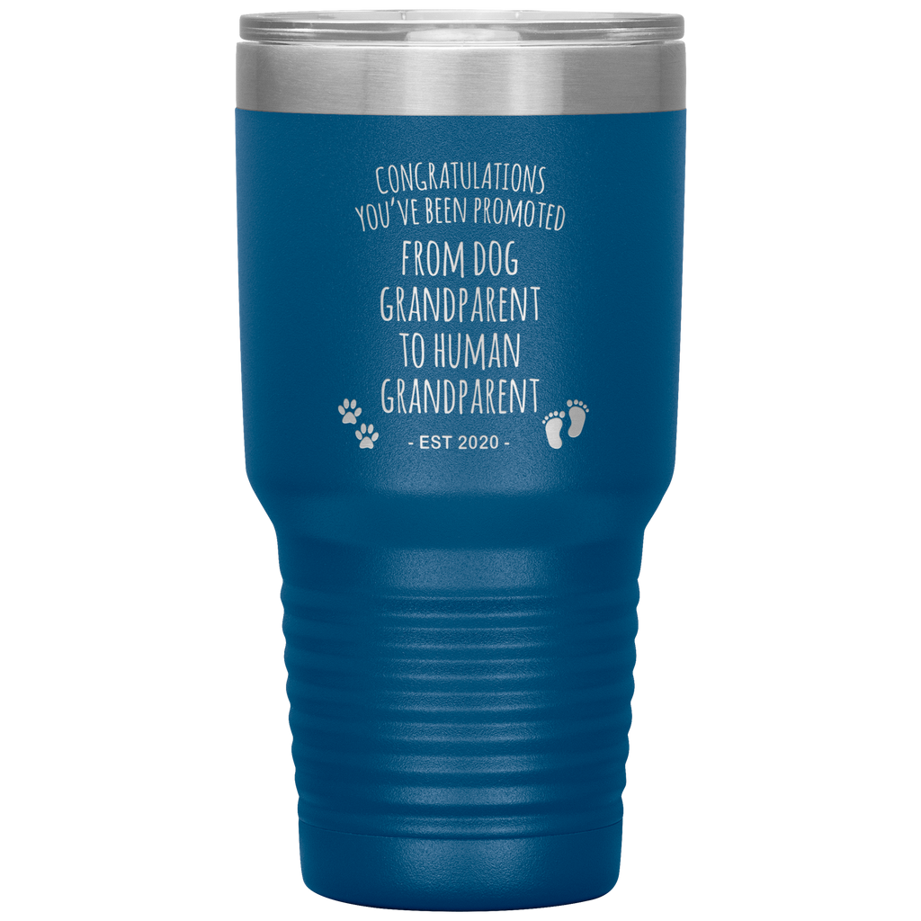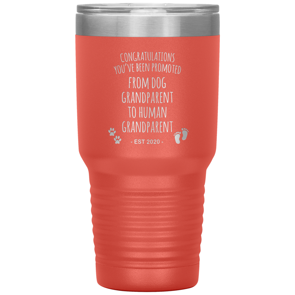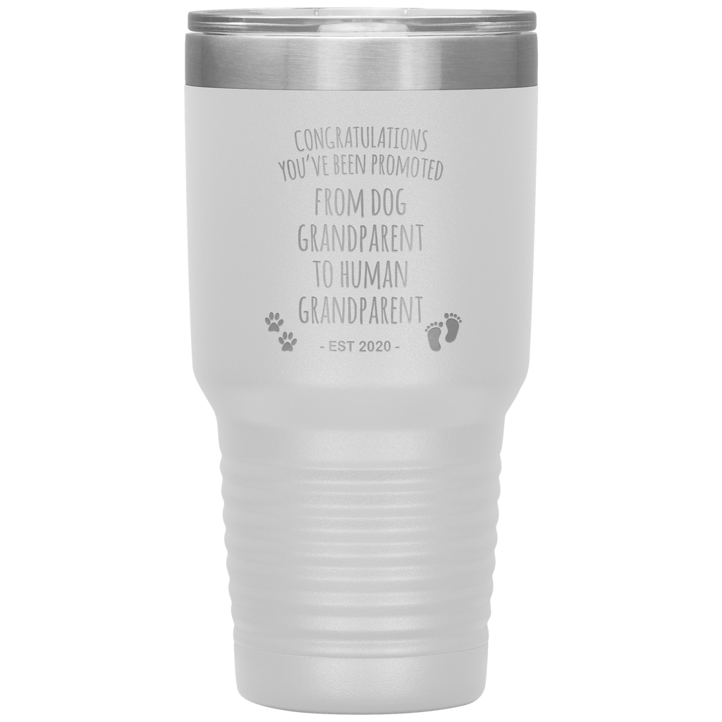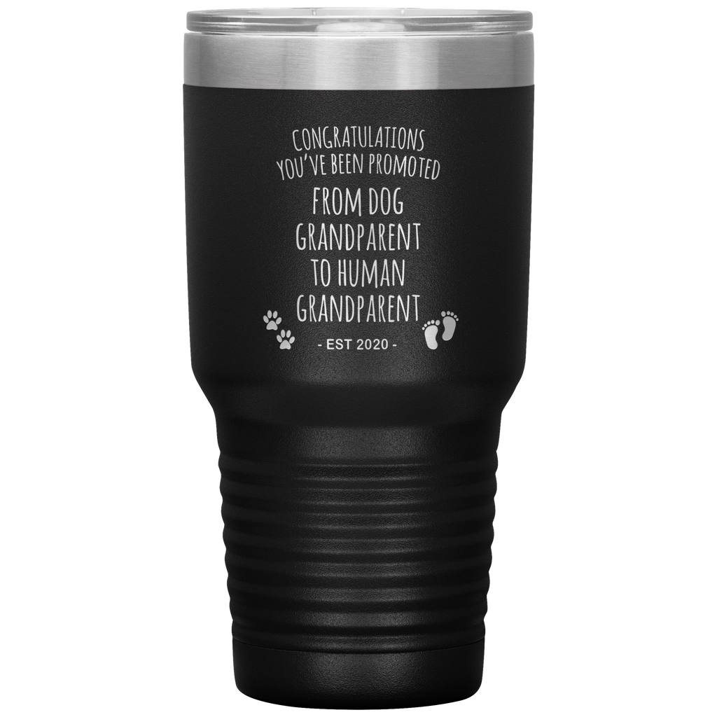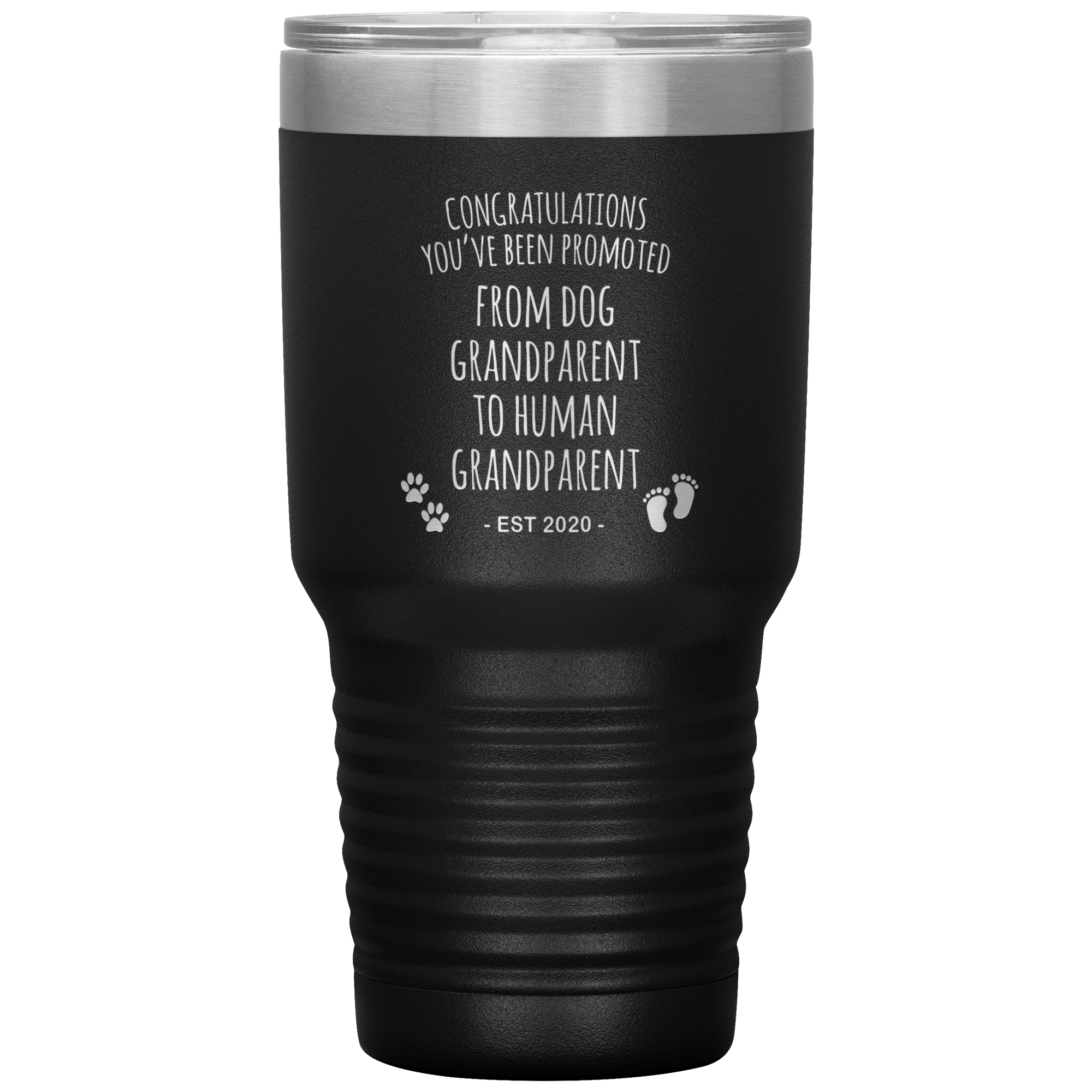 Dog Grandparent To Human Grandparent Est 2020 Pregnancy Reveal First Time Grandma Gift Promoted to Grandparent Tumbler Travel Coffee Cup BPA Free